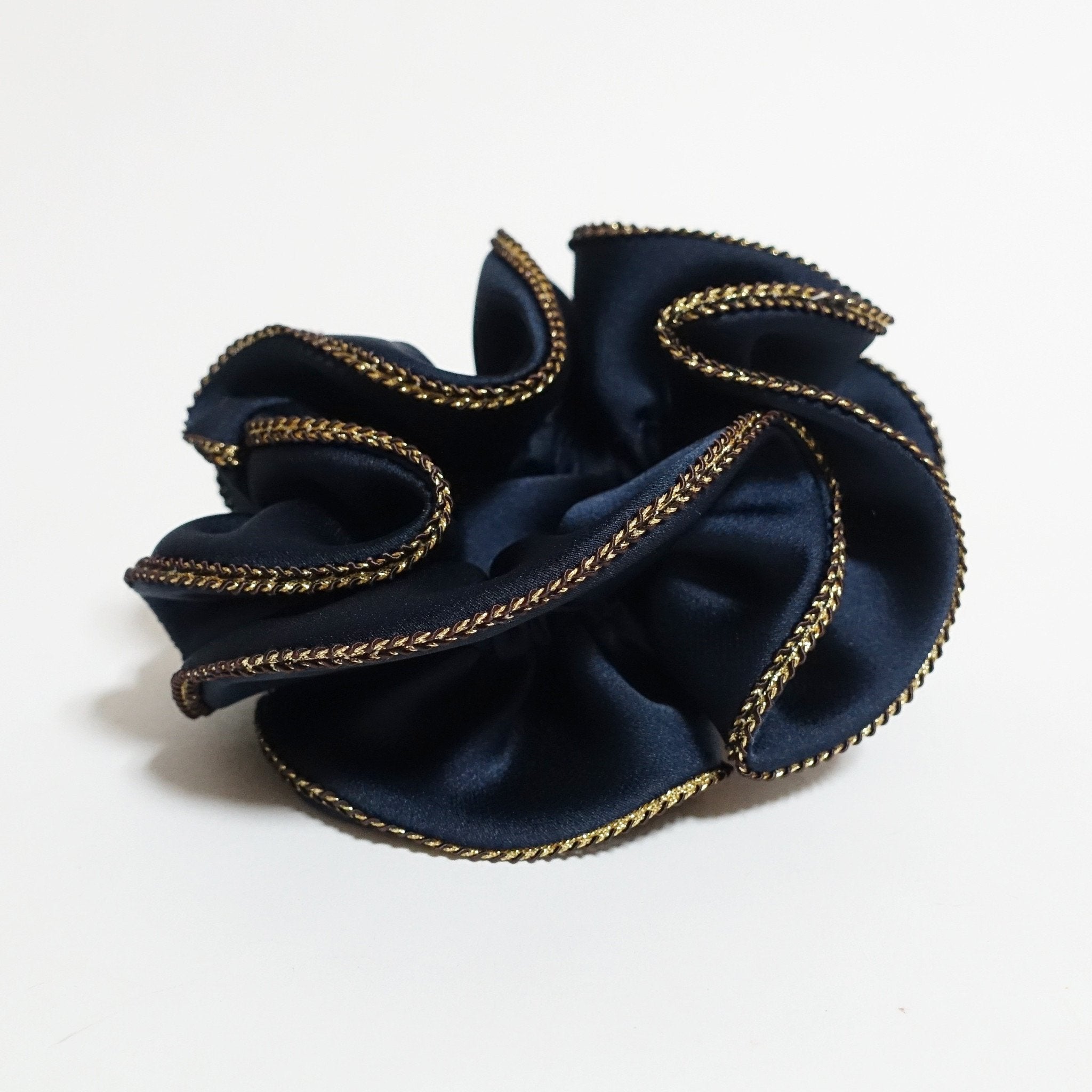 veryshine.com scrunchies/hair holder Navy Golden Thread Trim Satin Hair Elastic Hair Ties Women Hair Scrunchies