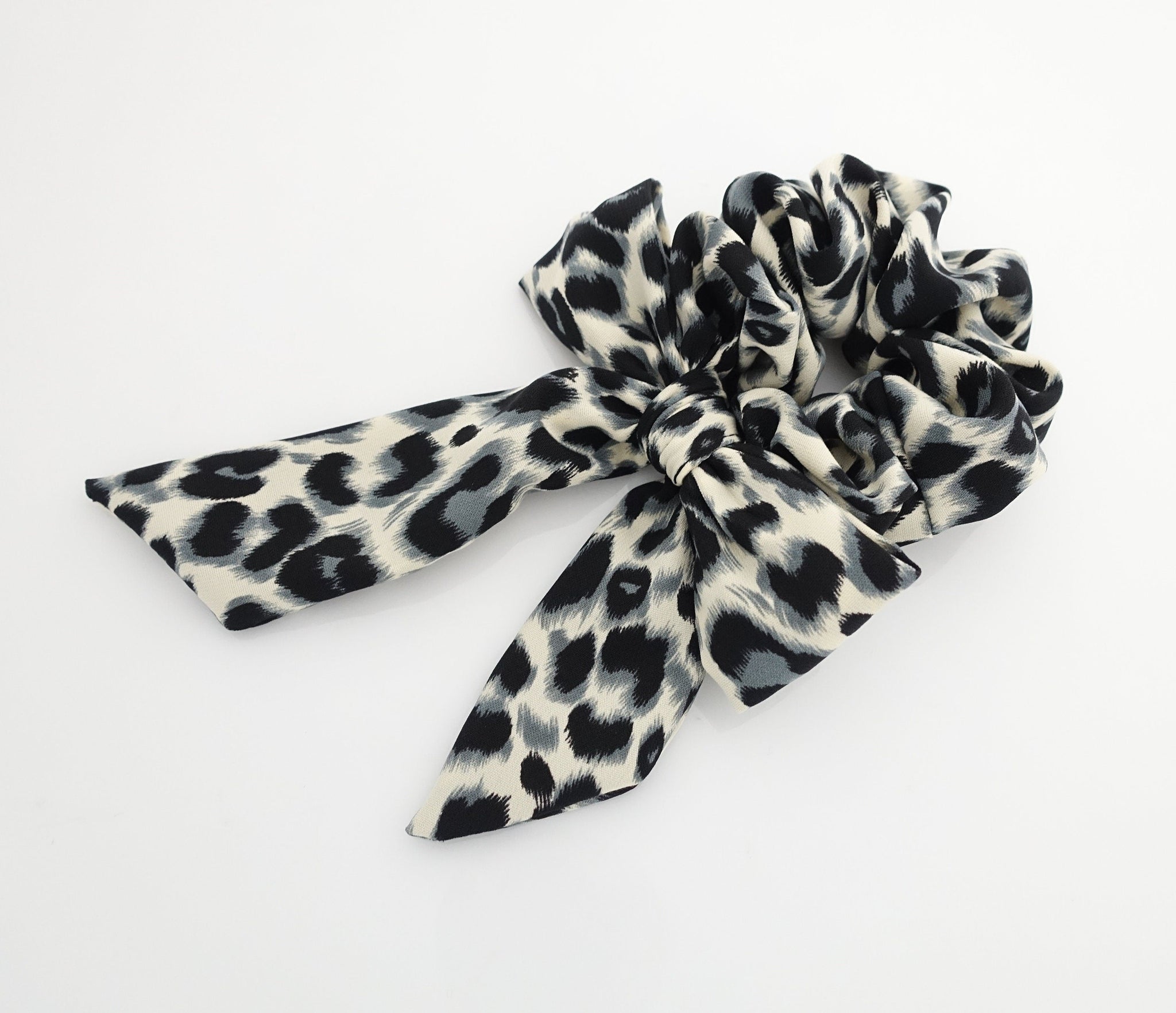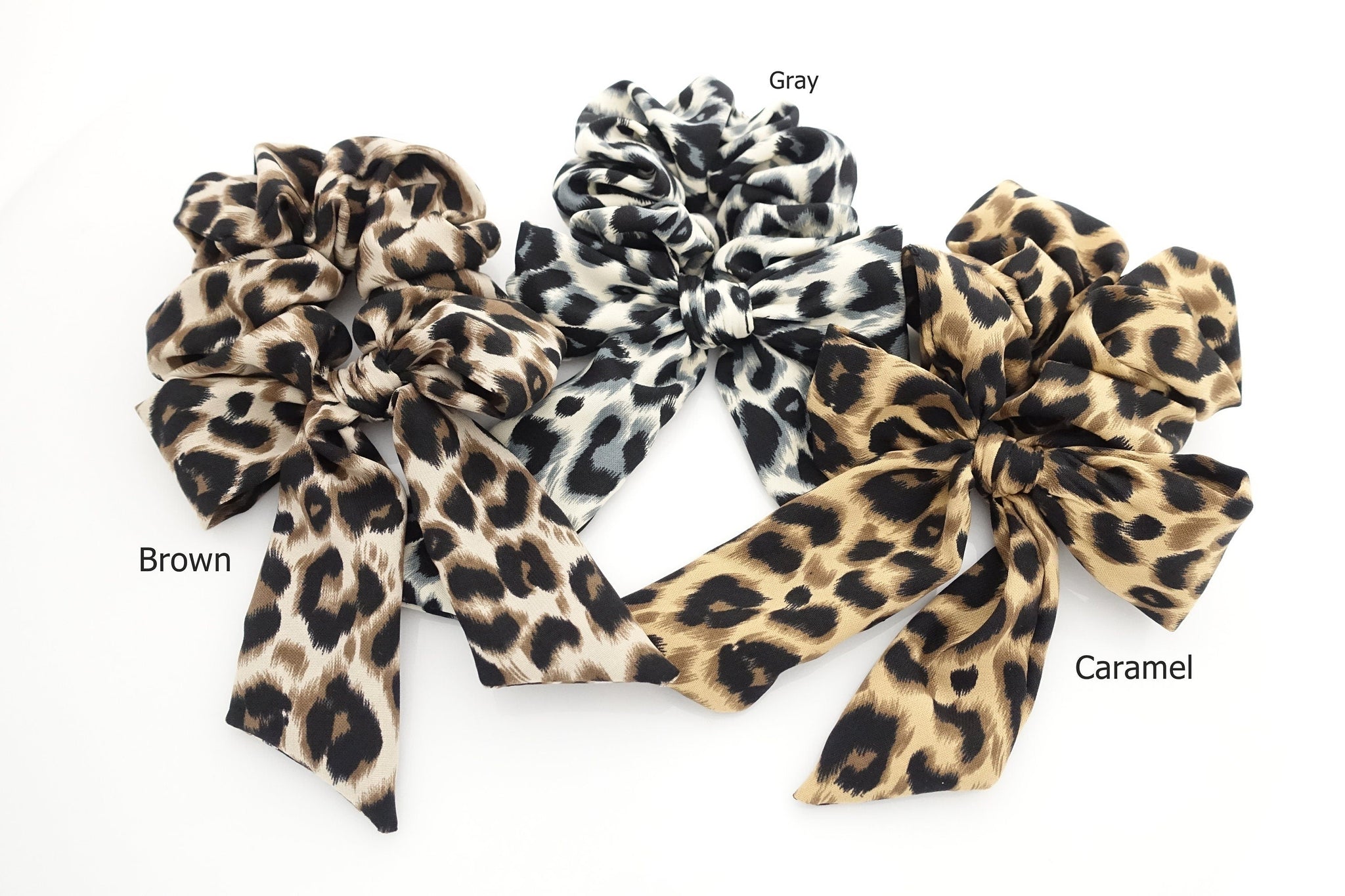 veryshine.com Scrunchies Gray leopard print bow knot scrunchy animal print pattern tail woman hair scrunchies
