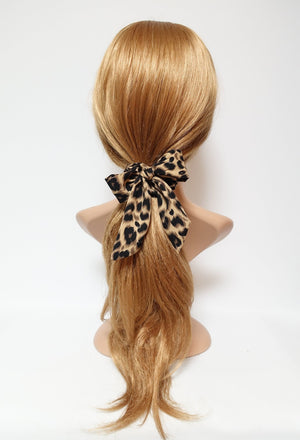 veryshine.com Scrunchies Brown leopard print bow knot scrunchy animal print pattern tail woman hair scrunchies