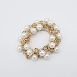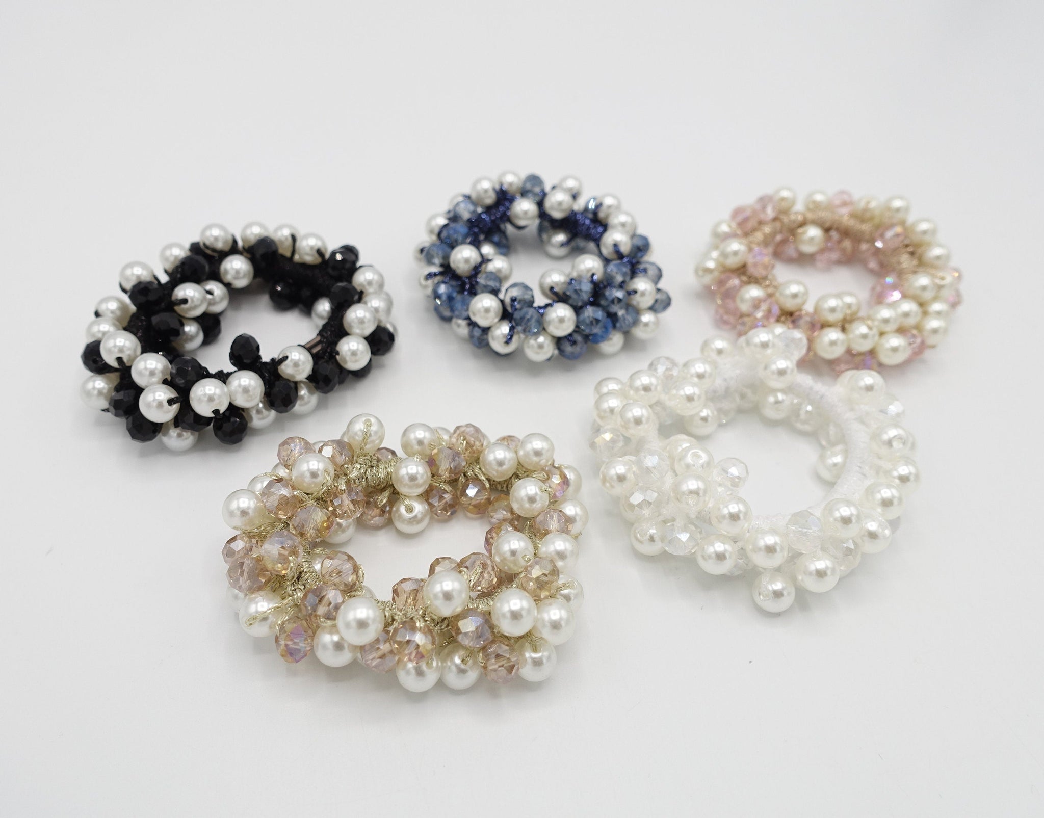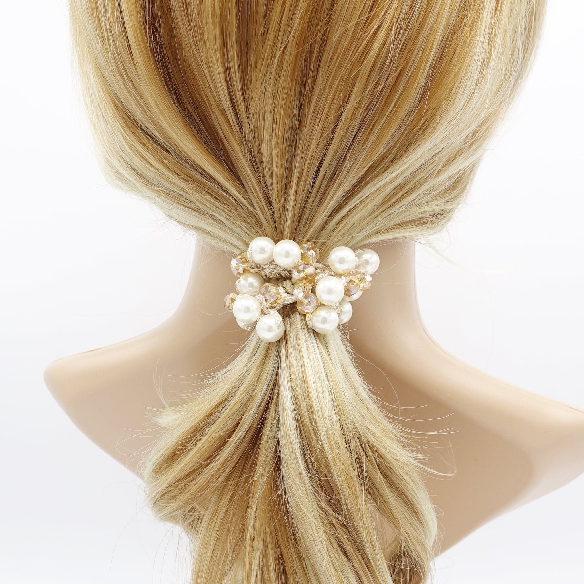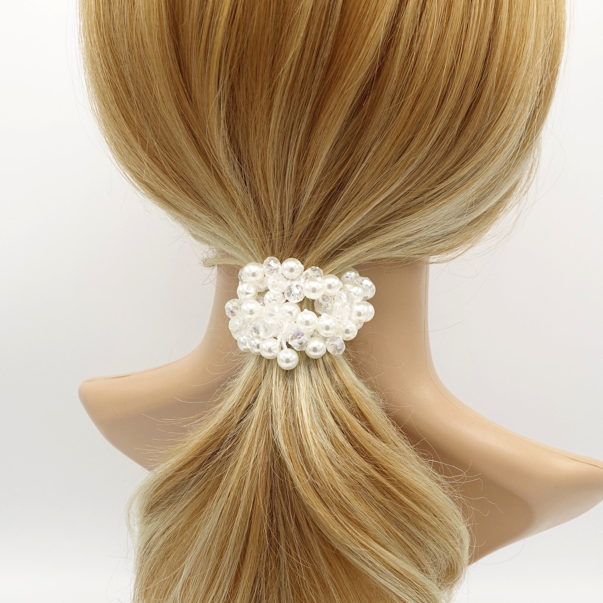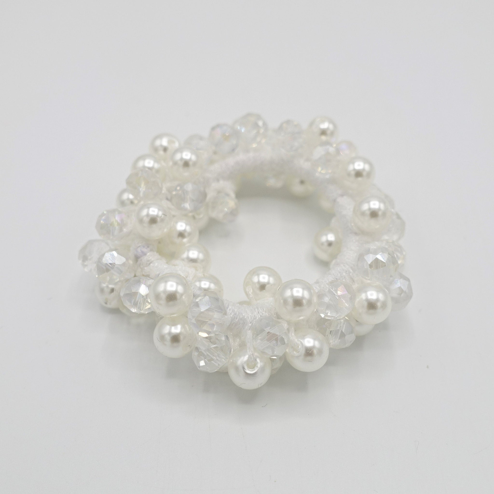 veryshine.com scrunchies/hair holder White pearl ball angle stones beaded hair elastic ponytail holder woman hair accessory