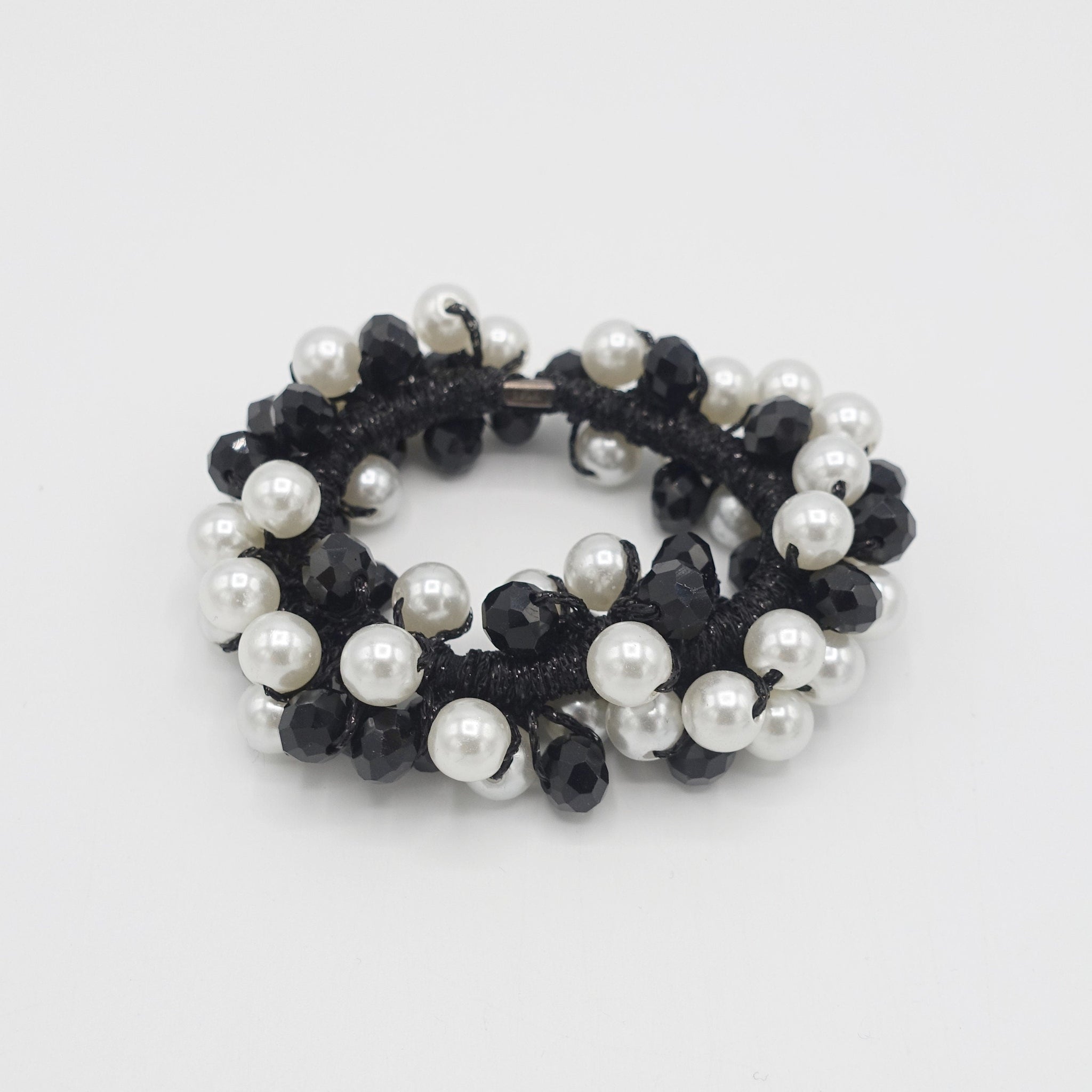 veryshine.com scrunchies/hair holder Black pearl ball angle stones beaded hair elastic ponytail holder woman hair accessory