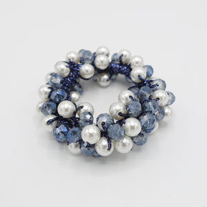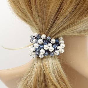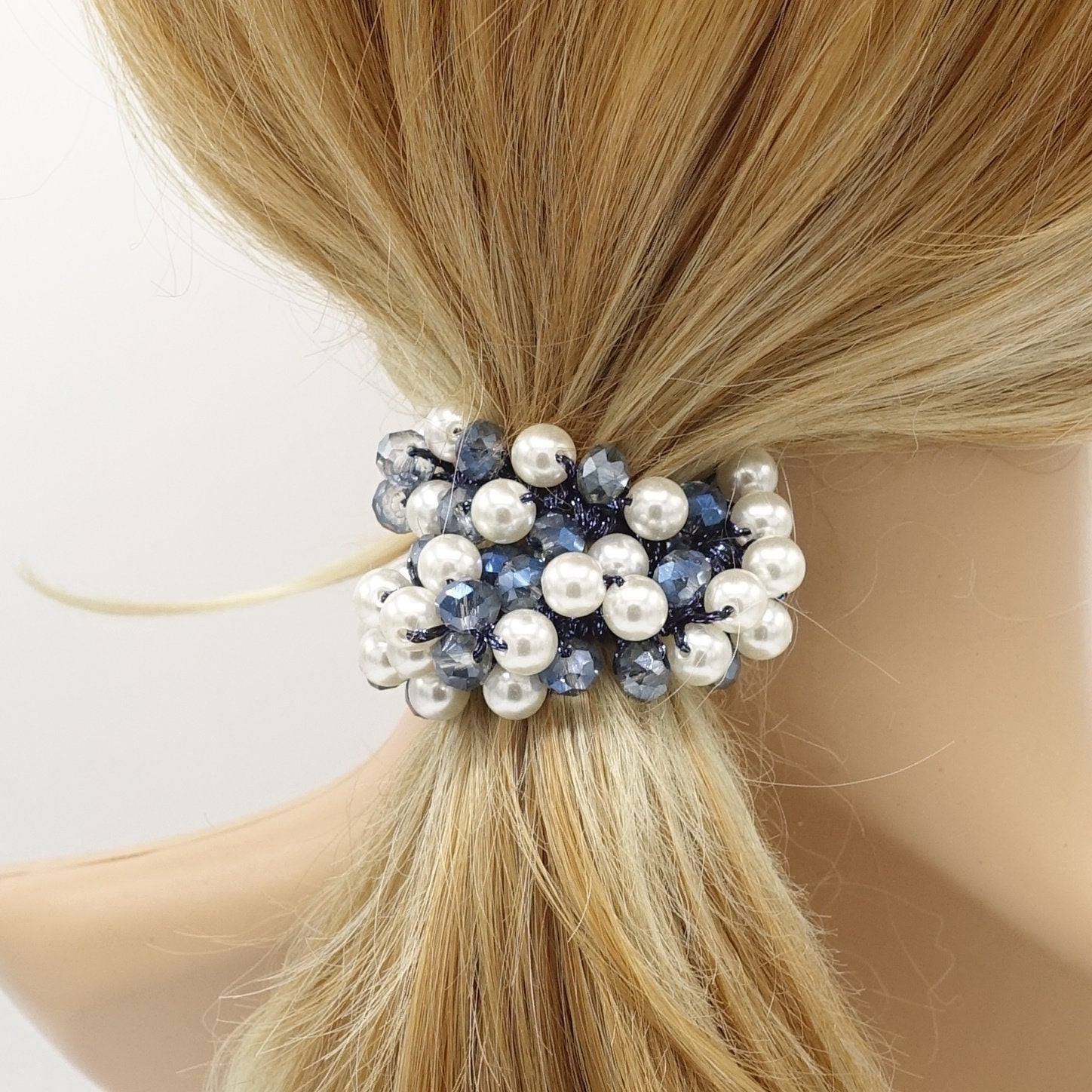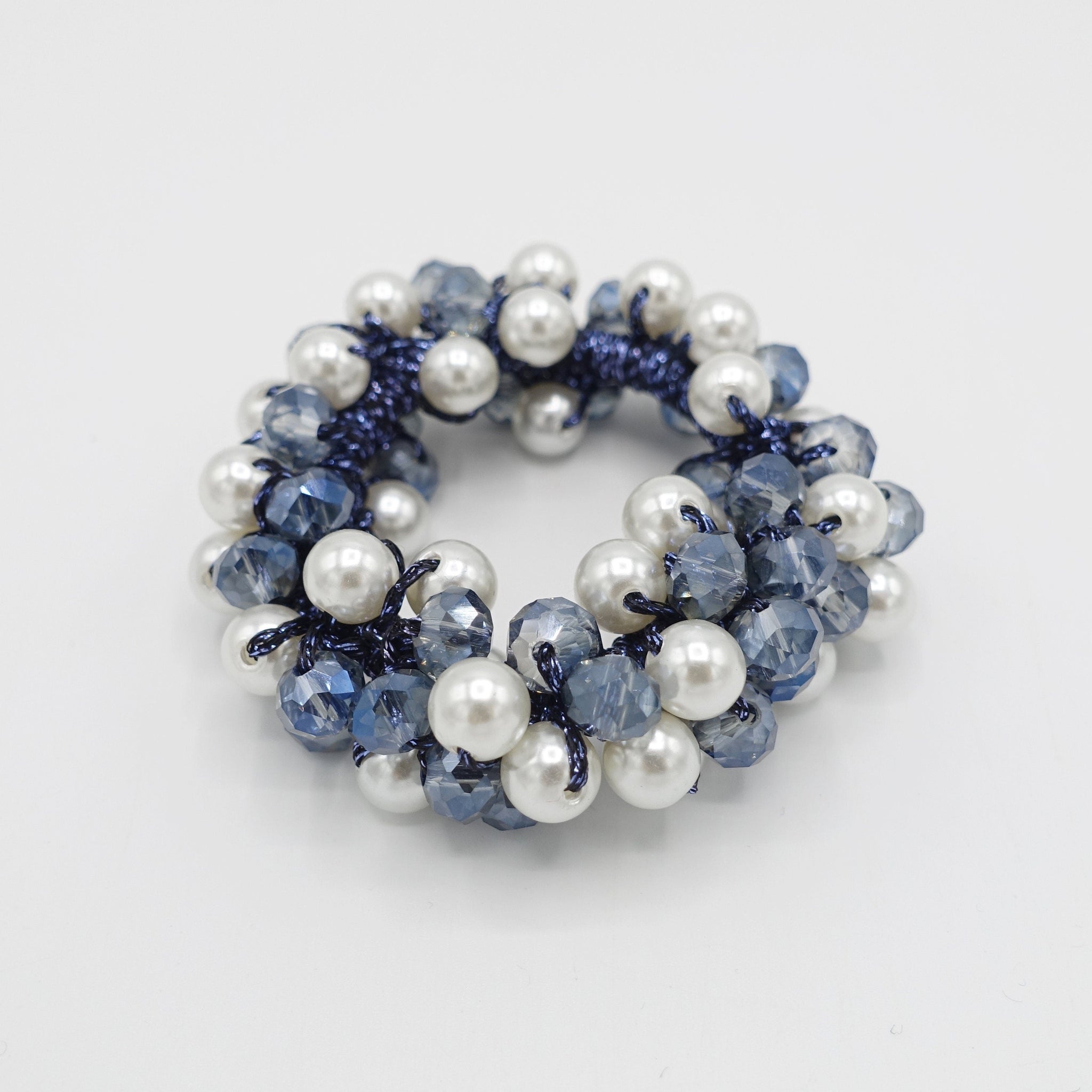 veryshine.com scrunchies/hair holder Navy pearl ball angle stones beaded hair elastic ponytail holder woman hair accessory