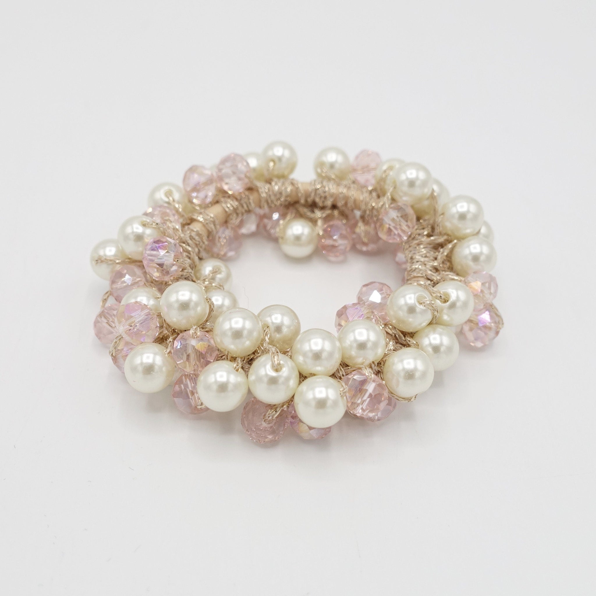 veryshine.com scrunchies/hair holder Beige pearl ball angle stones beaded hair elastic ponytail holder woman hair accessory