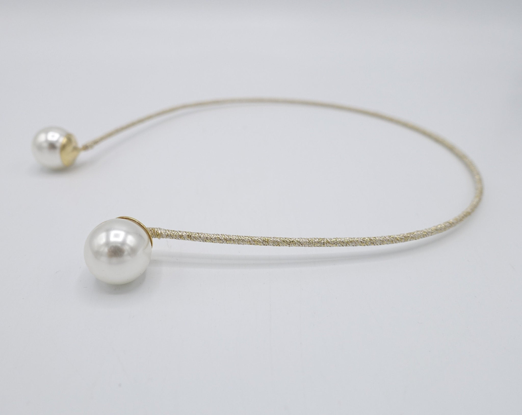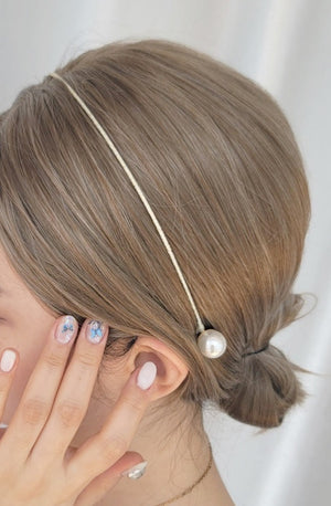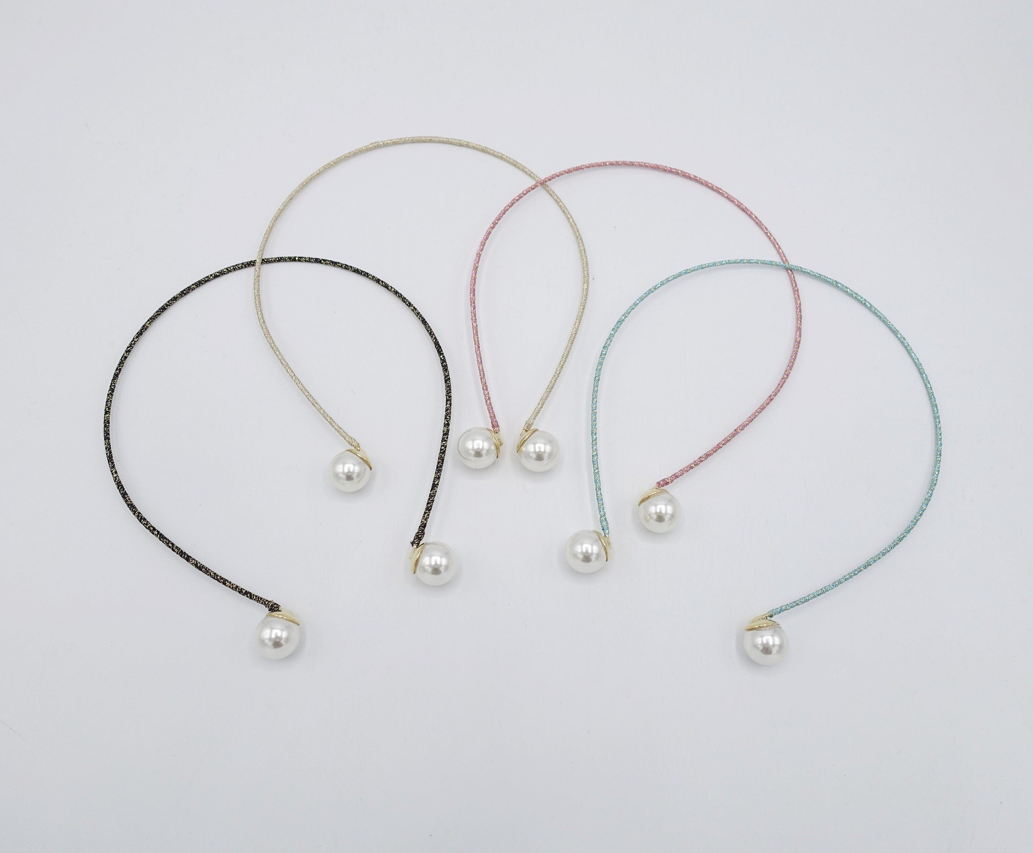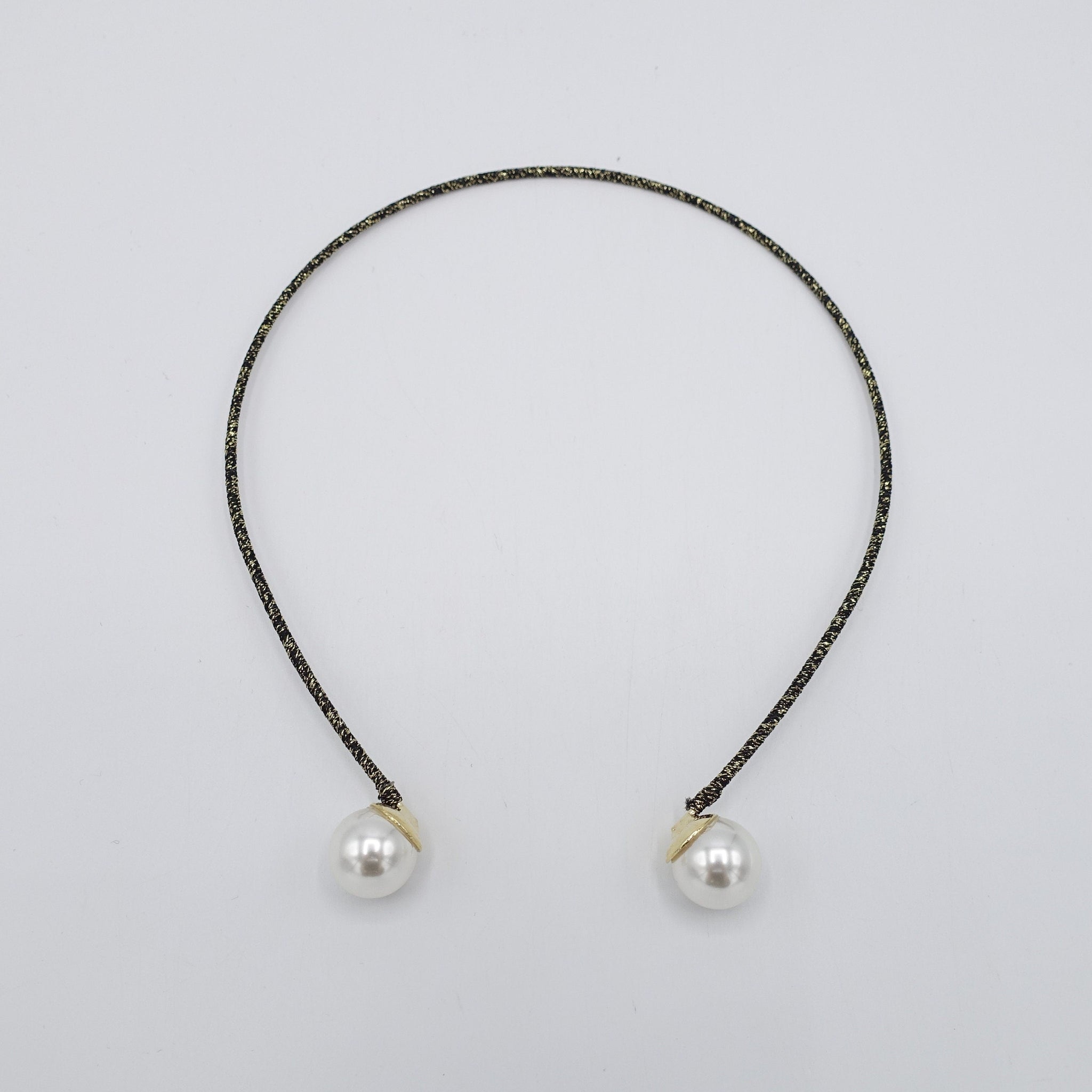 VeryShine Hair Accessories Gold pearl ends thin metal headband