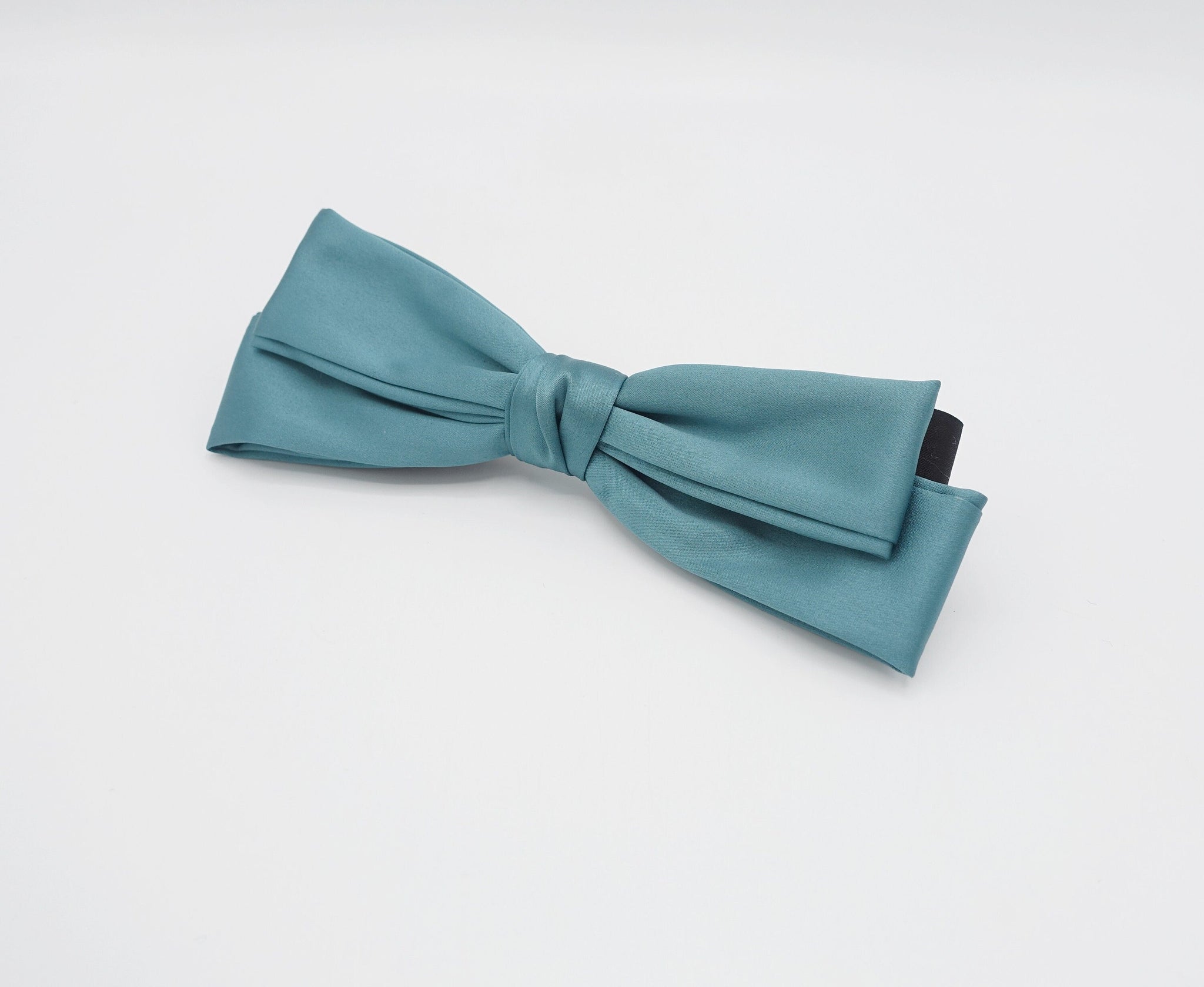 veryshine.com Barrette (Bow) Blue green satin double layered hair bow  triple wing narrow glossy style hair accessory for women