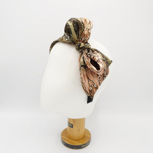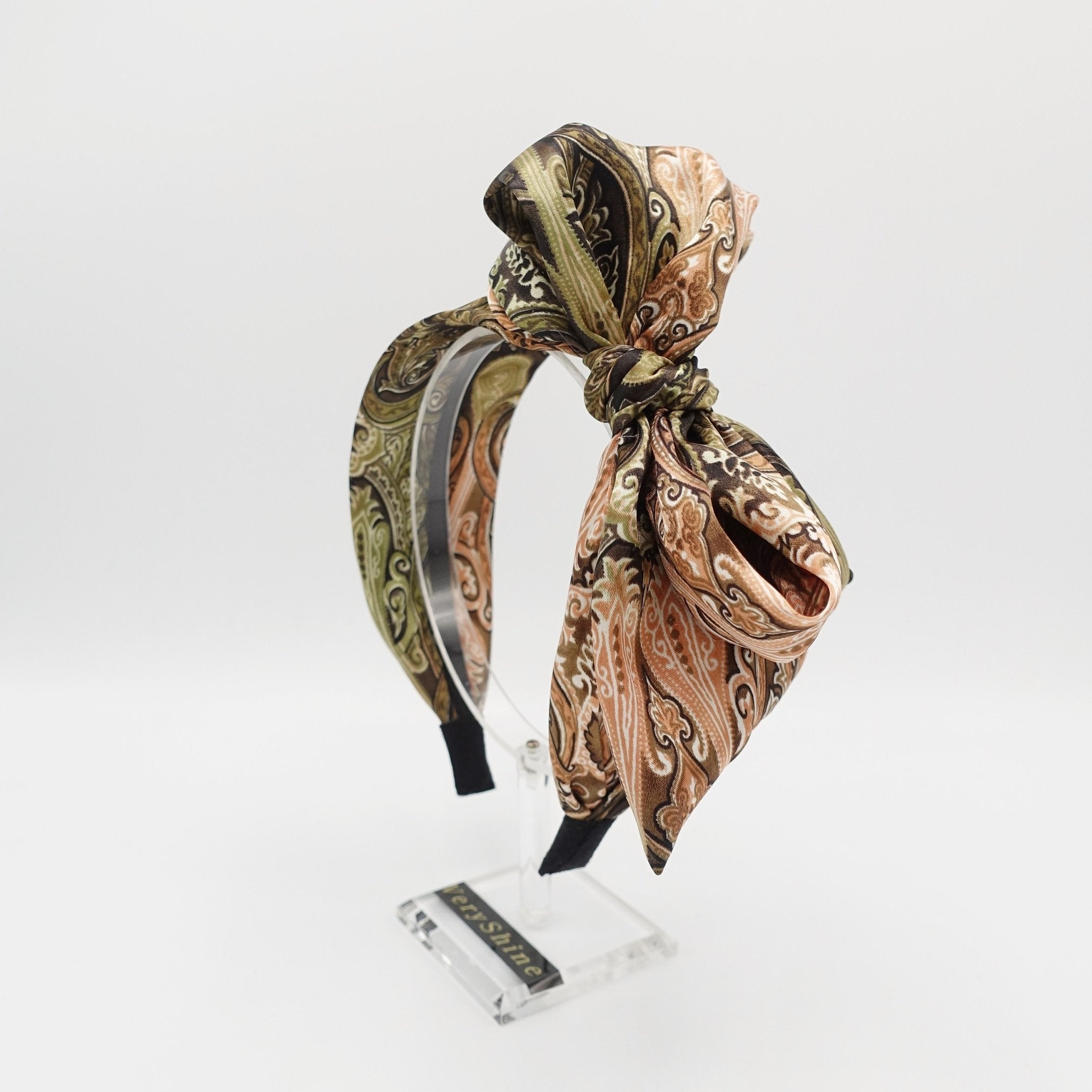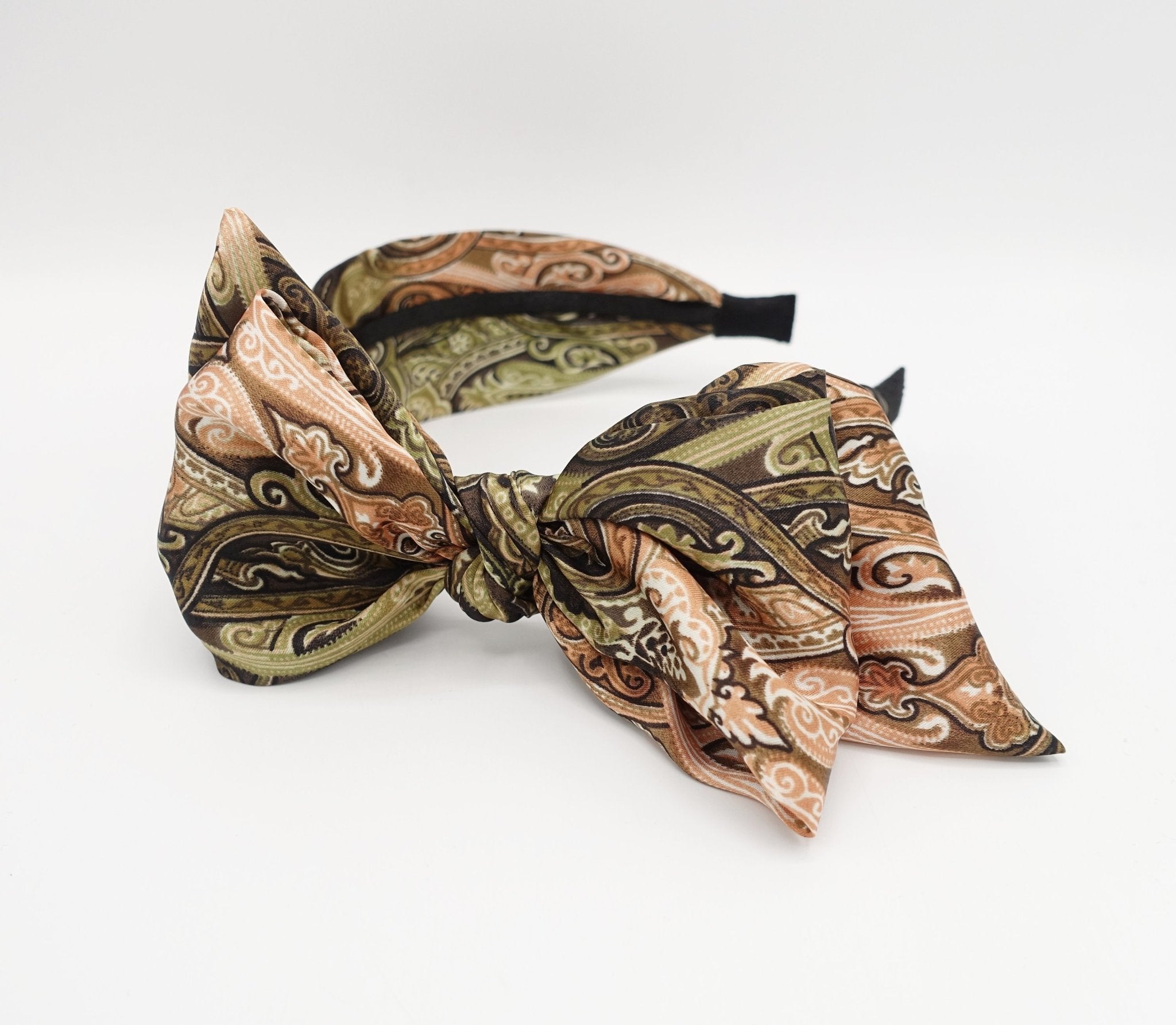 VeryShine Headband Khaki peach silk satin bow knot headband paisley print hairband luxury hair accessory for women