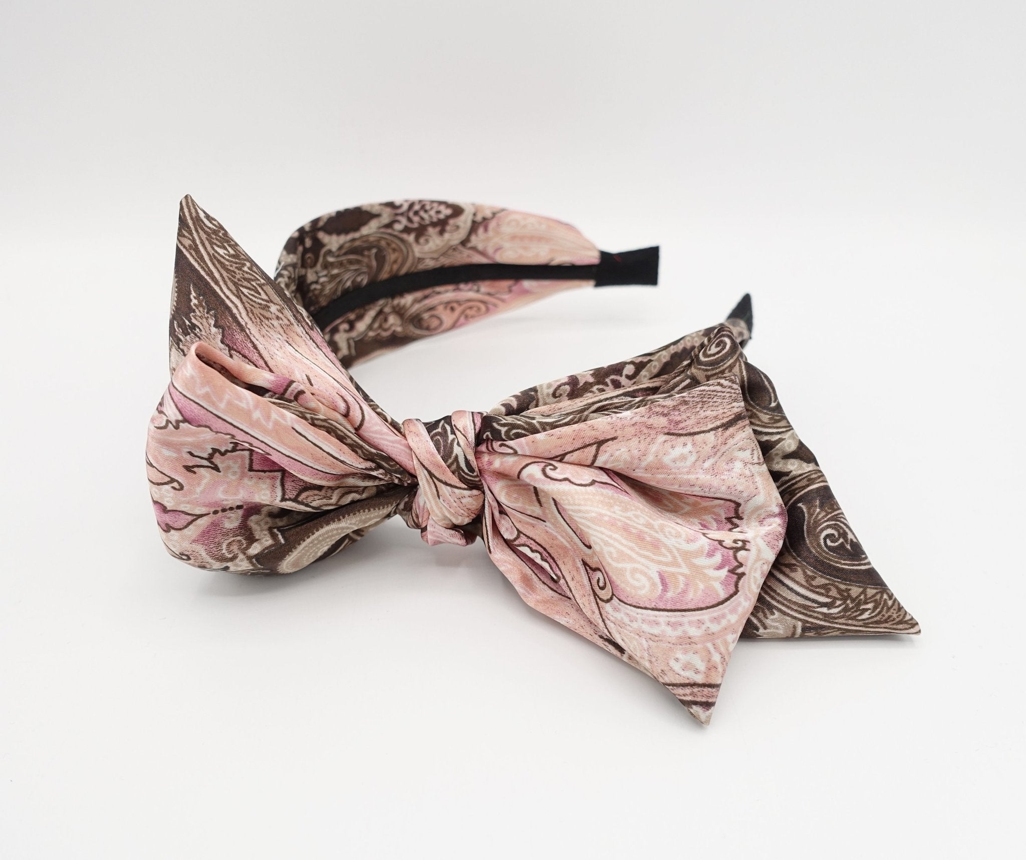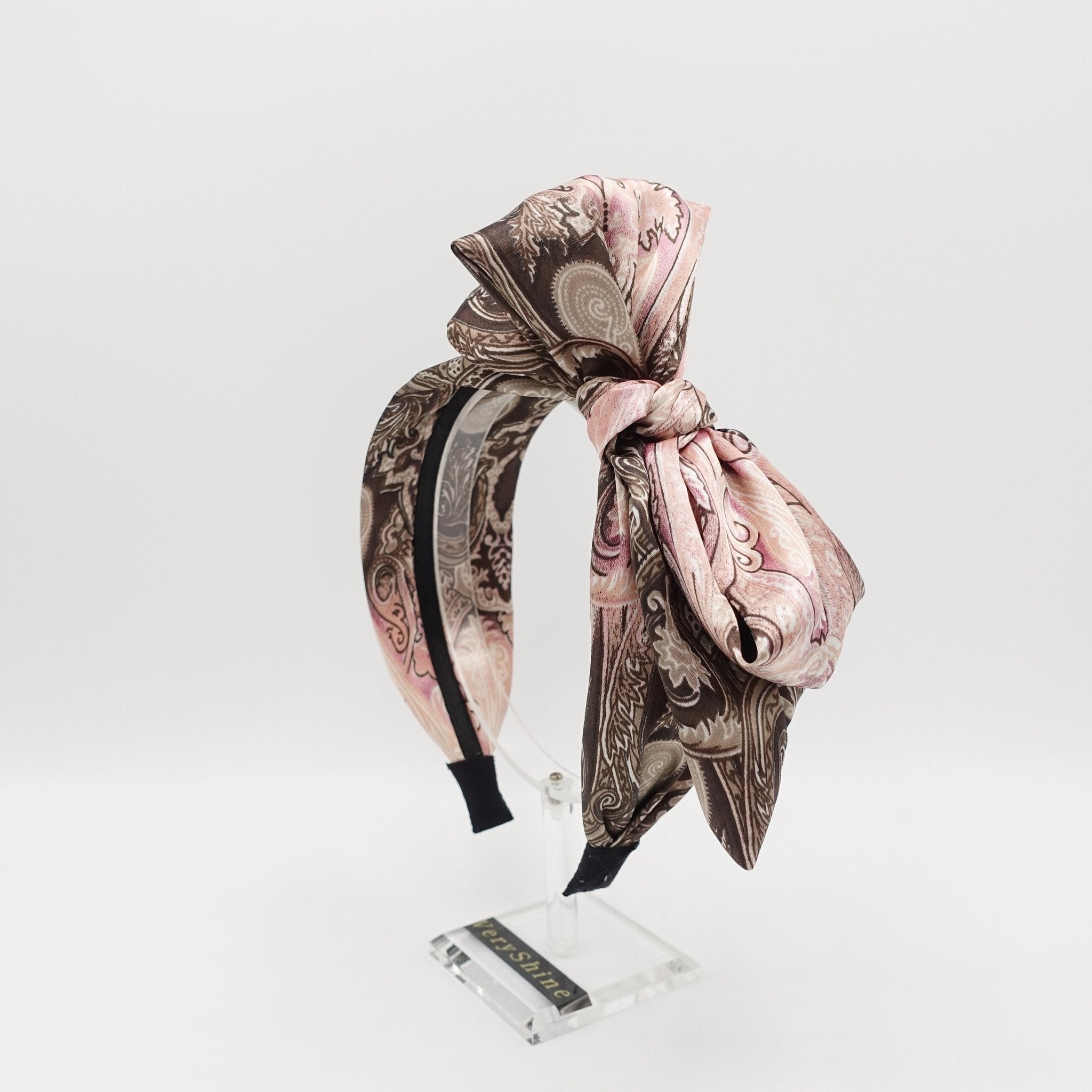VeryShine Headband Pink brown silk satin bow knot headband paisley print hairband luxury hair accessory for women