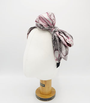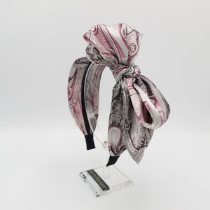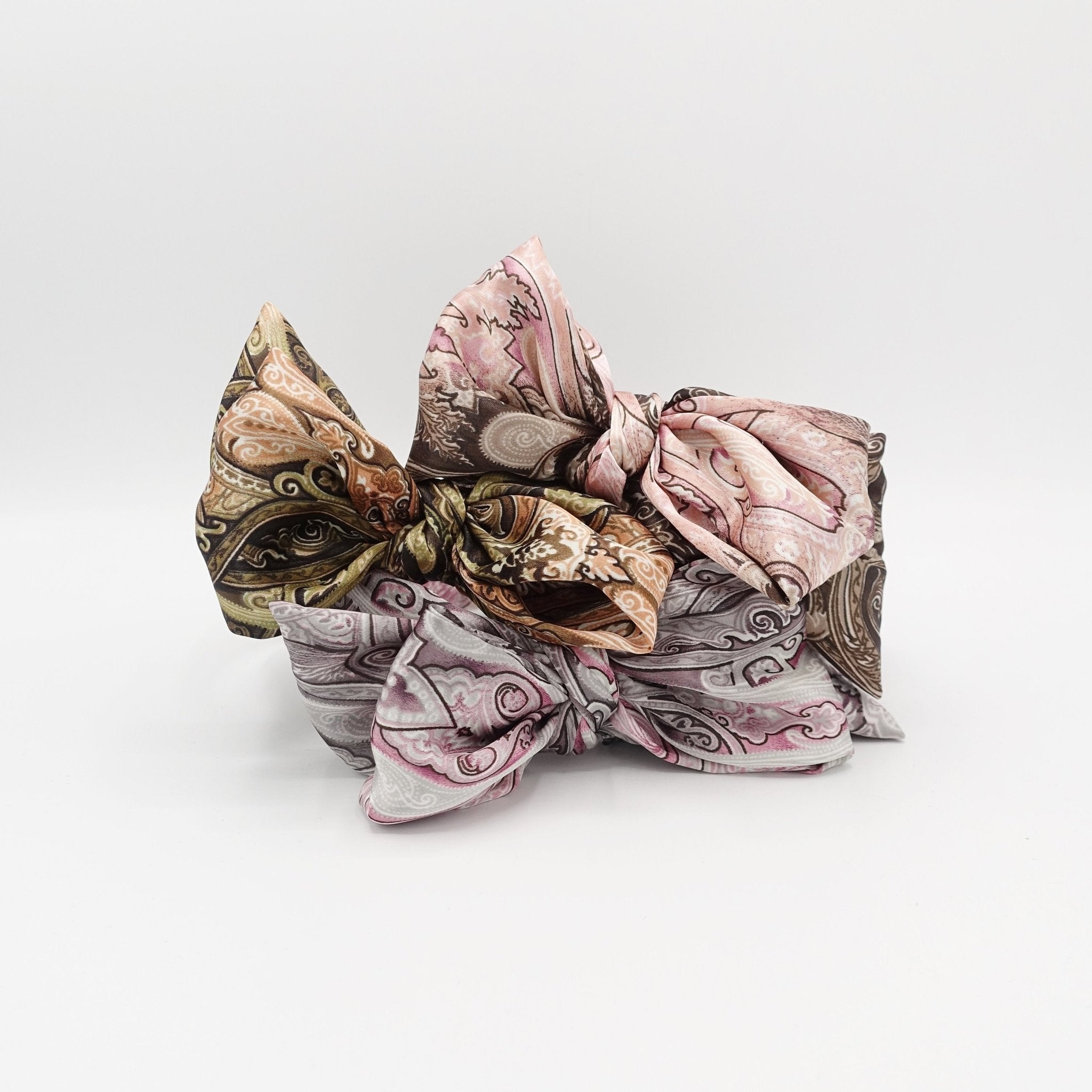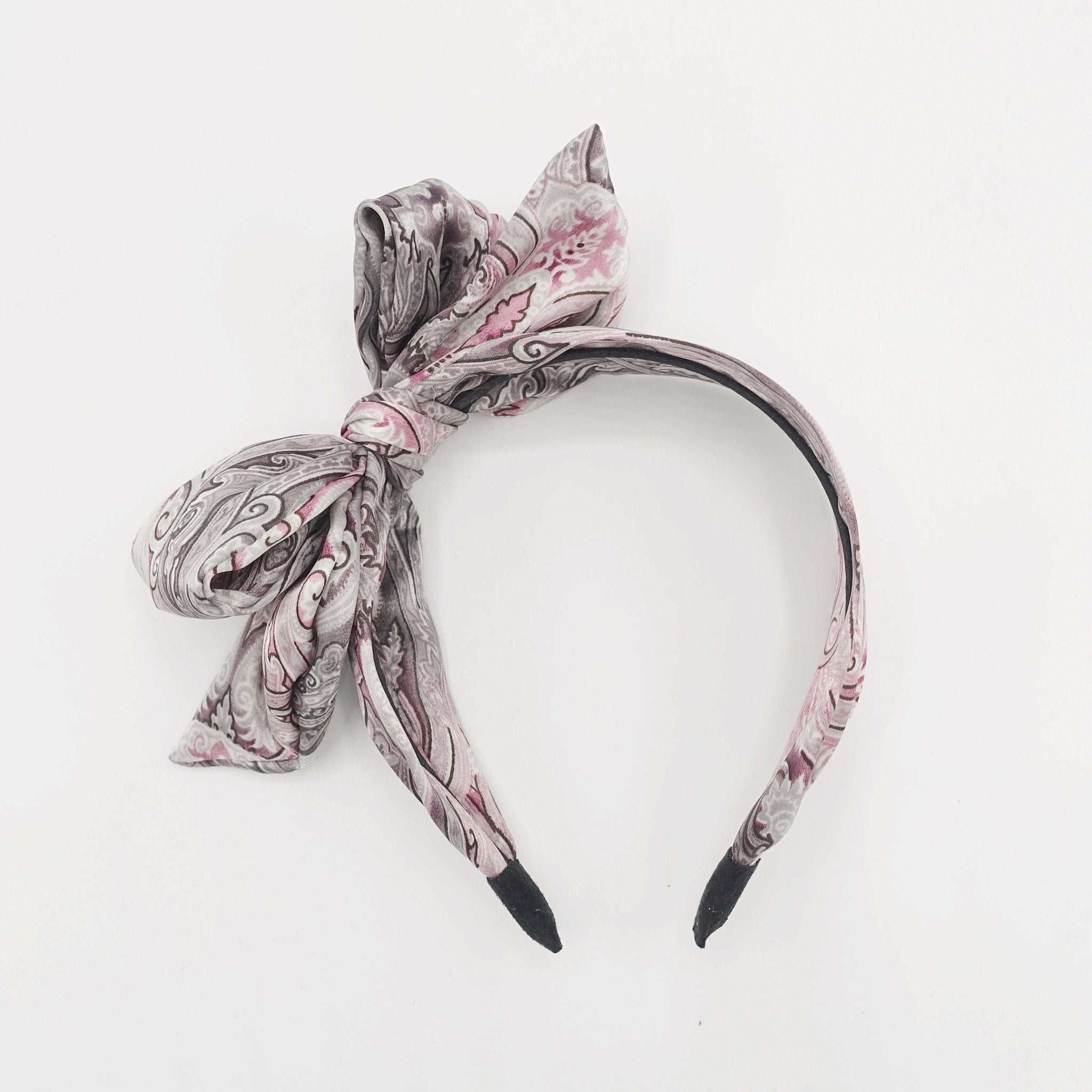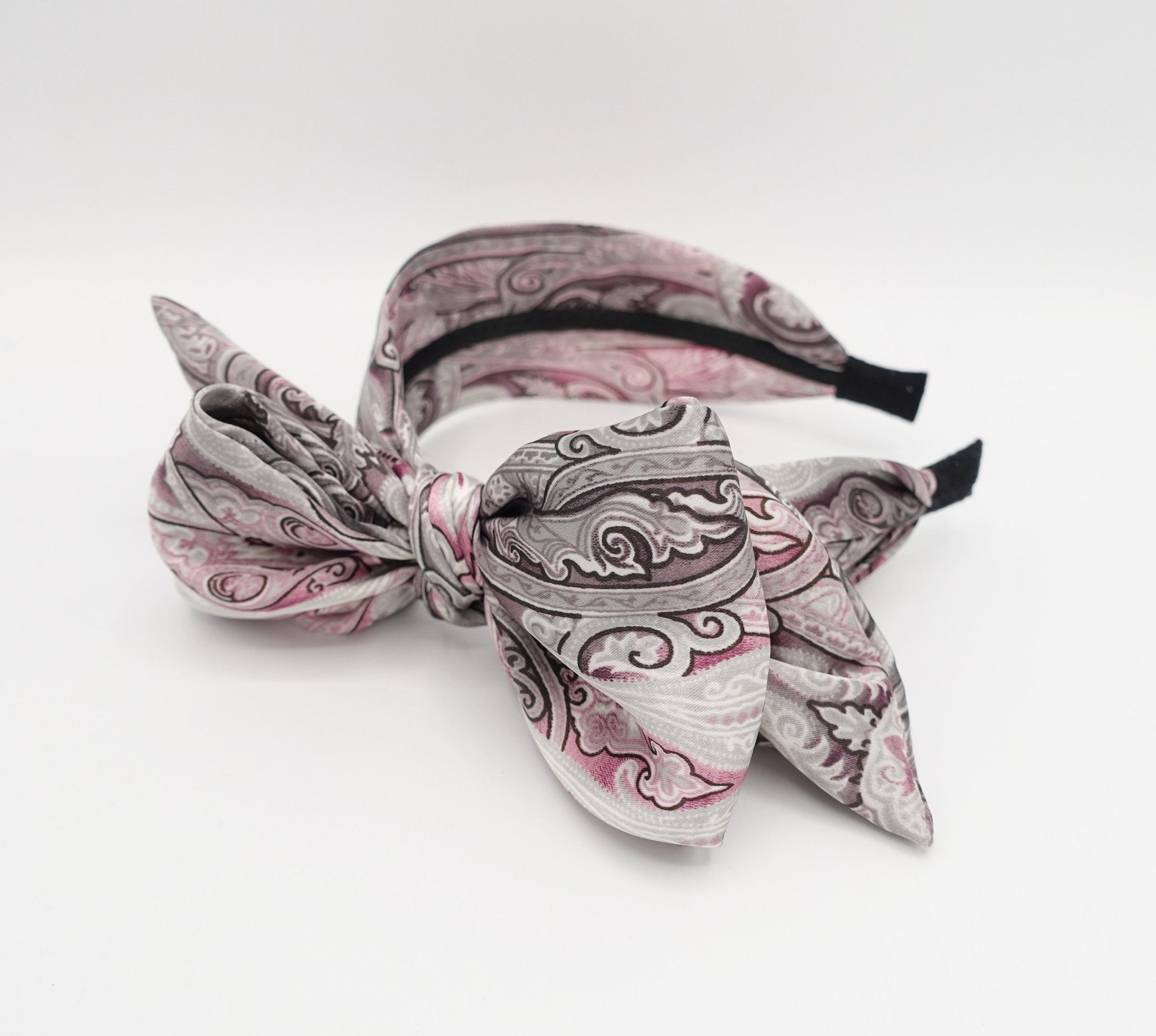 VeryShine Headband Pink gray silk satin bow knot headband paisley print hairband luxury hair accessory for women