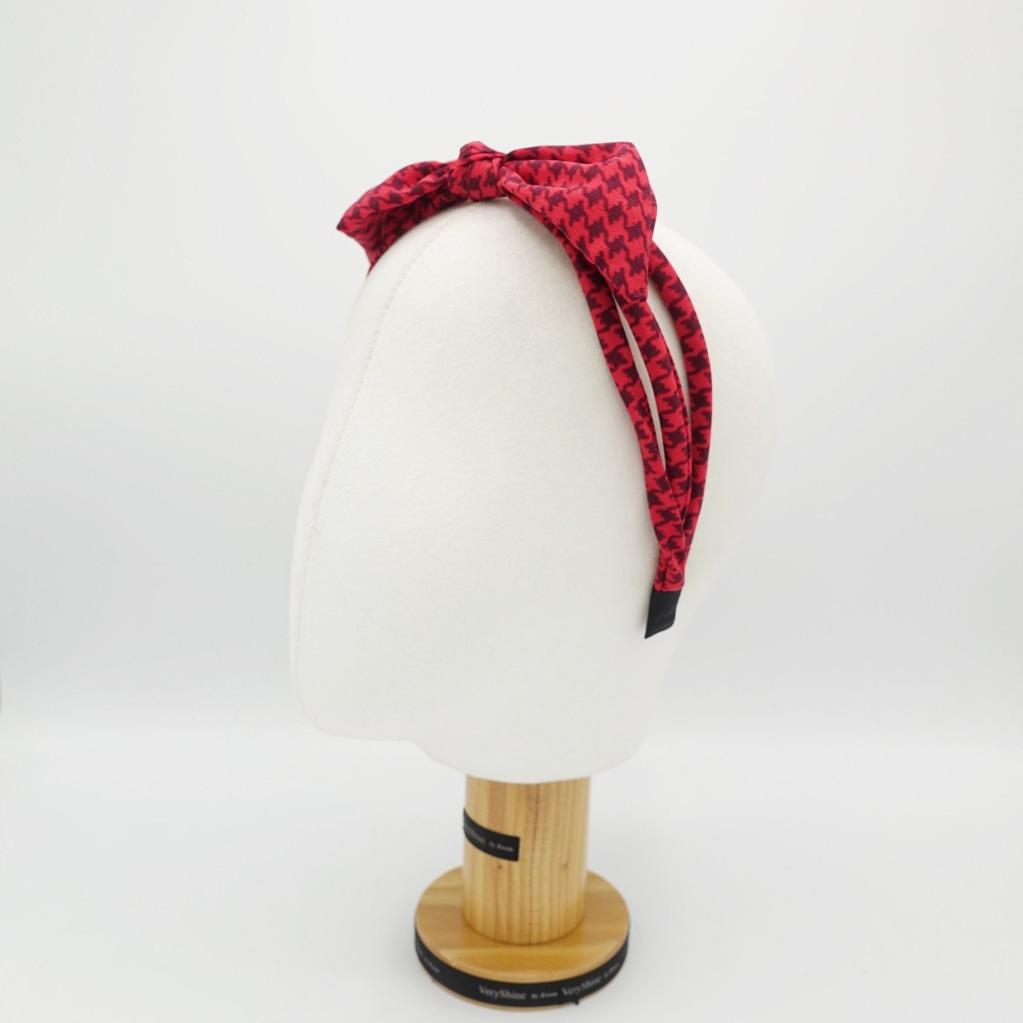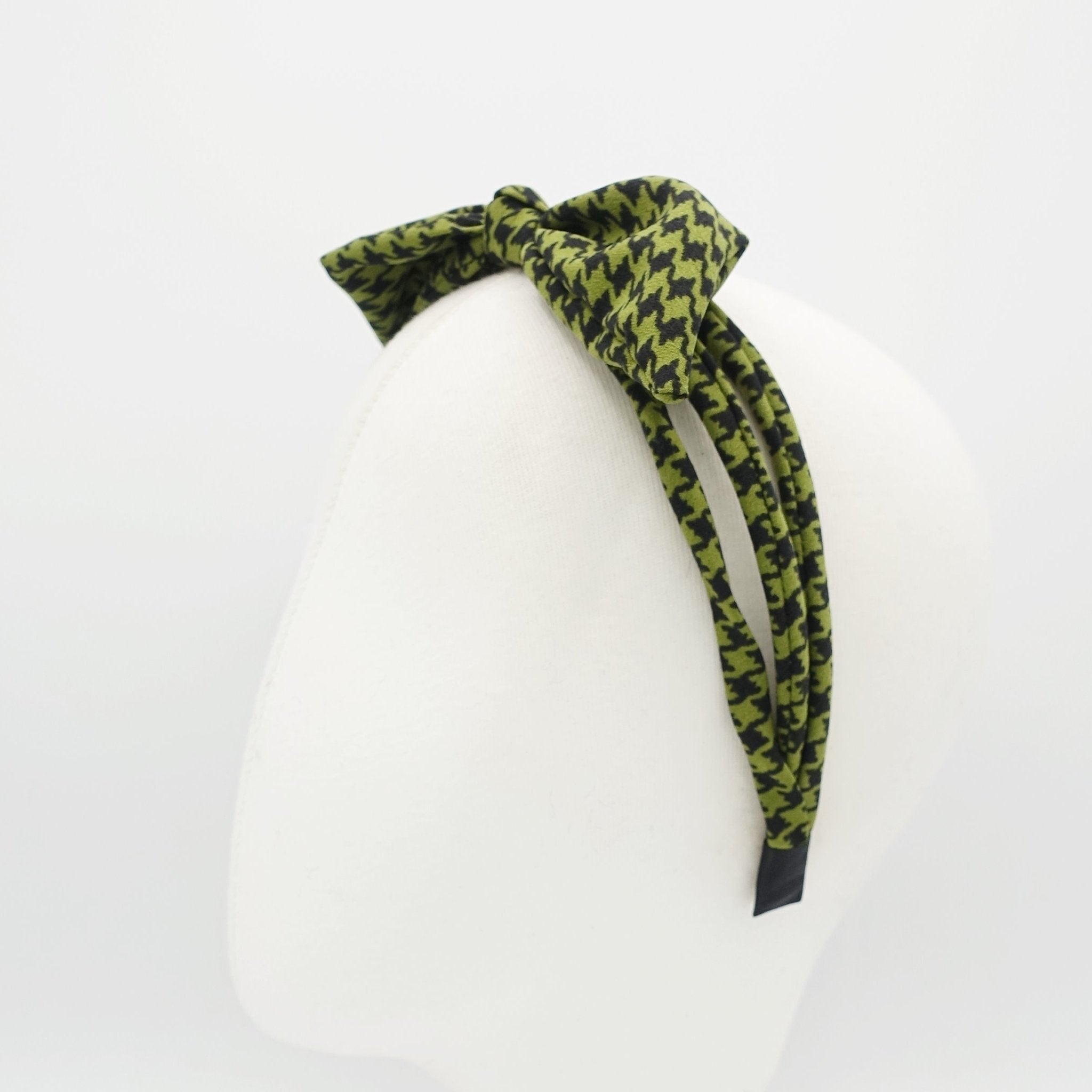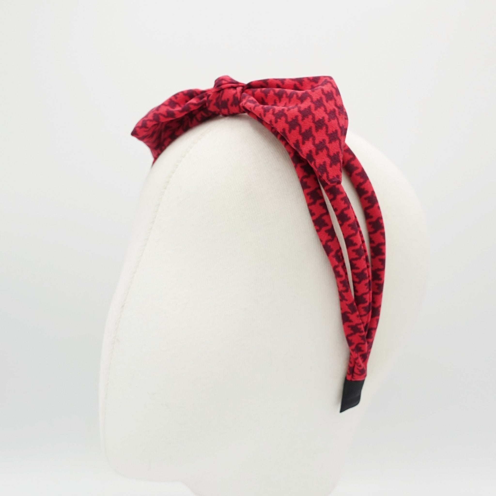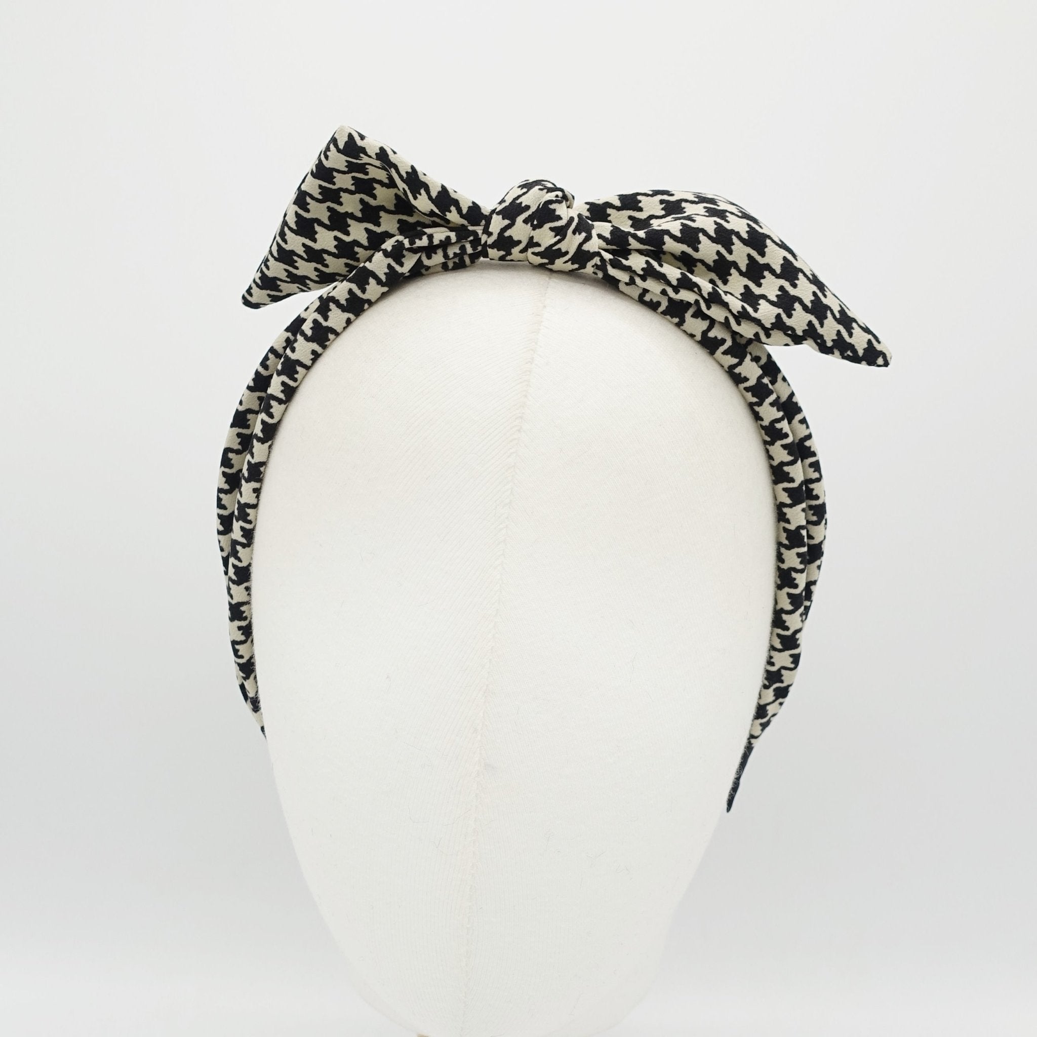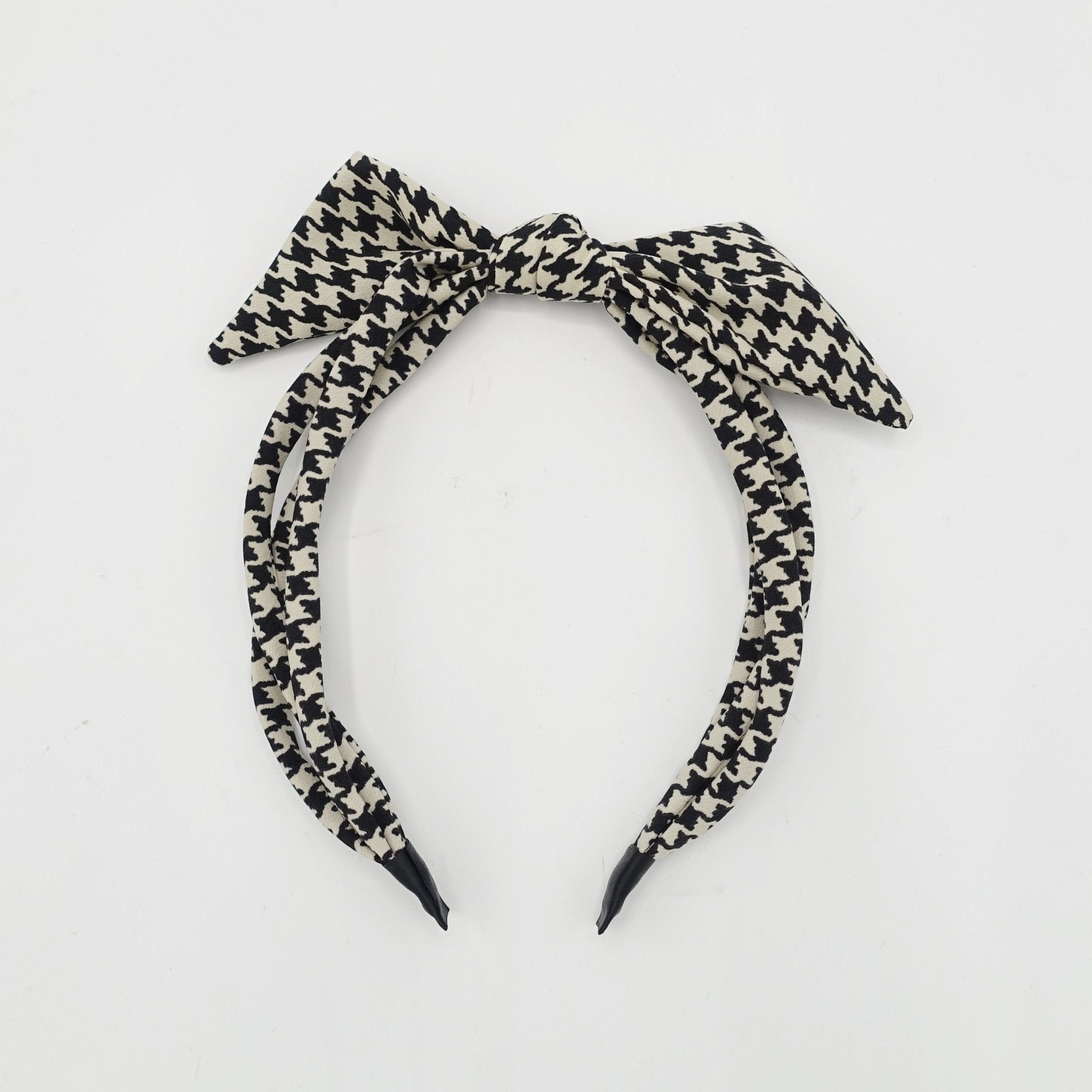 dreisträngiges Stirnband mit Hahnentrittmuster und Bogenknoten, dünnes – veryshine.com
