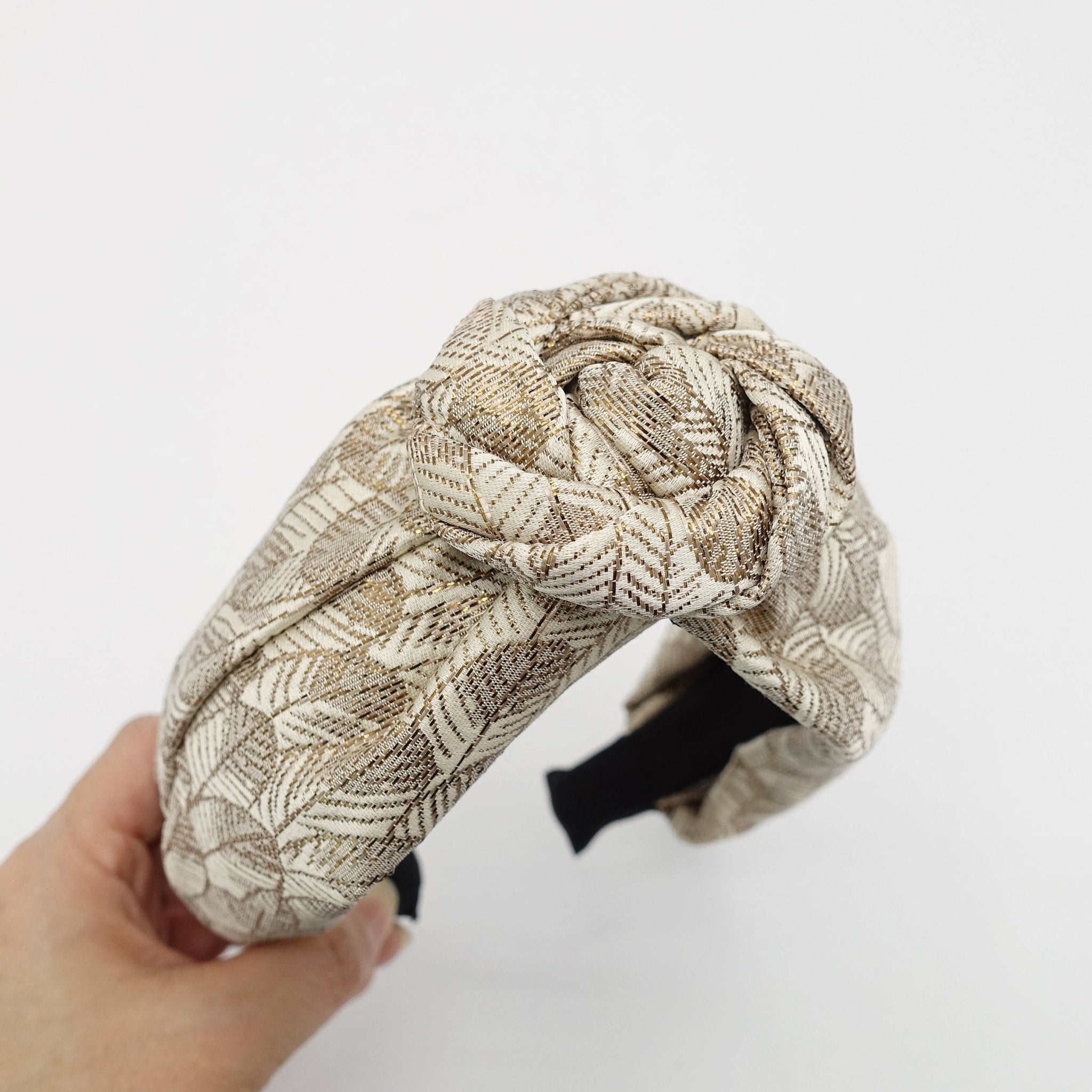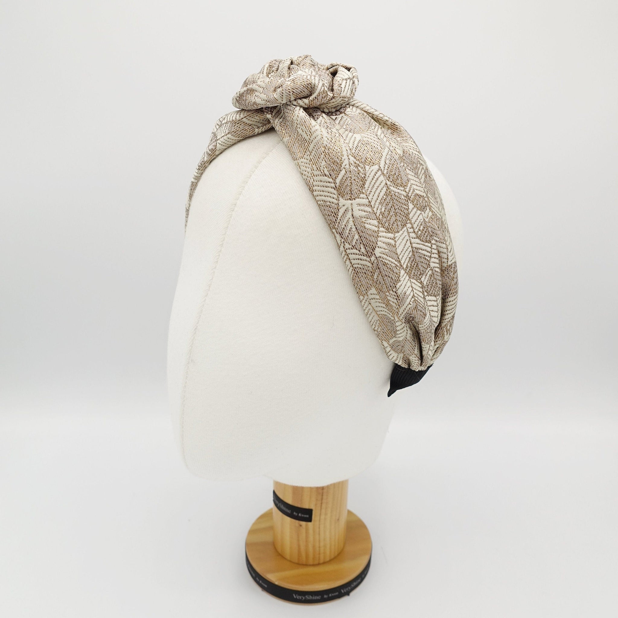 veryshine.com Headband Beige wired floral circle knot flower headband golden leaf jacquard hairband luxury women hair accessory