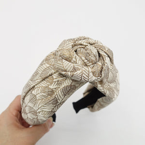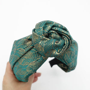 verdrahtetes florales Kreisknoten-Blumenstirnband goldenes Blatt Jacquard-Haarband Luxus-Haar-Accessoire für Frauen