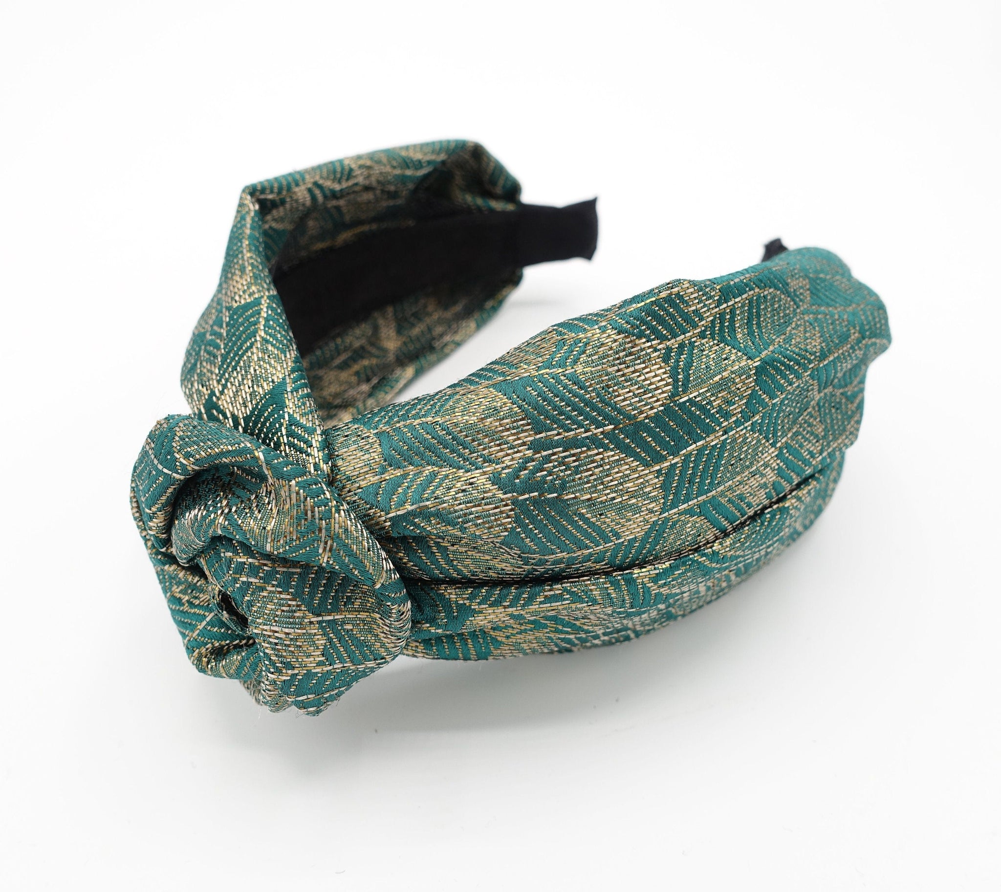 veryshine.com Headband Green wired floral circle knot flower headband golden leaf jacquard hairband luxury women hair accessory