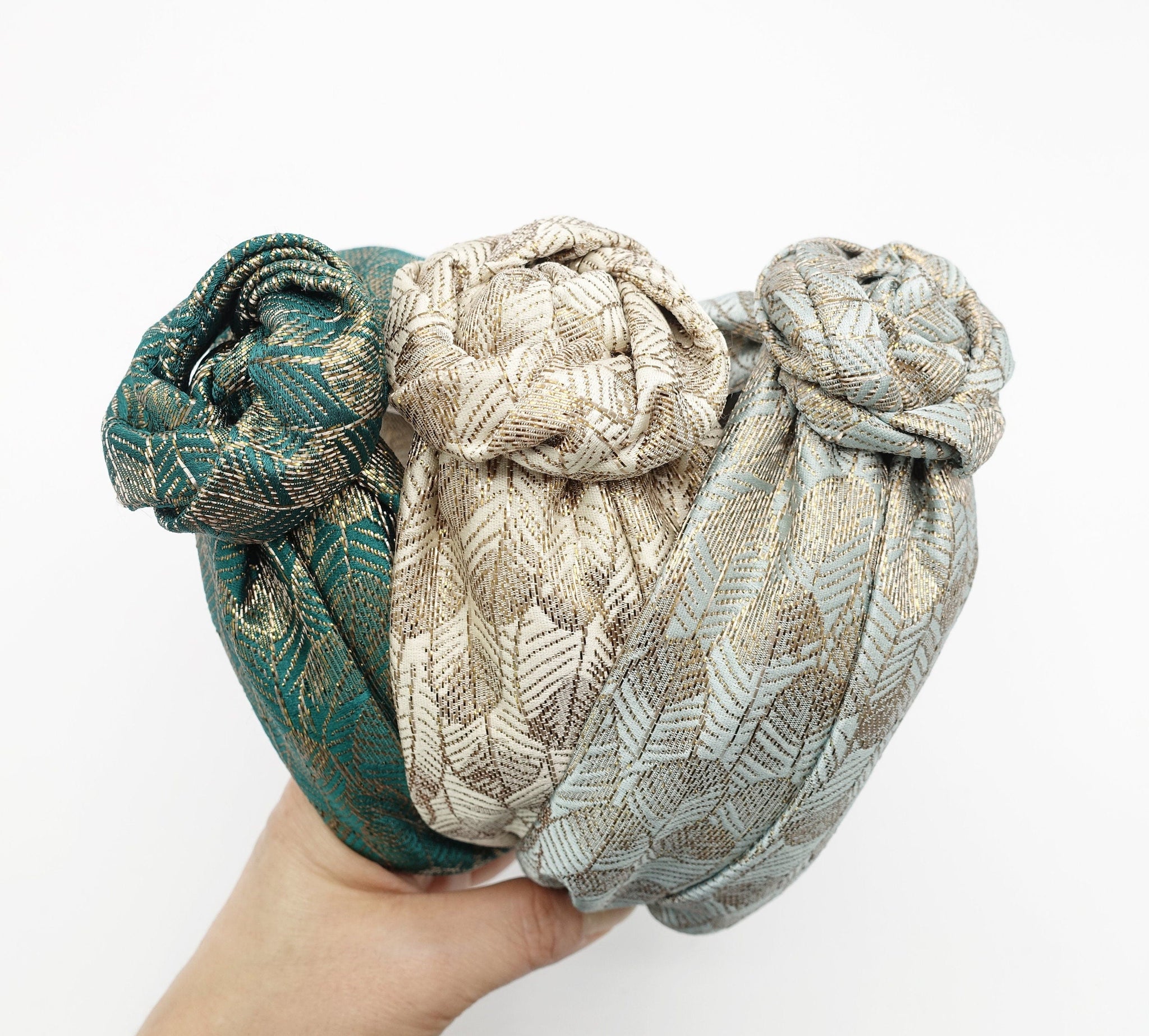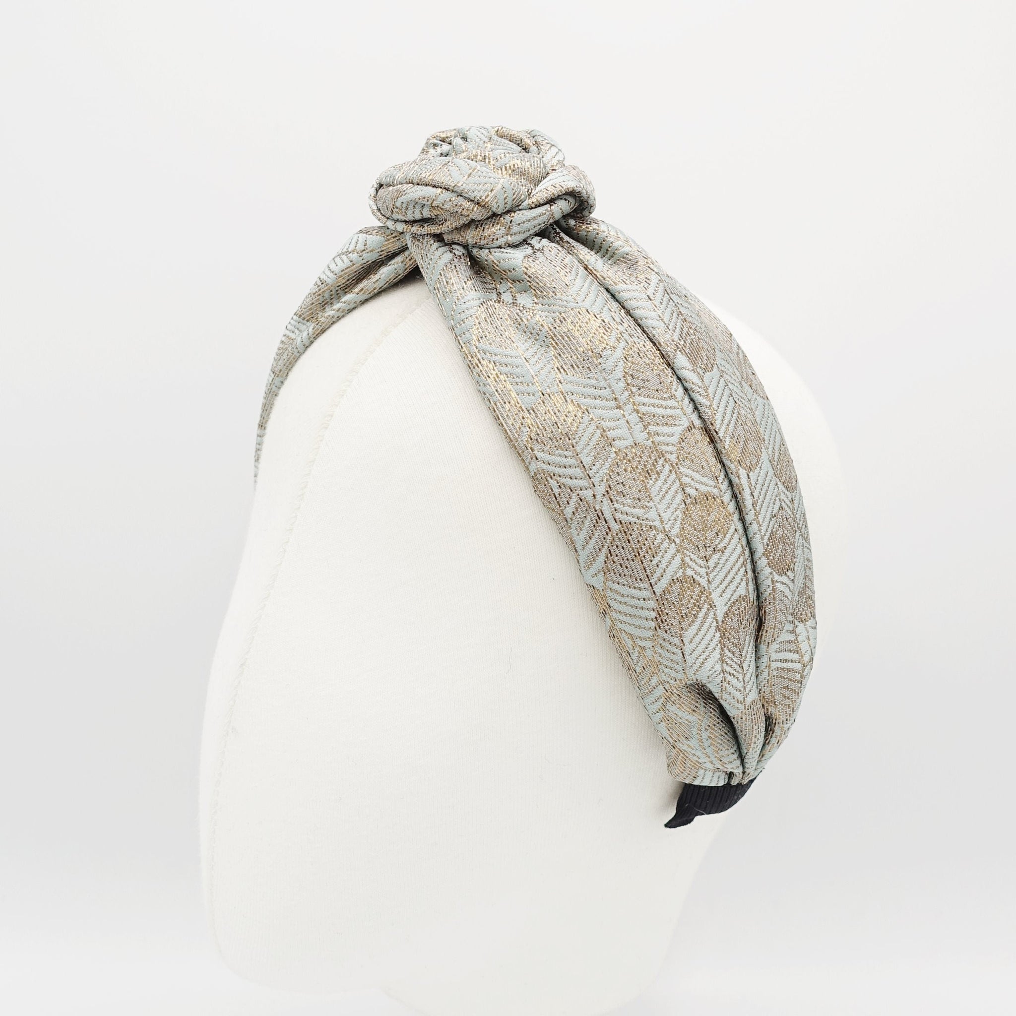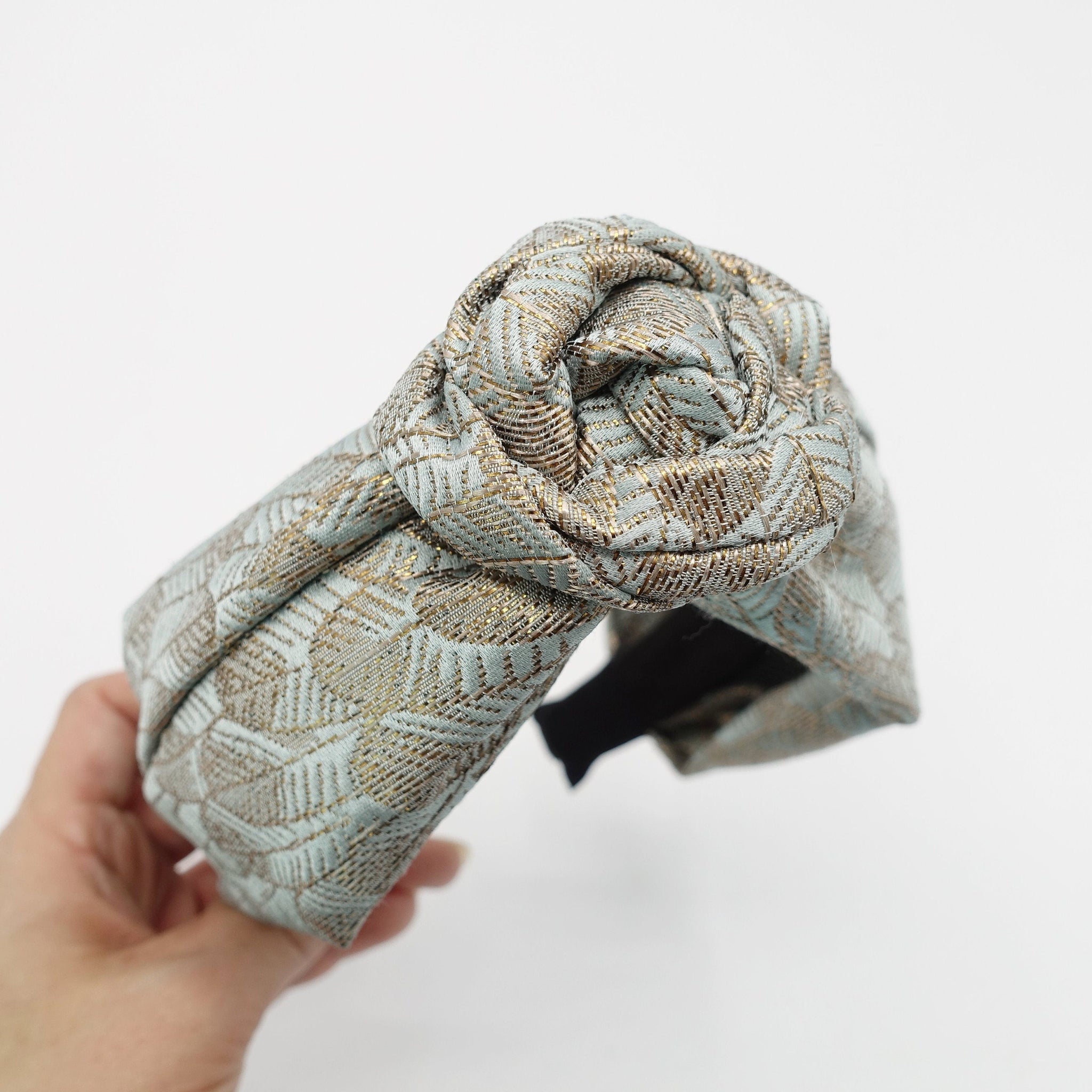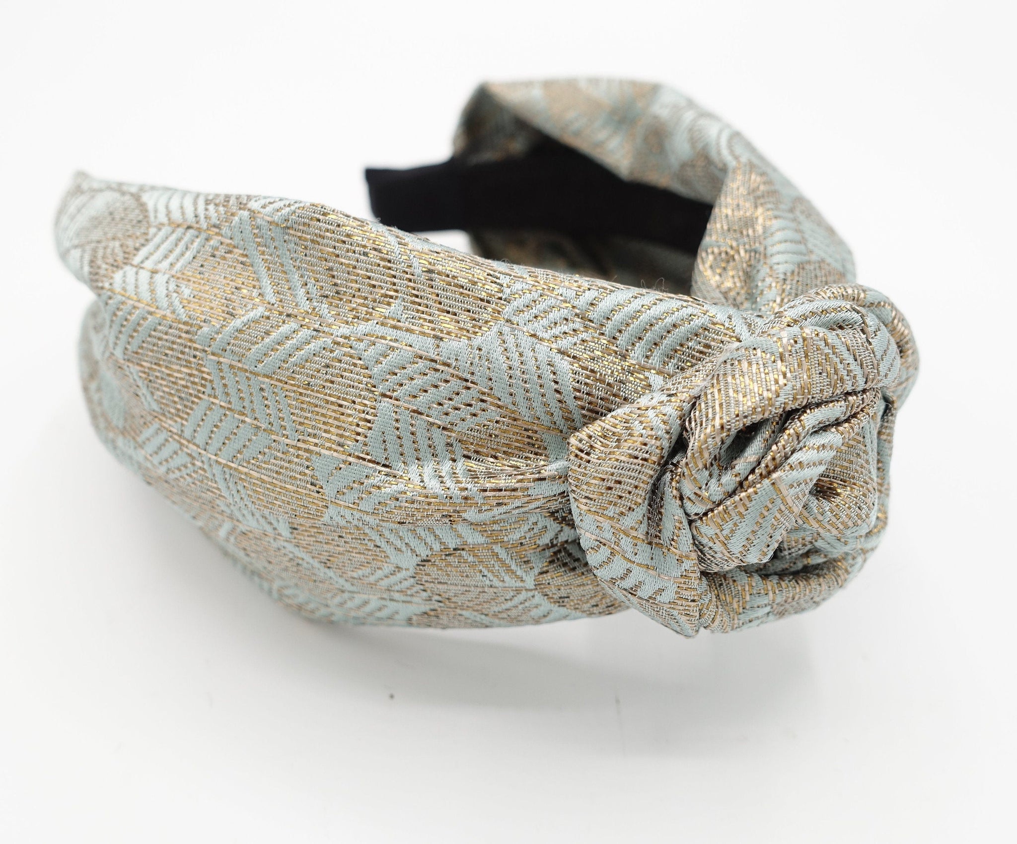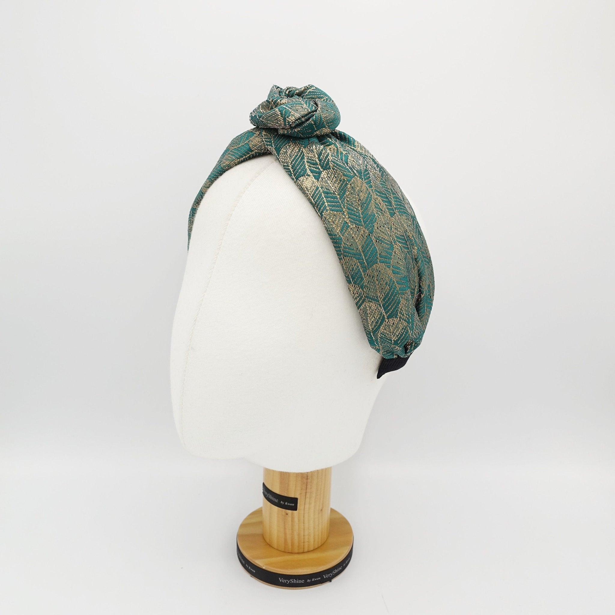 veryshine.com Headband Mint wired floral circle knot flower headband golden leaf jacquard hairband luxury women hair accessory