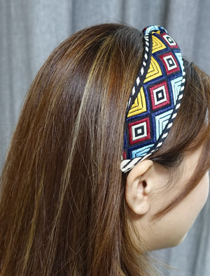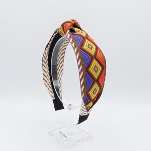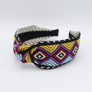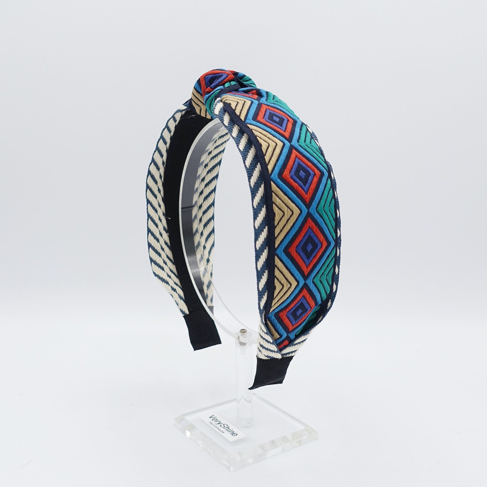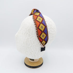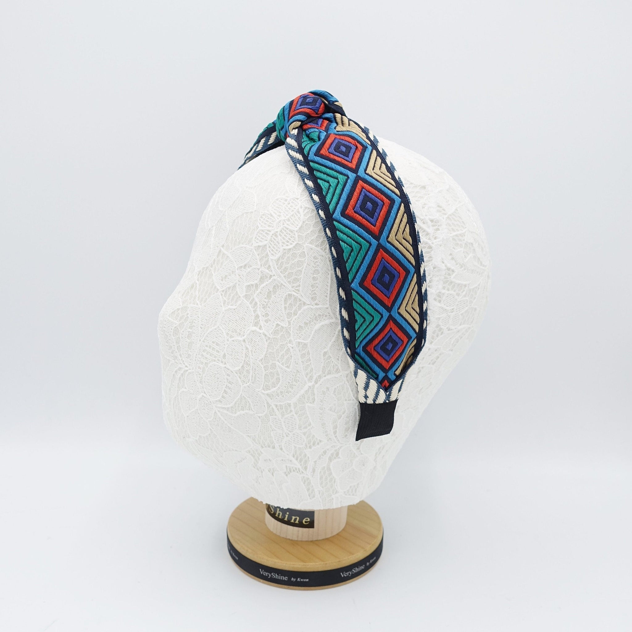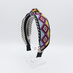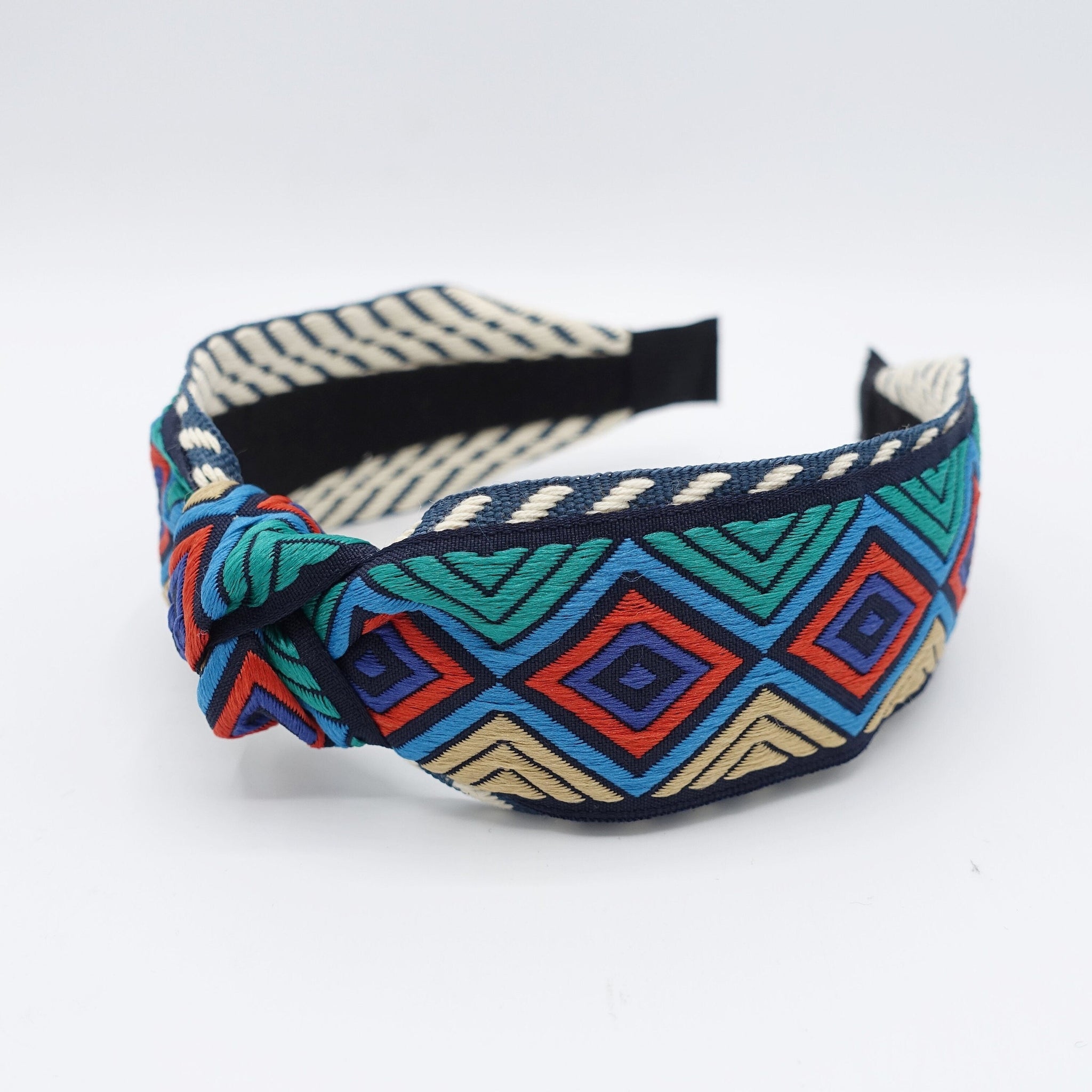 diamond embroidery headband top knot diagonal pattern hairband for women