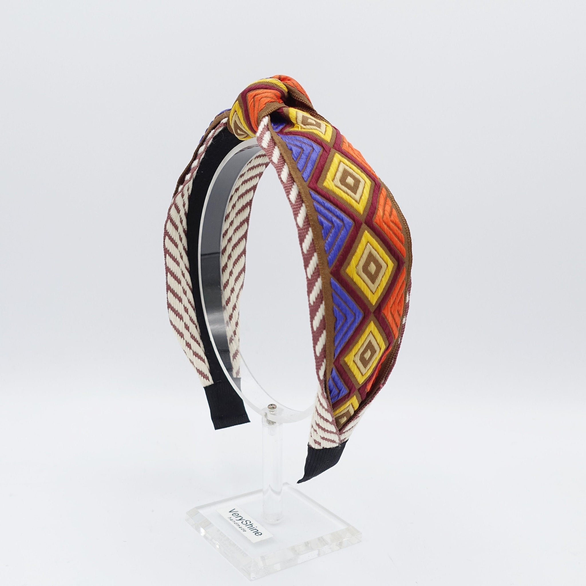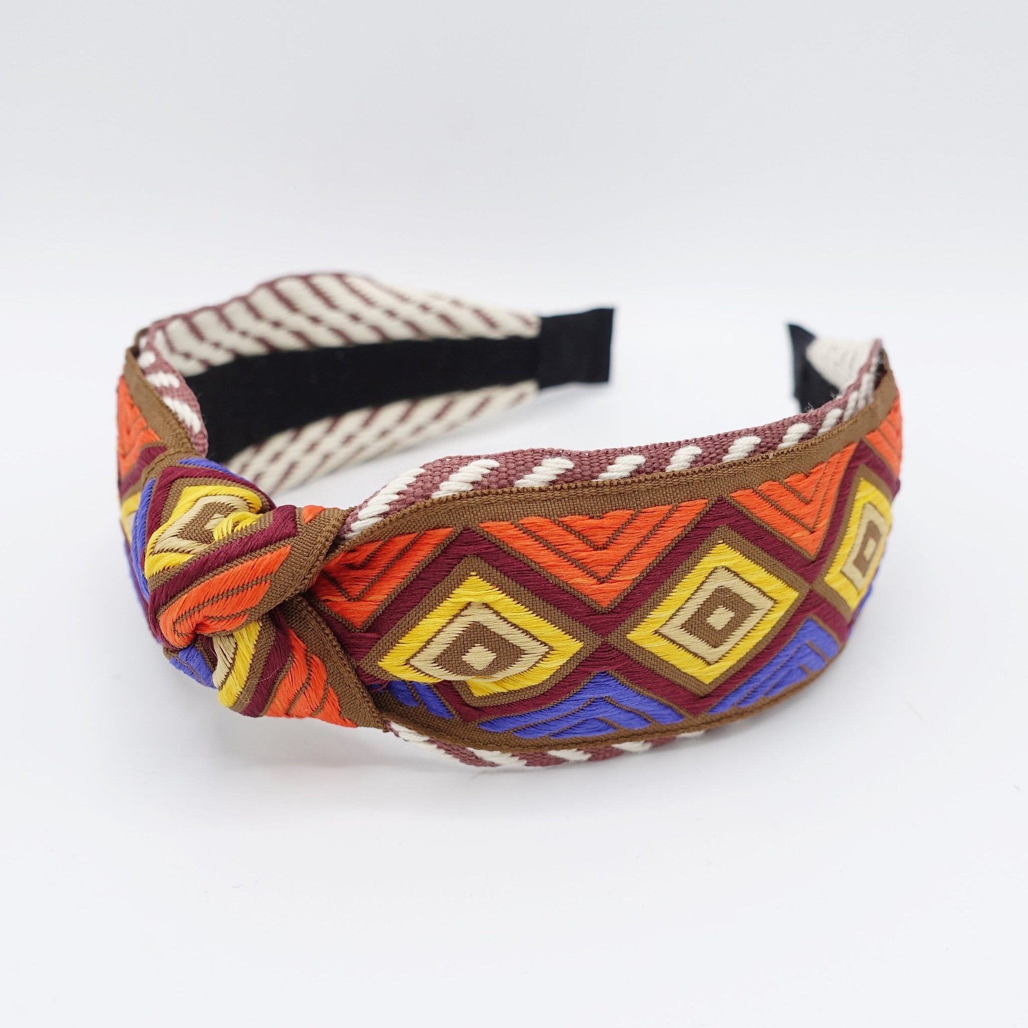 VeryShine Headband Orange diamond embroidery headband top knot diagonal pattern hairband for women