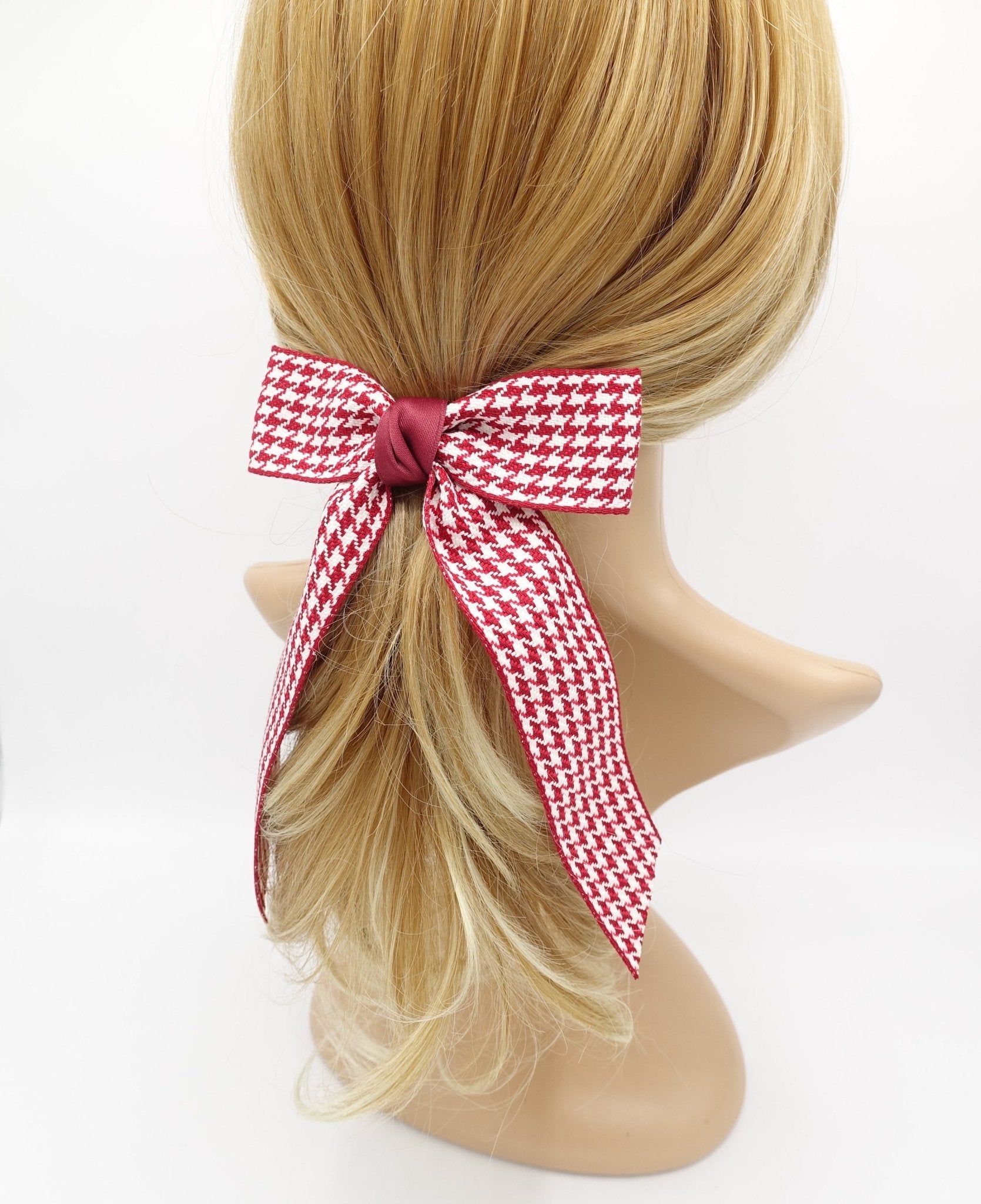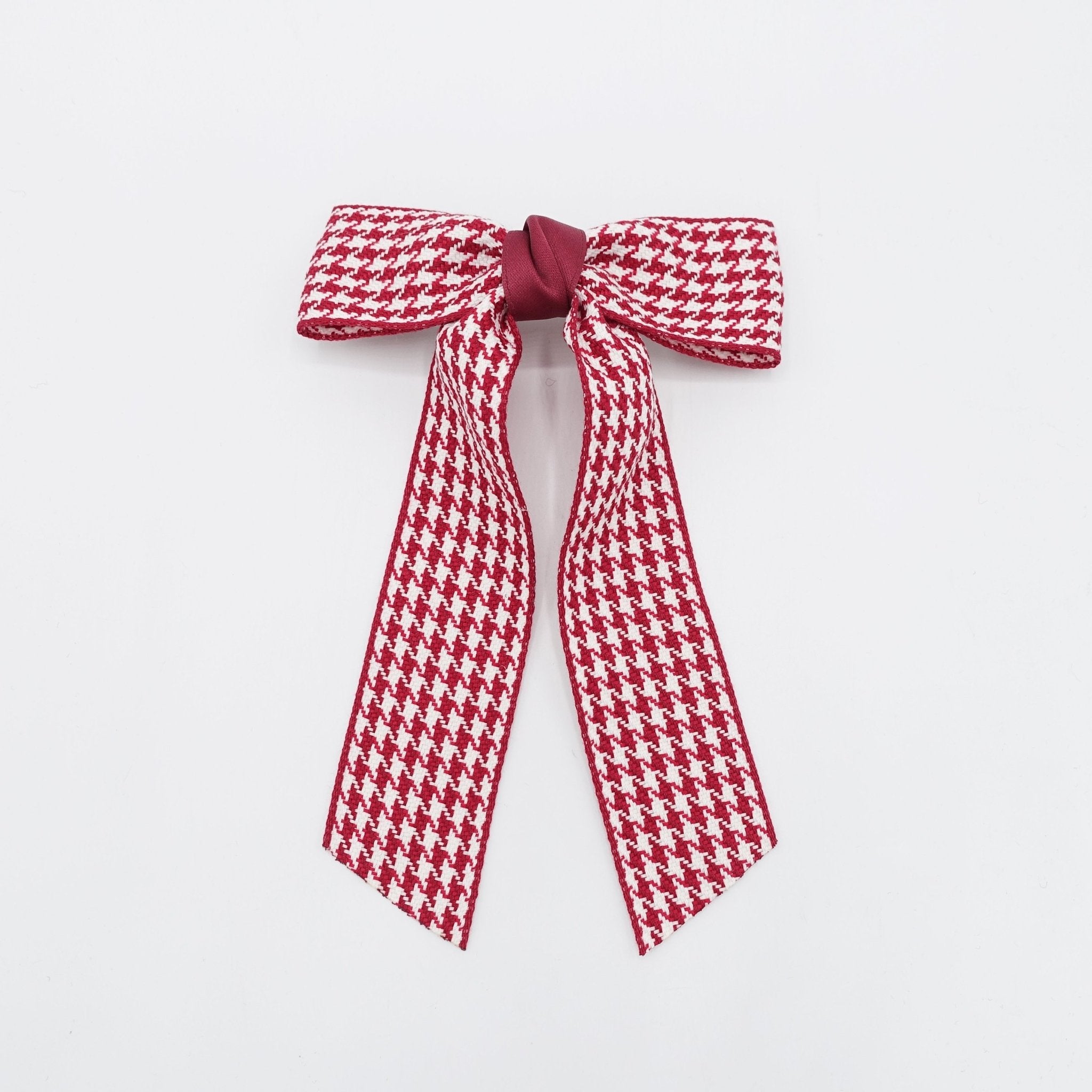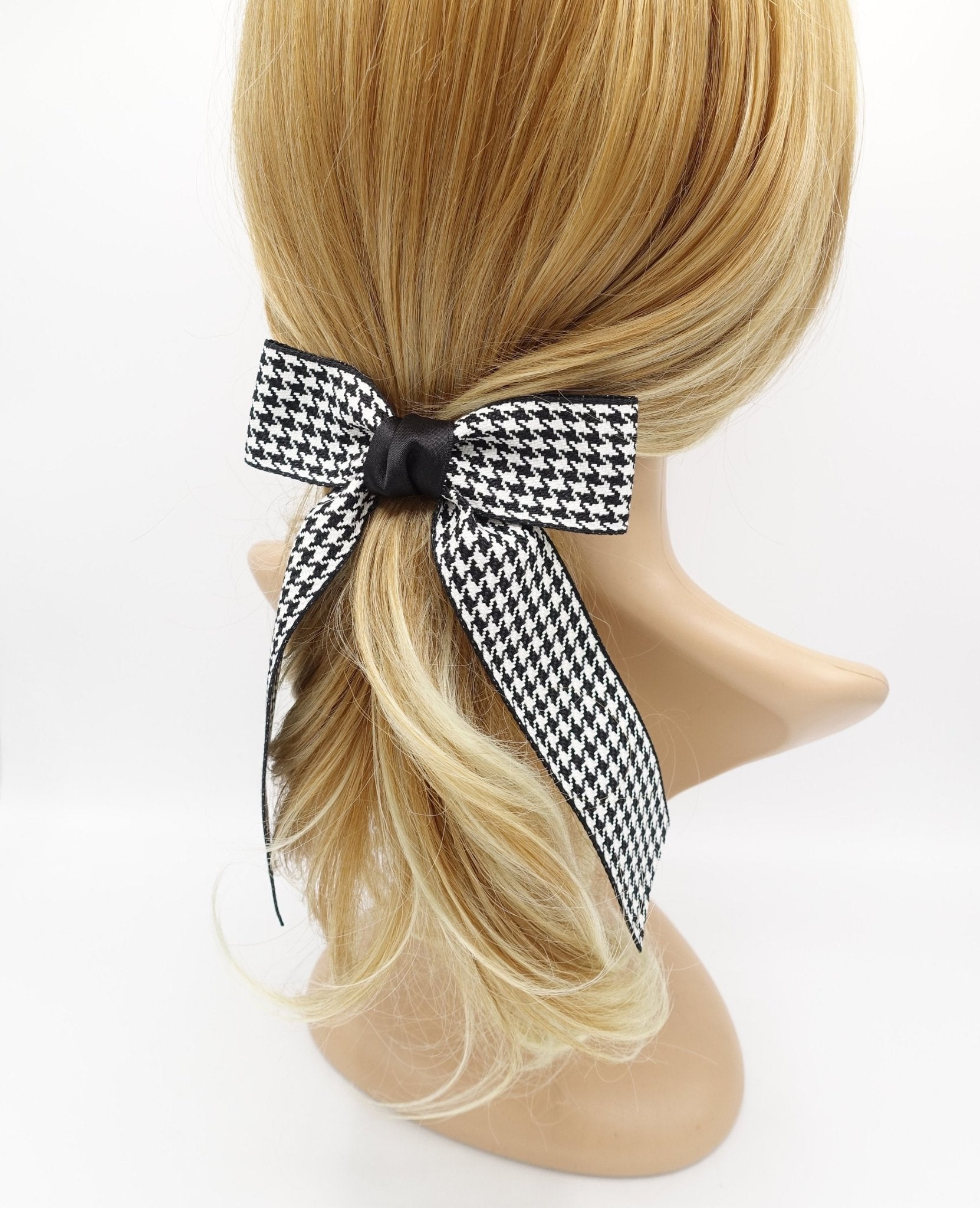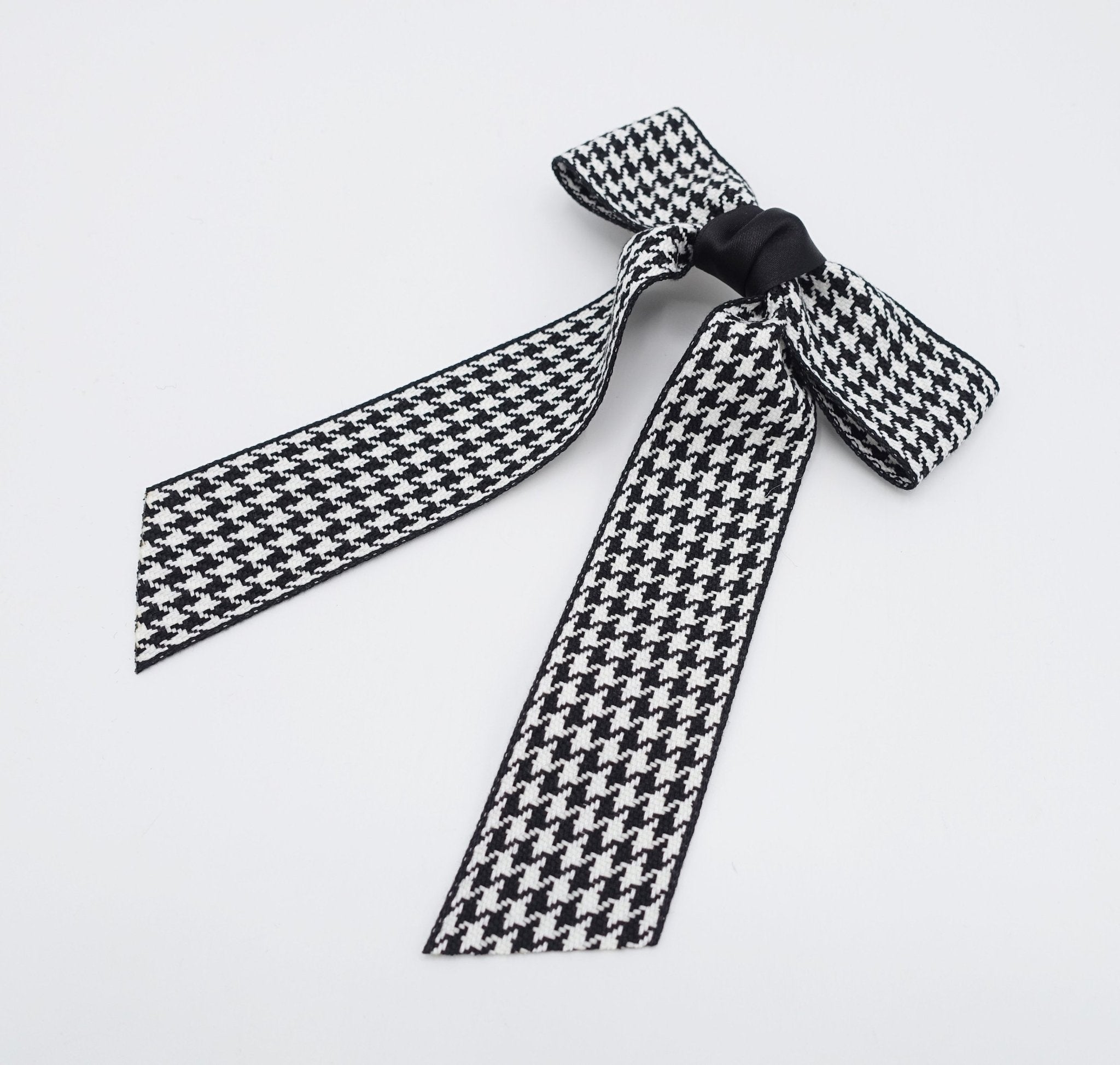houndstooth longtail hair bow check basic hair barrette for women – veryshine.com