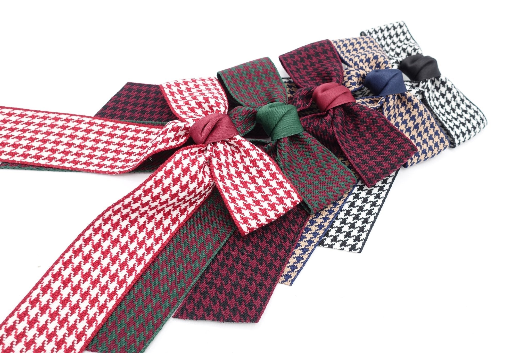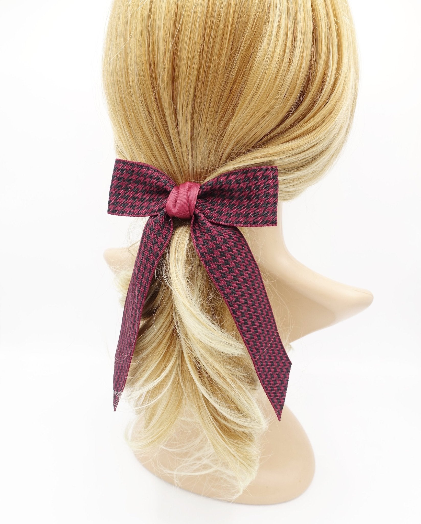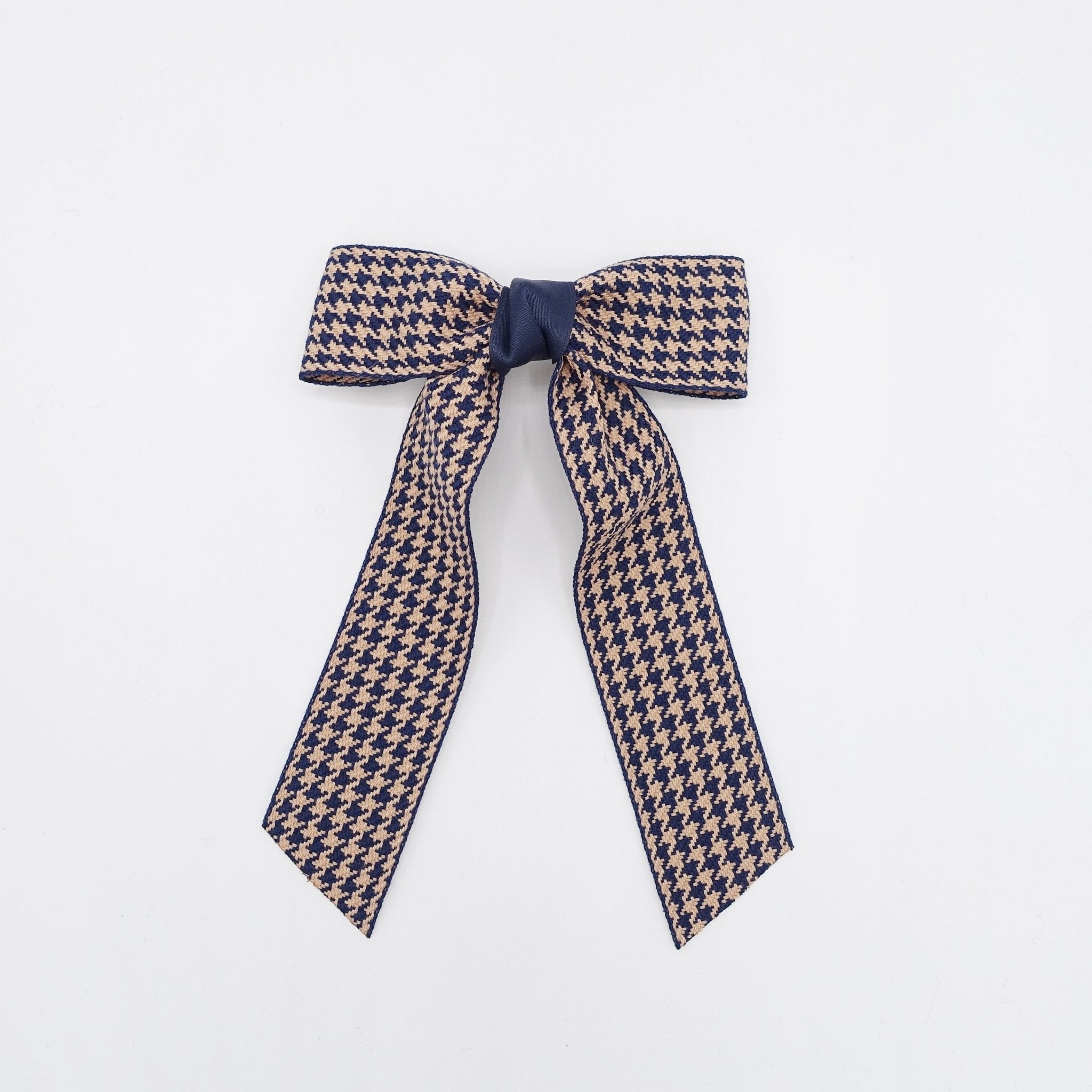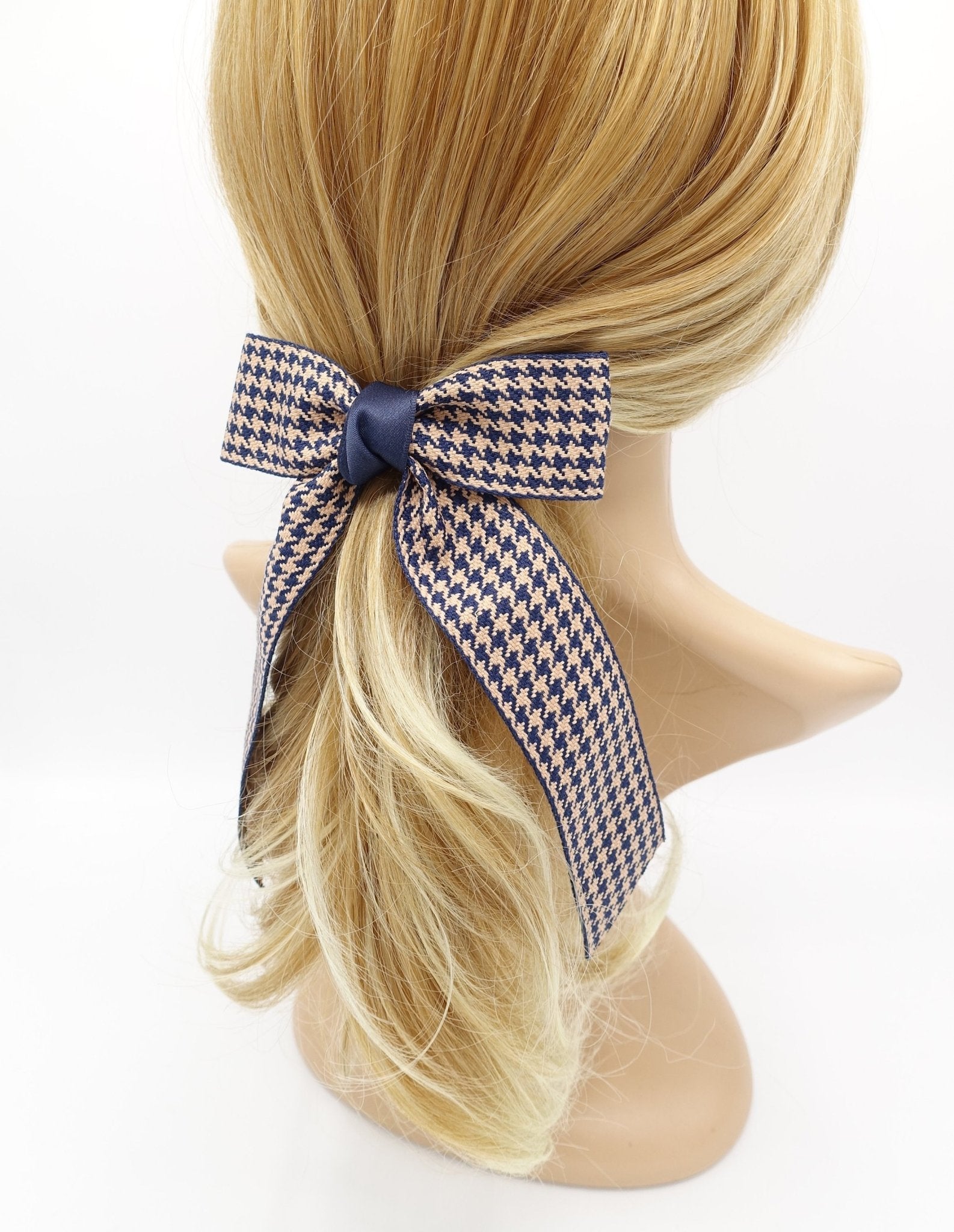 houndstooth longtail hair bow check basic hair barrette for women – veryshine.com
