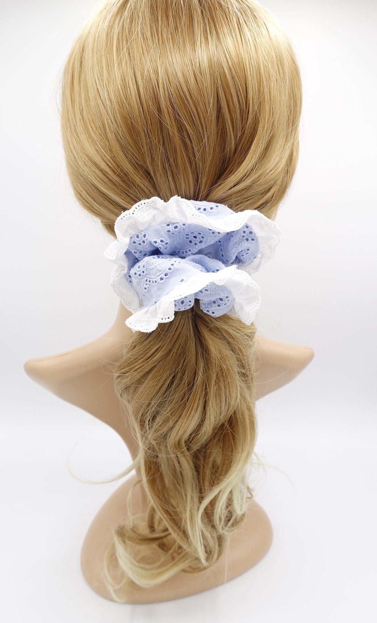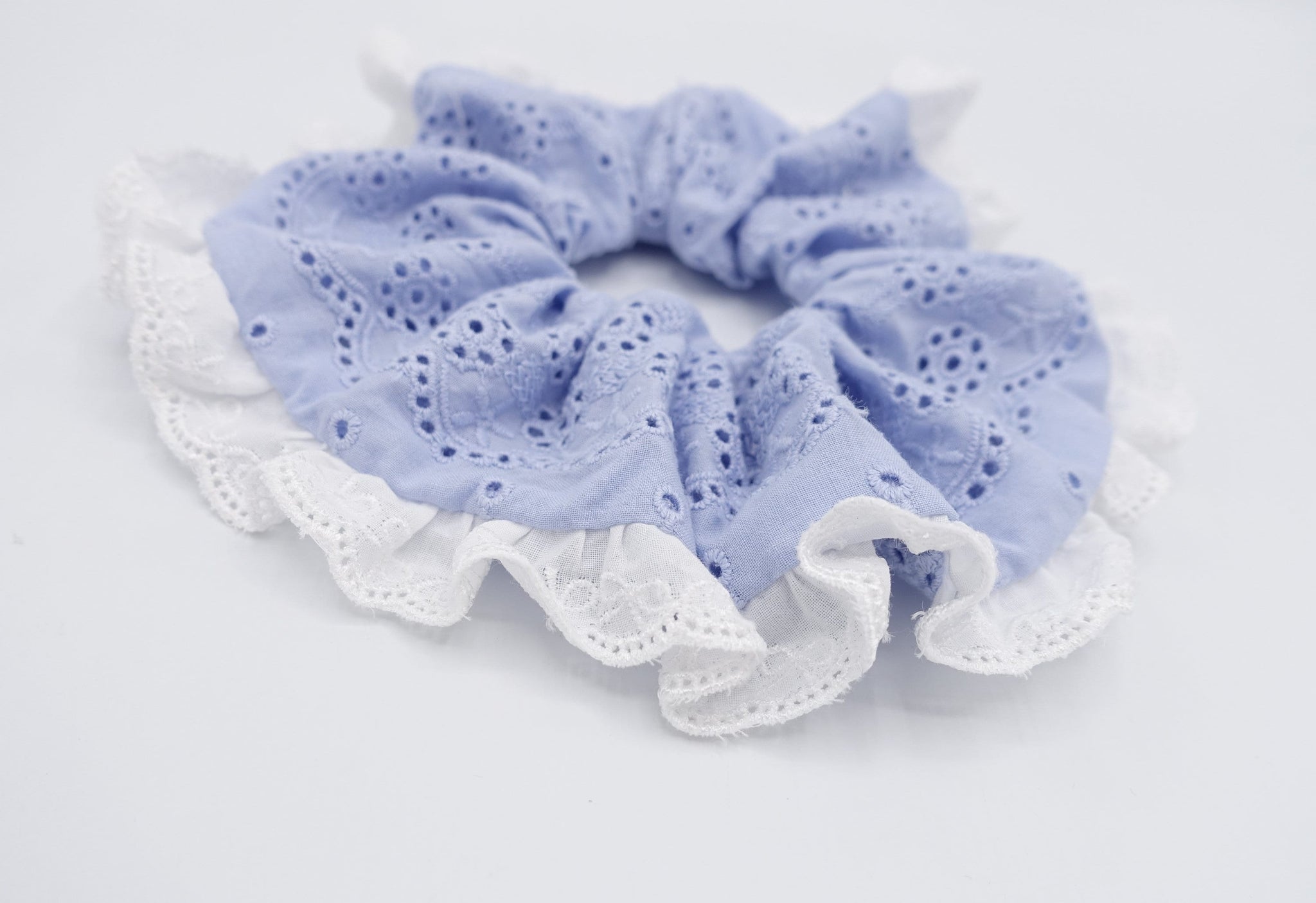 veryshine.com Scrunchies Sky blue lace scrunchies, eyelet lace scrunchies, cotton scrunchies for women