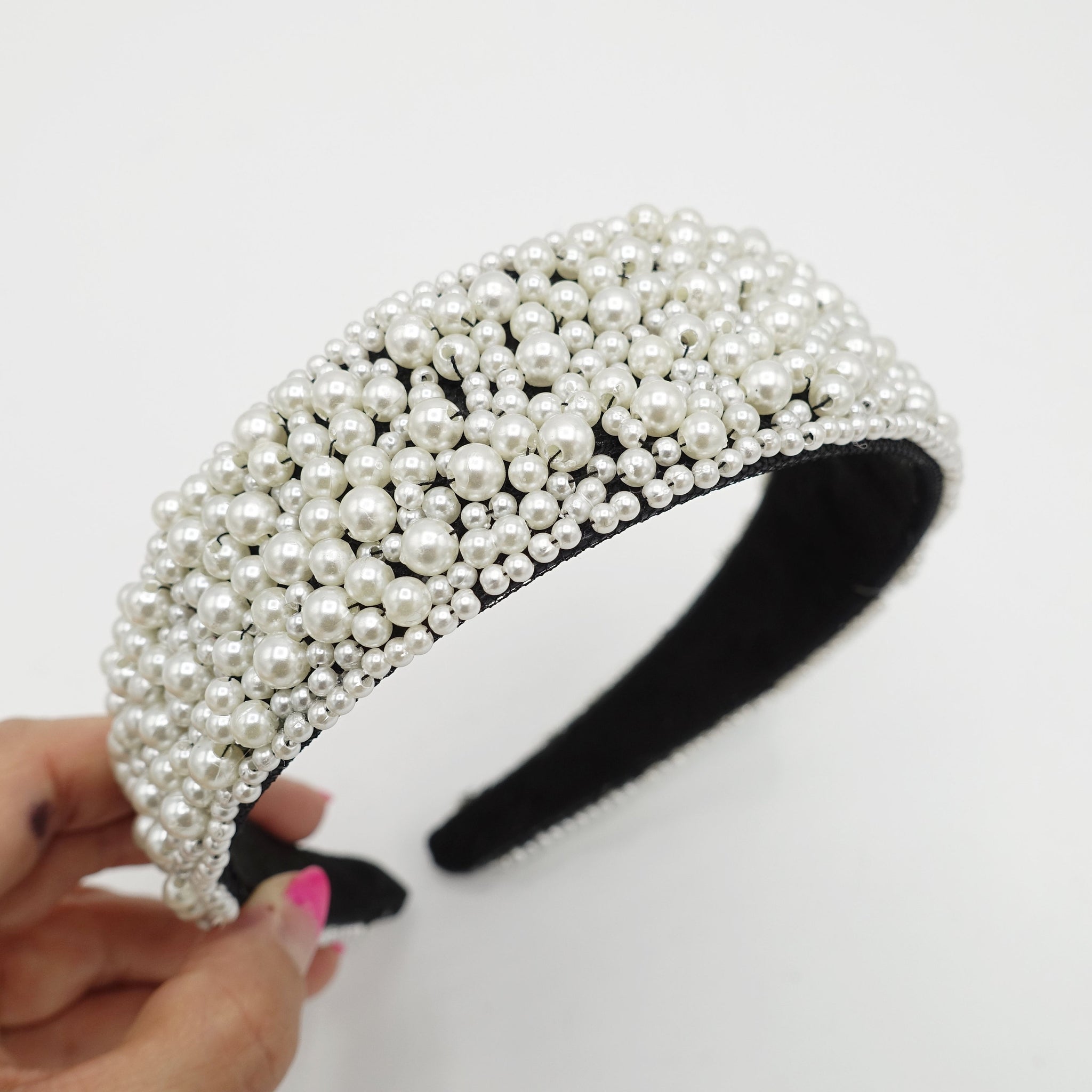 different sizes of pearl balls added onto the headband