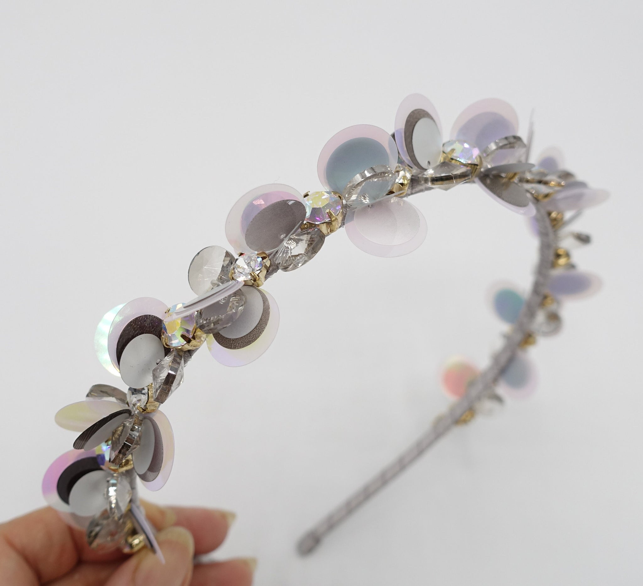 luxurious headband made of colorful sequins and colorful Czech rhinestone embellishment