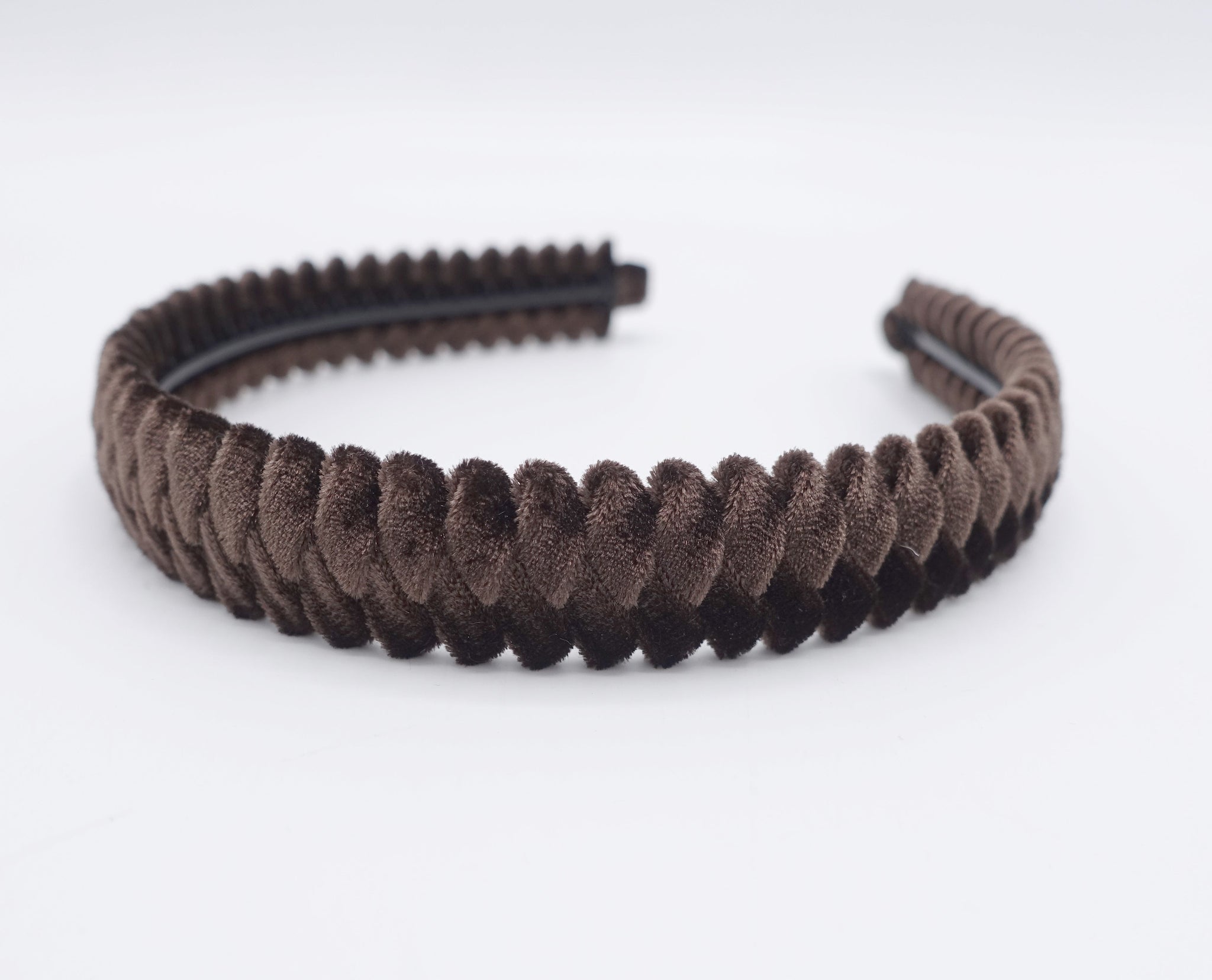 veryshine.com Headband Brown velvet wrapped headband saw pattern hairband women hair accessory