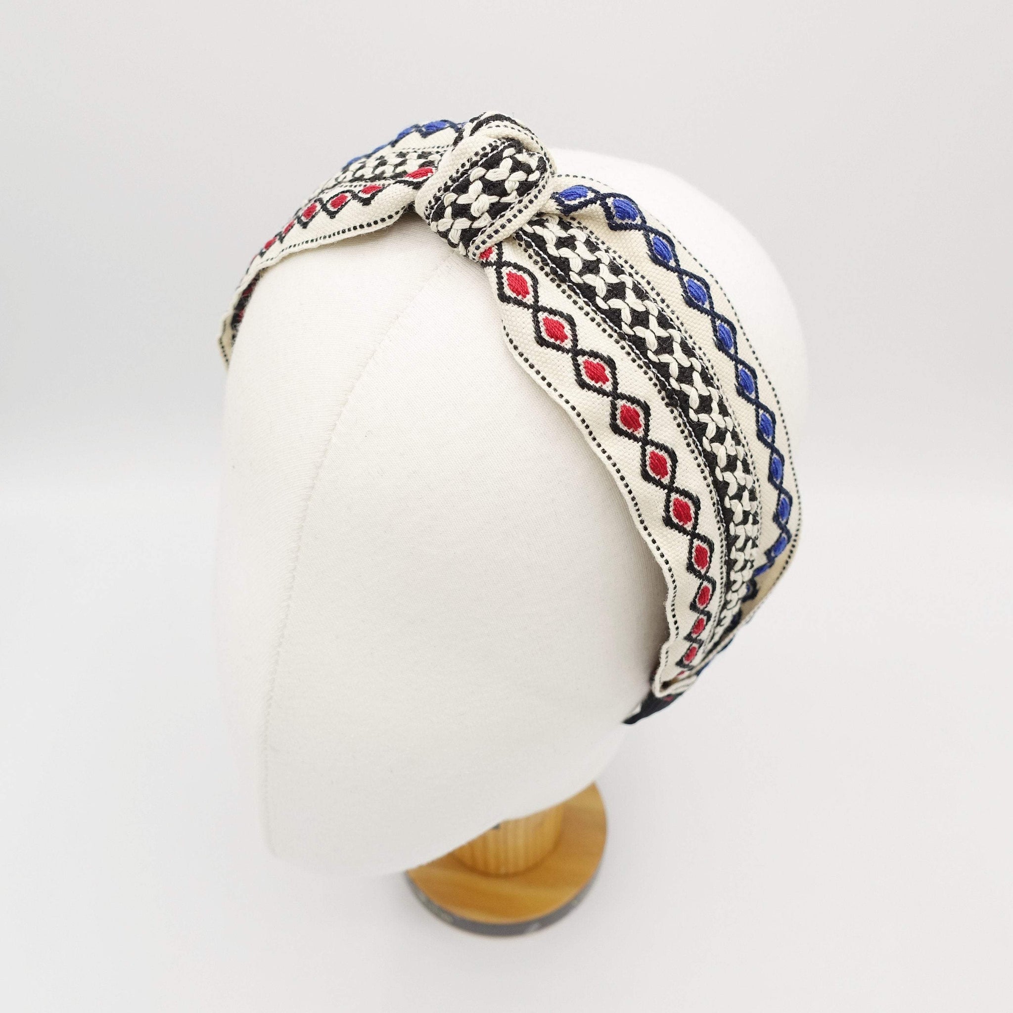 embroidered pattern headband bohemian top knot hairband stylish hair accessory for women