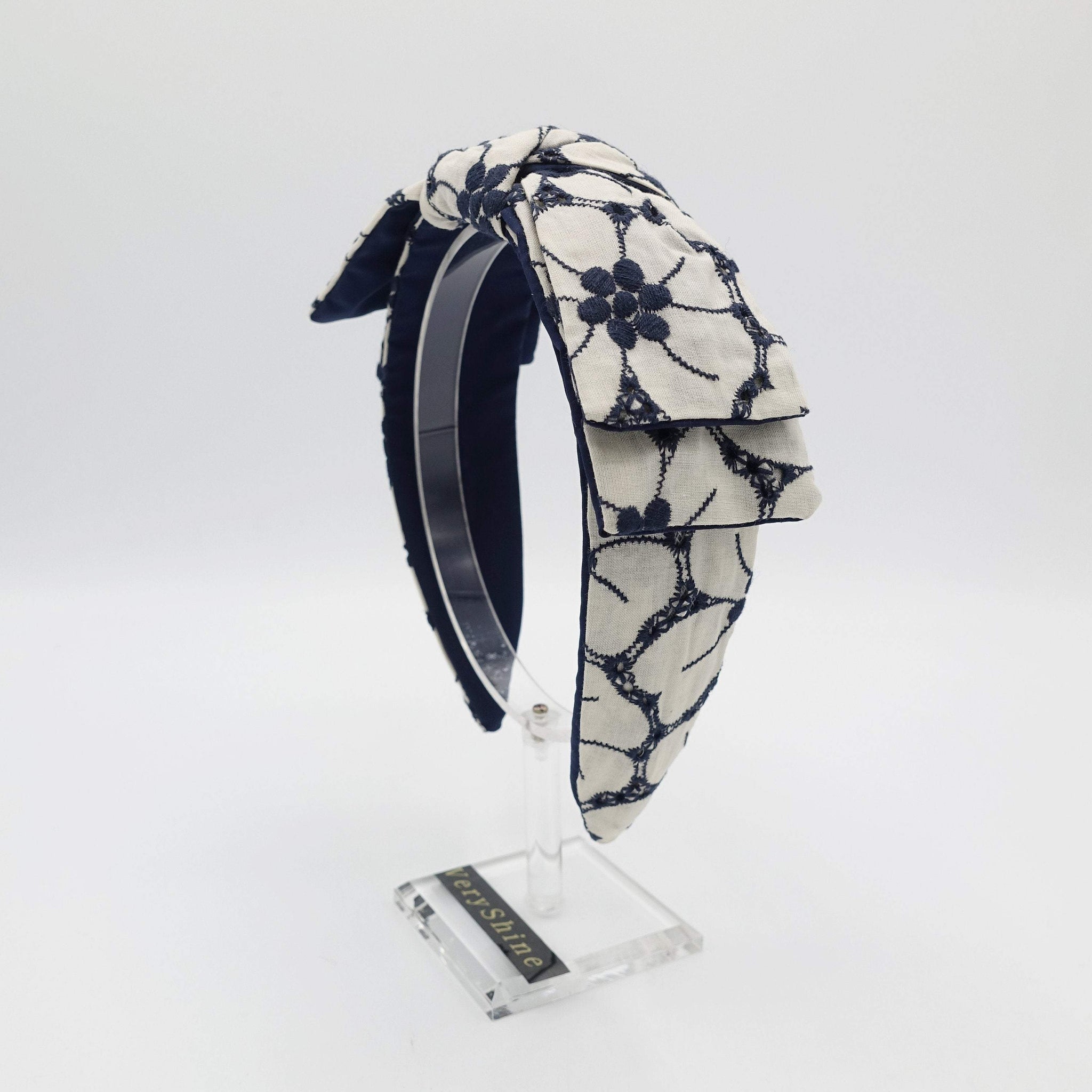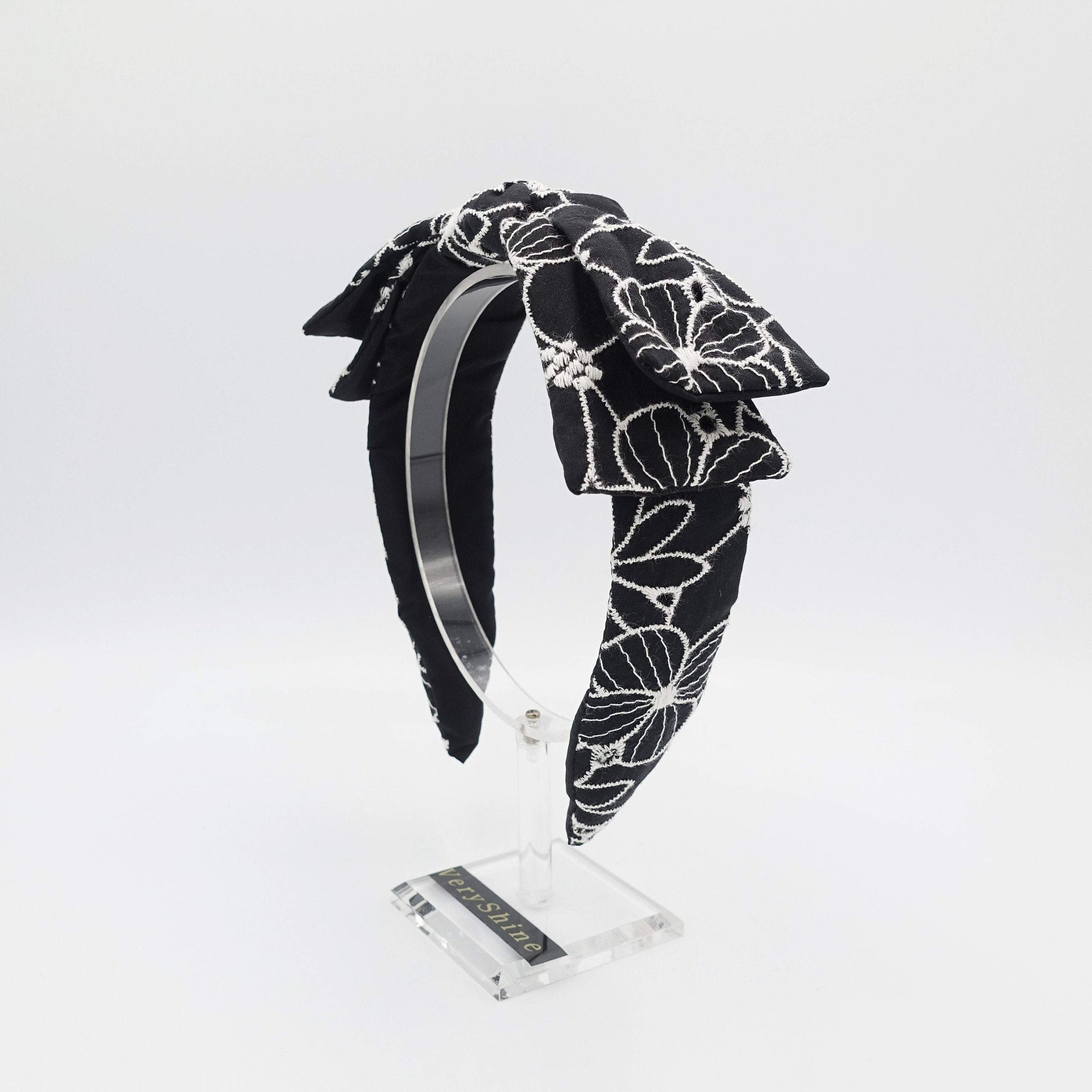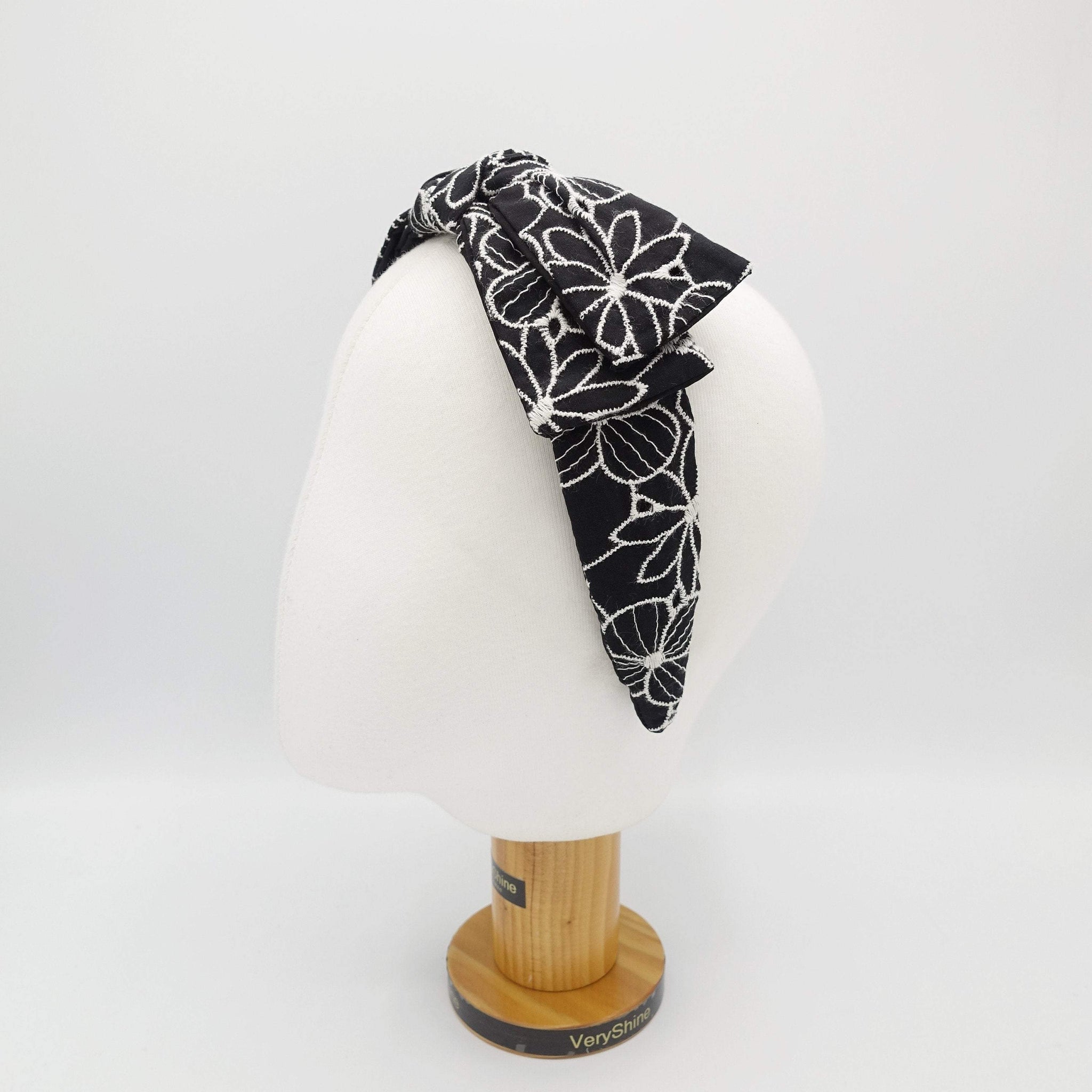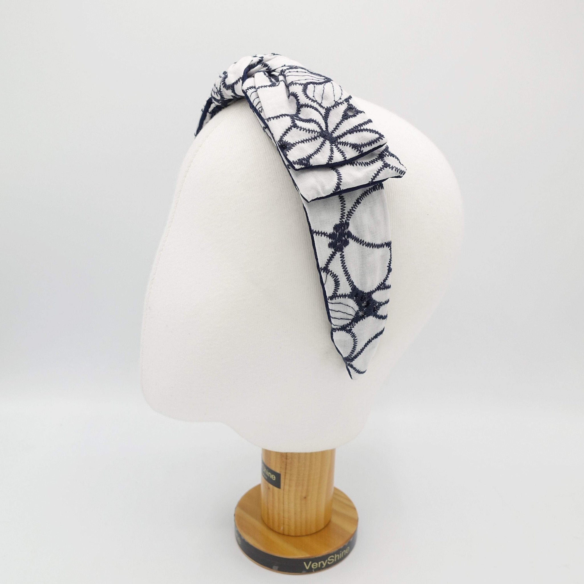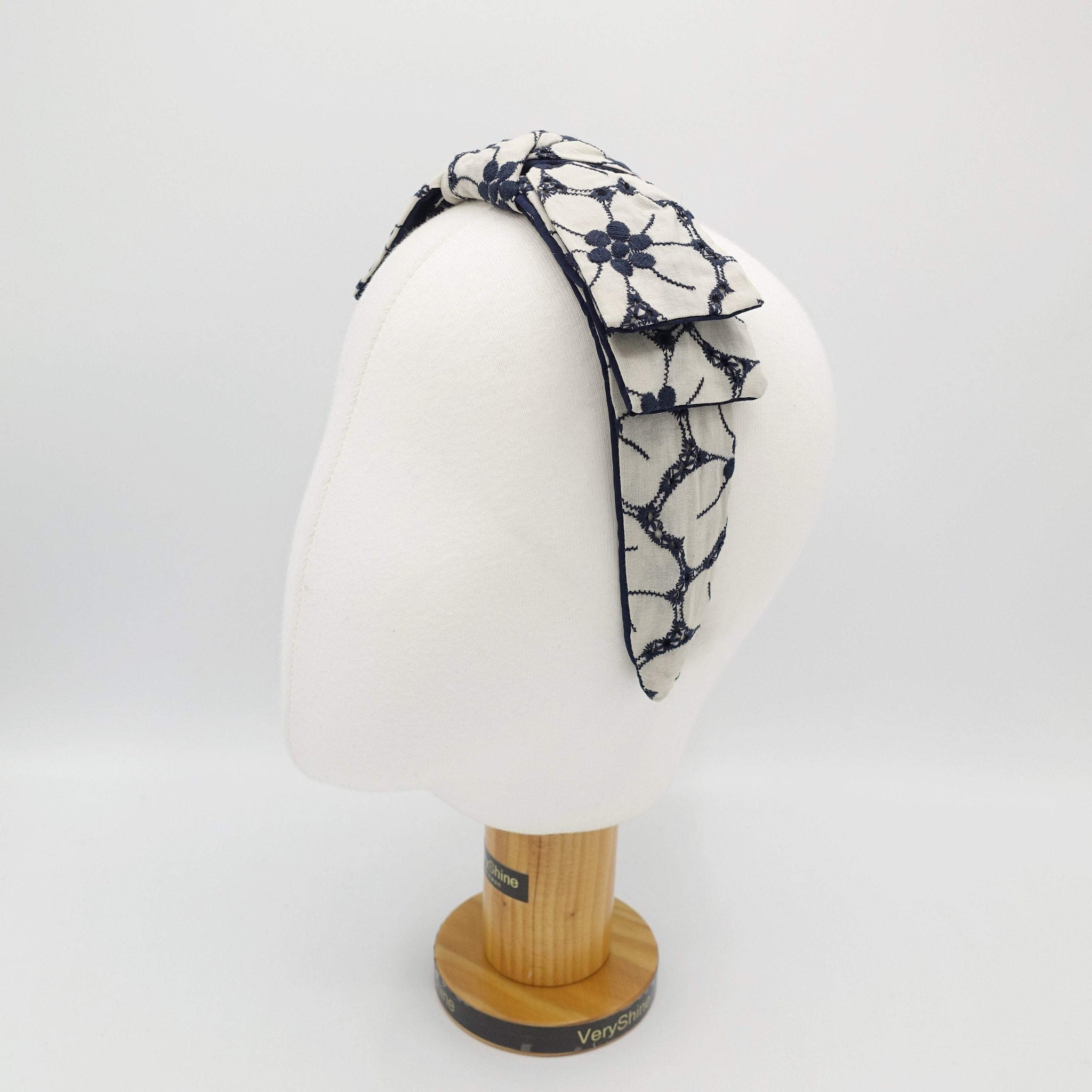 VeryShine flower embroidered headband wired bow knot headband