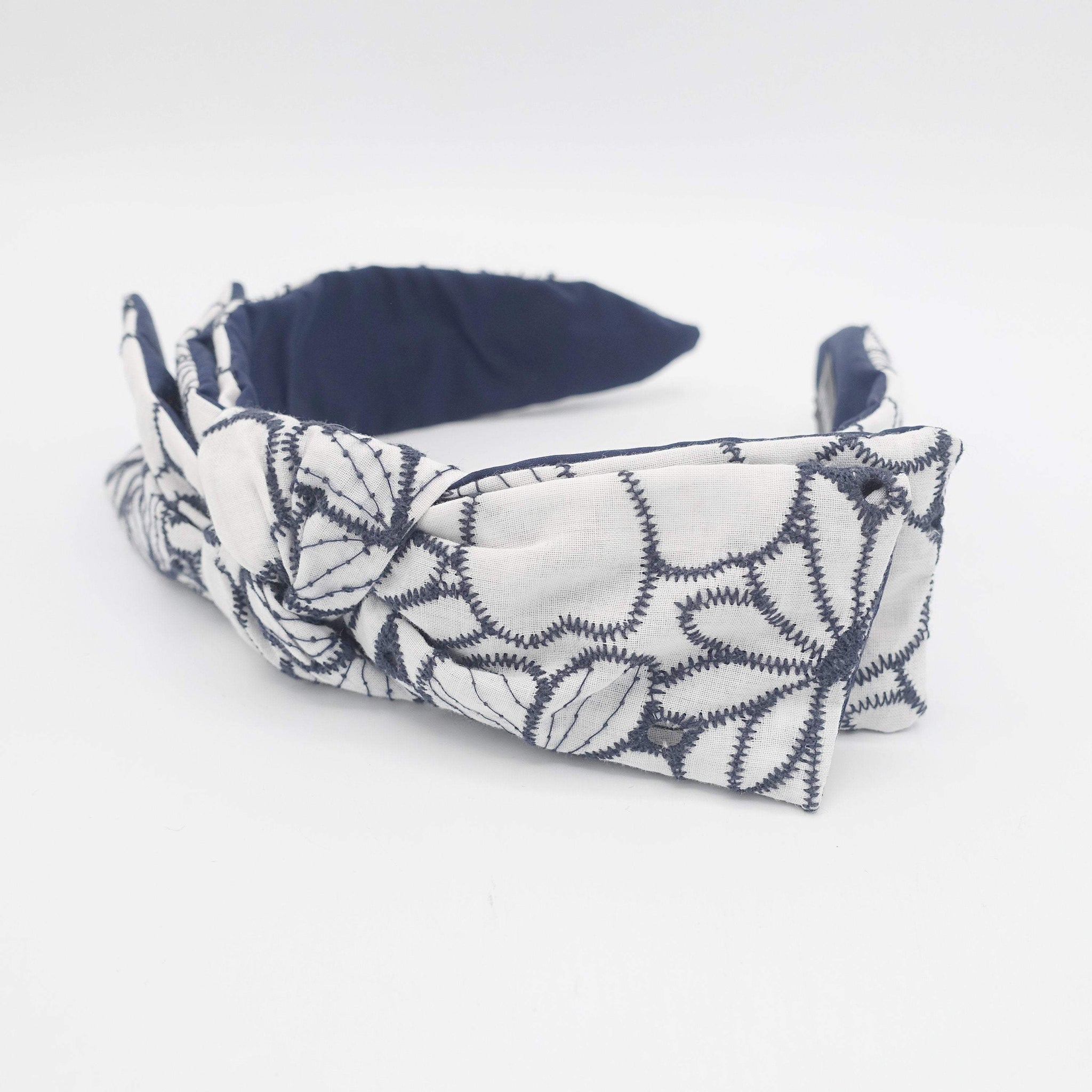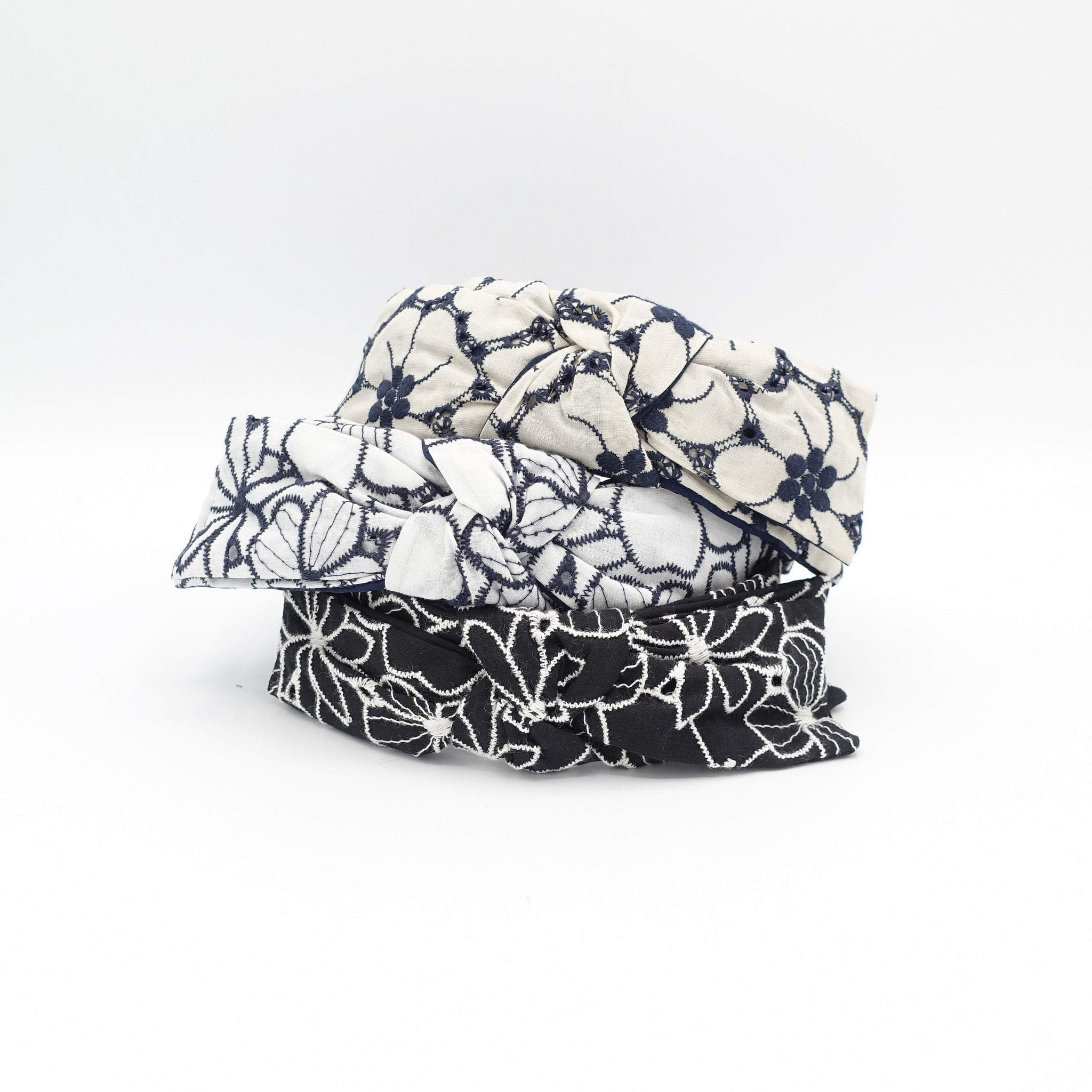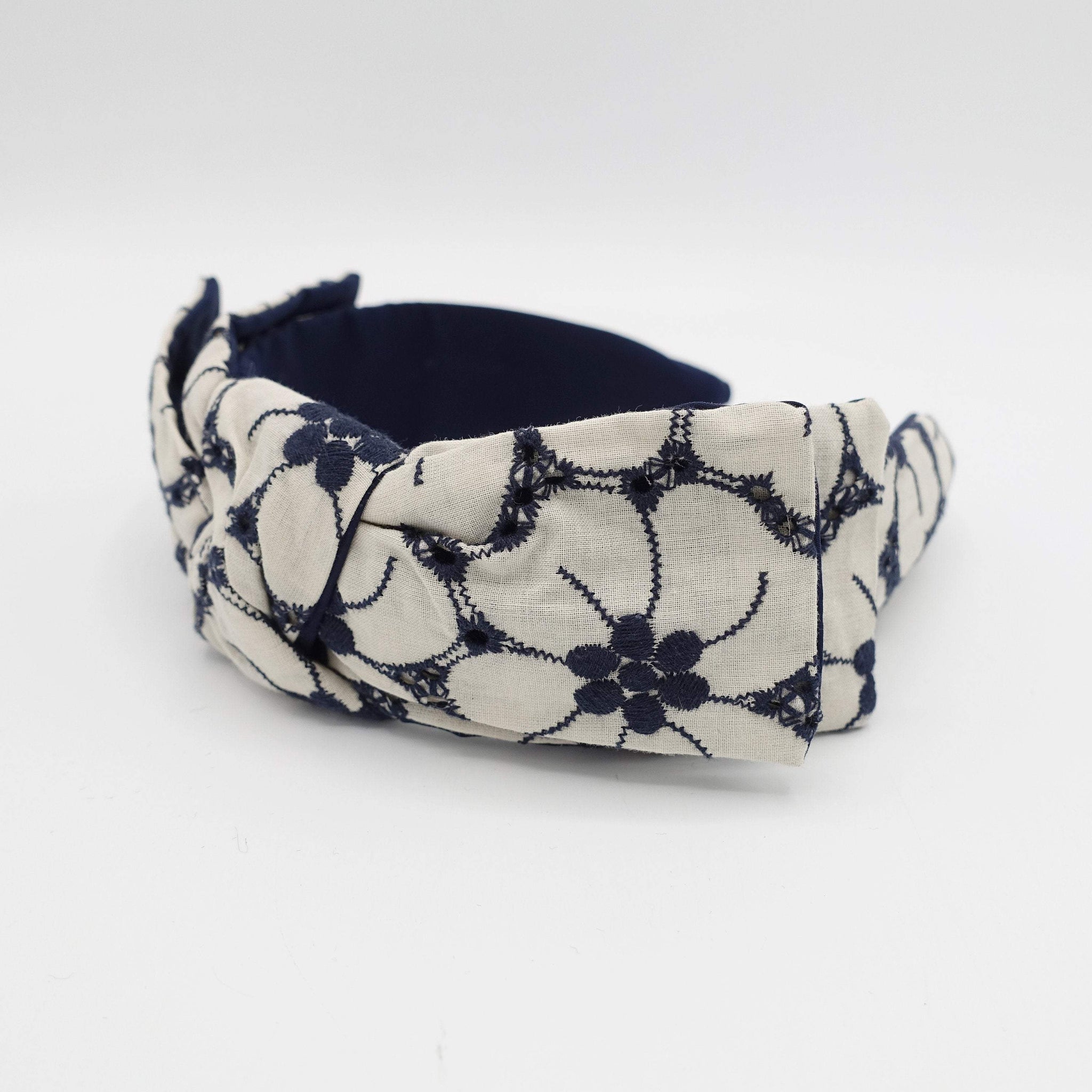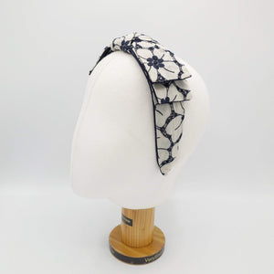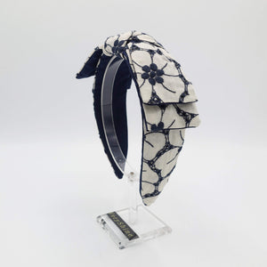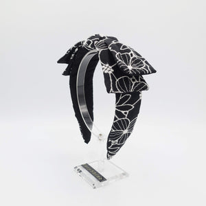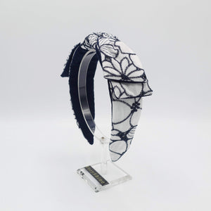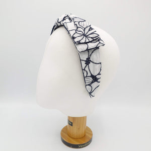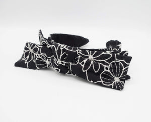 flower embroidered headband wired bow knot headband