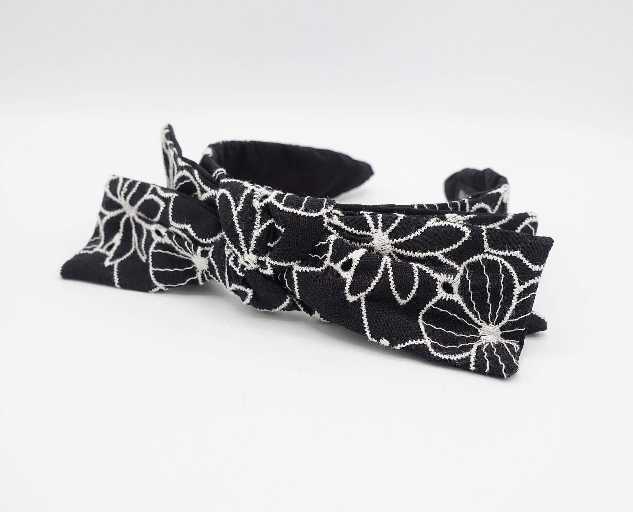 flower embroidered headband wired bow knot headband – veryshine.com