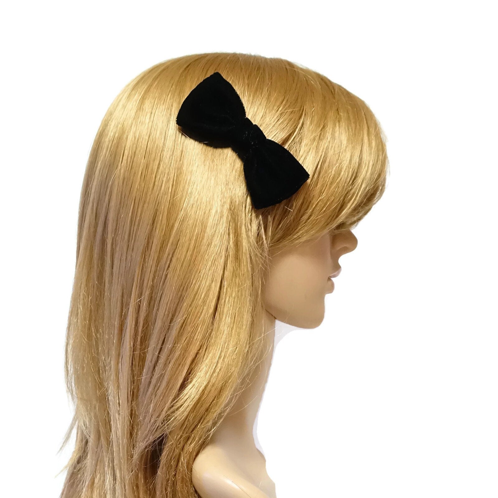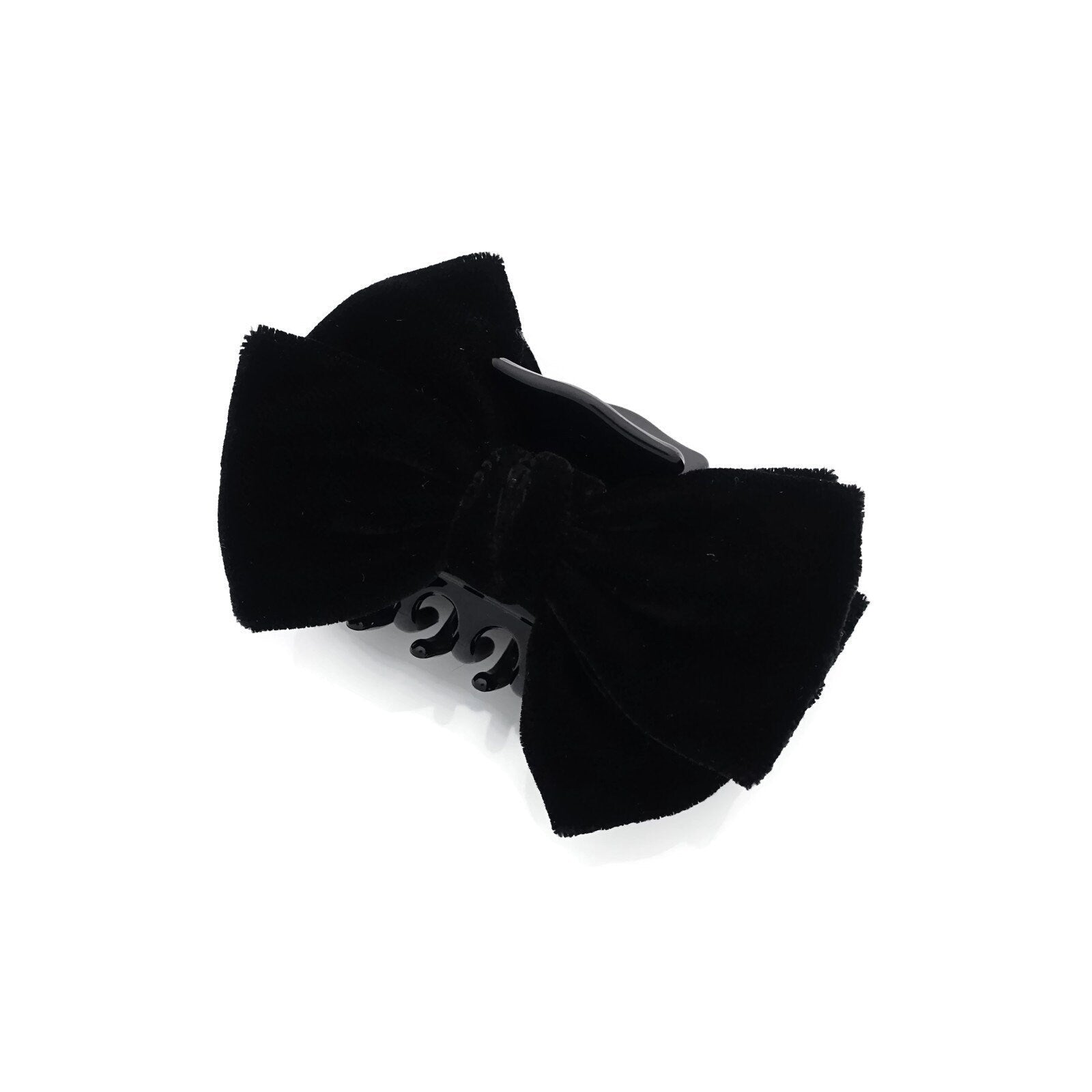 veryshine.com Barrette (Bow) Small bow barrette Handmade Black Silk Velvet Hair Bow Collection Claw Clip French Barrette Series Black Bow Hair Accessories