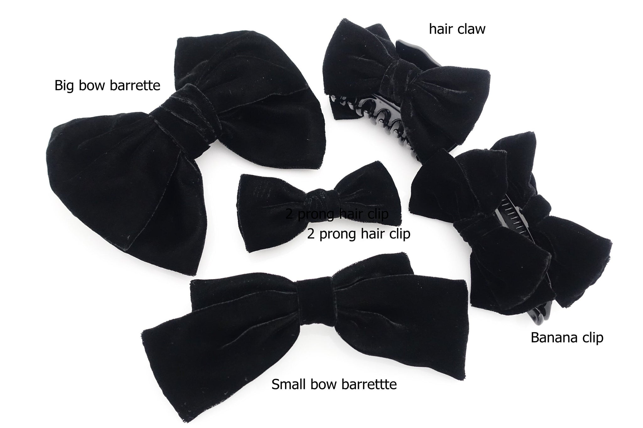 Handmade Black Velvet Hair Bow: Barrette, Claw Clip, or Banana Clip