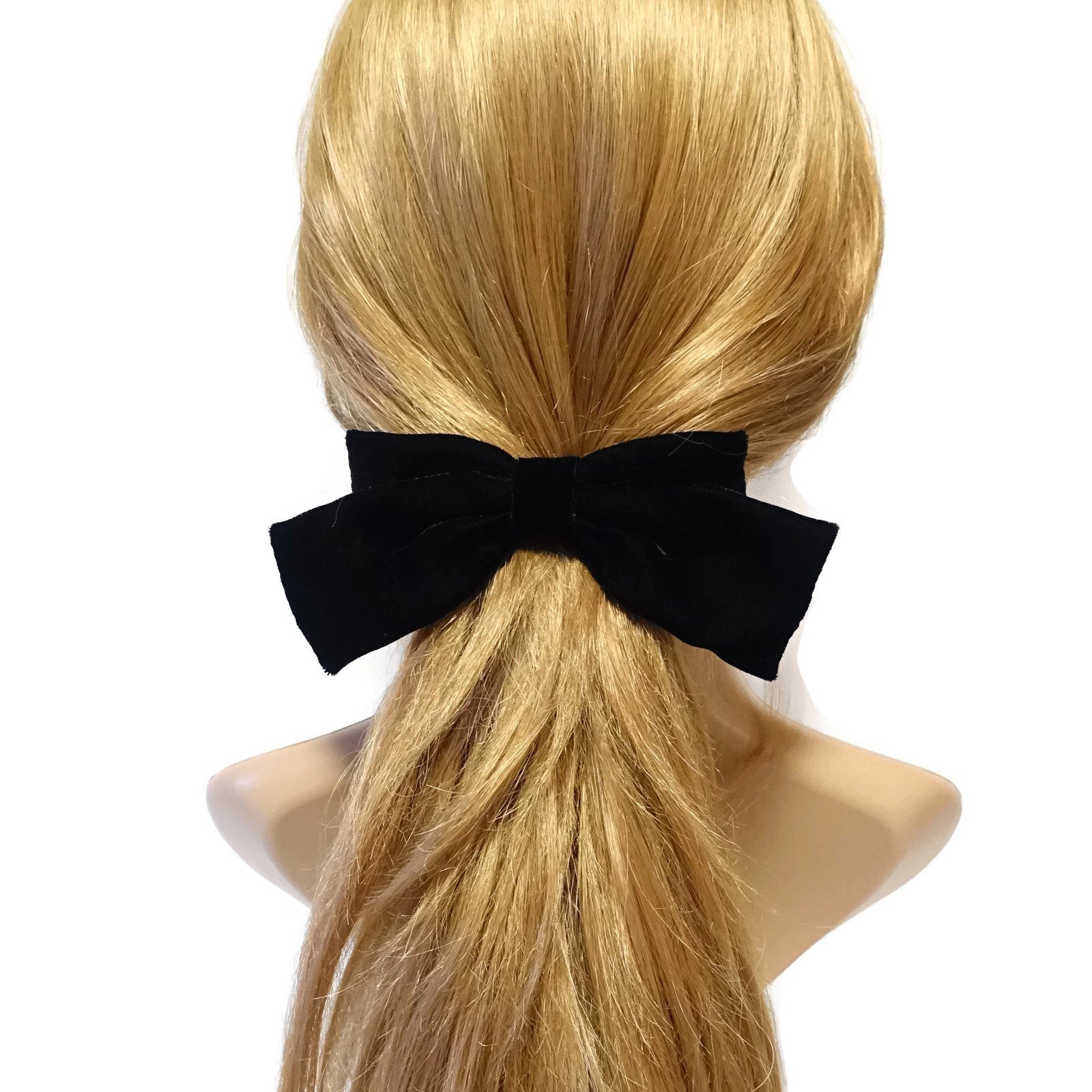 veryshine.com Barrette (Bow) Handmade Black Silk Velvet Hair Bow Collection Claw Clip French Barrette Series Black Bow Hair Accessories