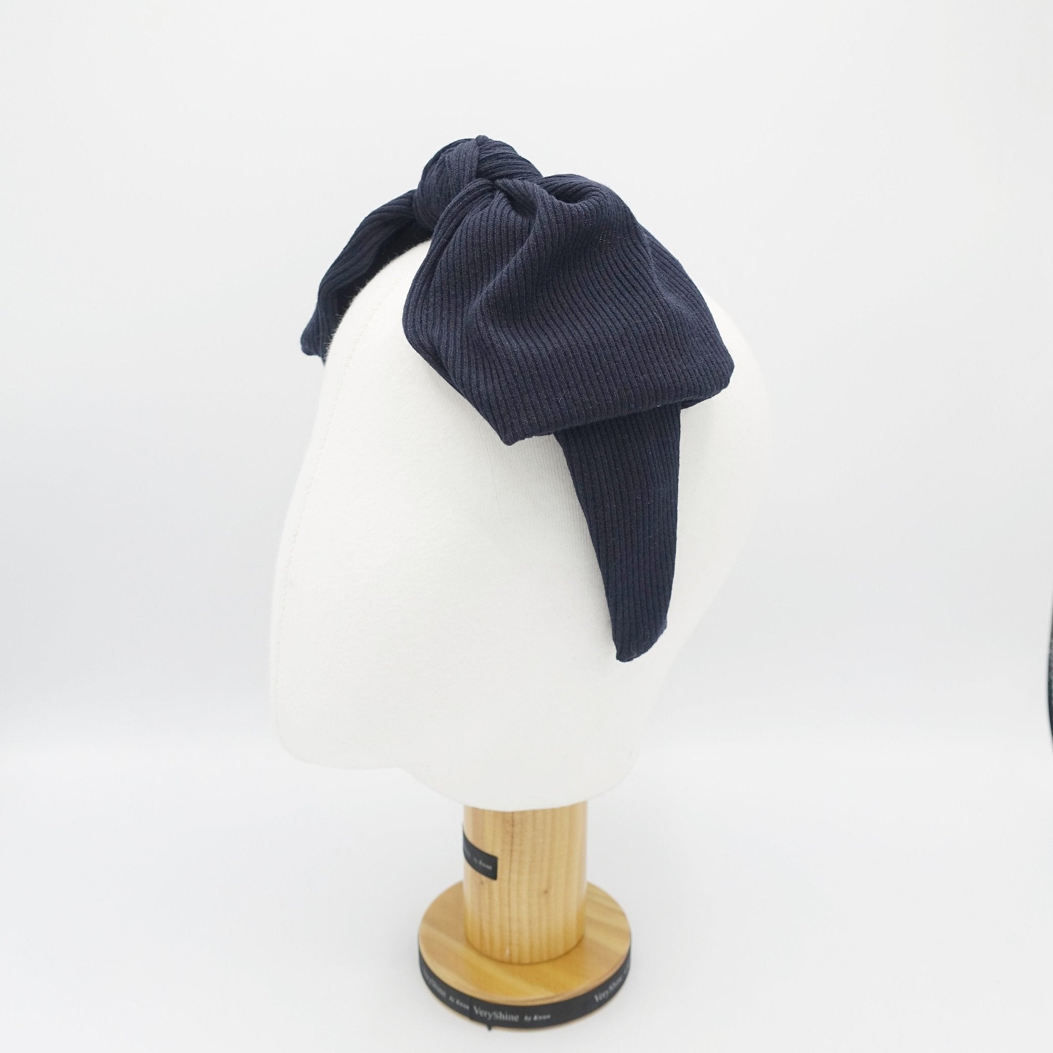 VeryShine hairband/headband Navy Puff bow headband rib span knot hairband wired bow unique hair accessory for women
