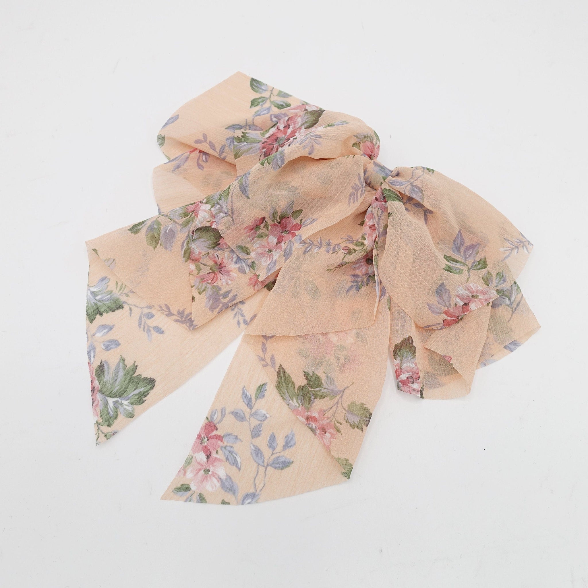 veryshine.com Barrette (Bow) Peach chiffon floral layered hair bow droopy style feminine accessory for women