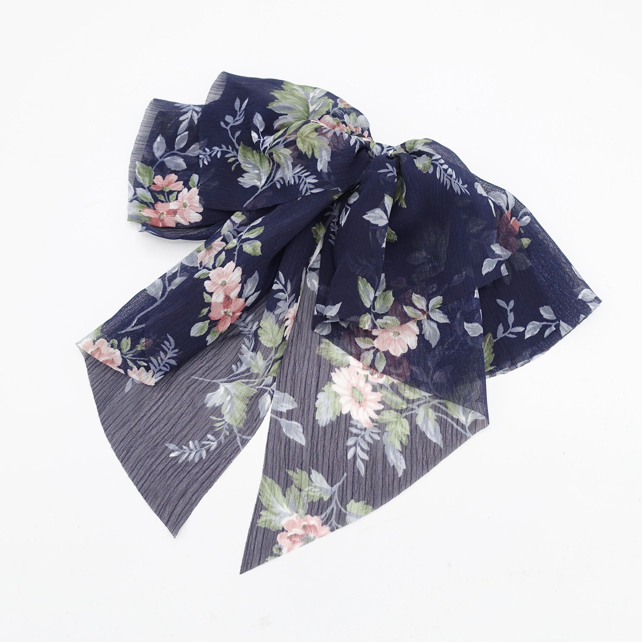 veryshine.com Barrette (Bow) Navy chiffon floral layered hair bow droopy style feminine accessory for women