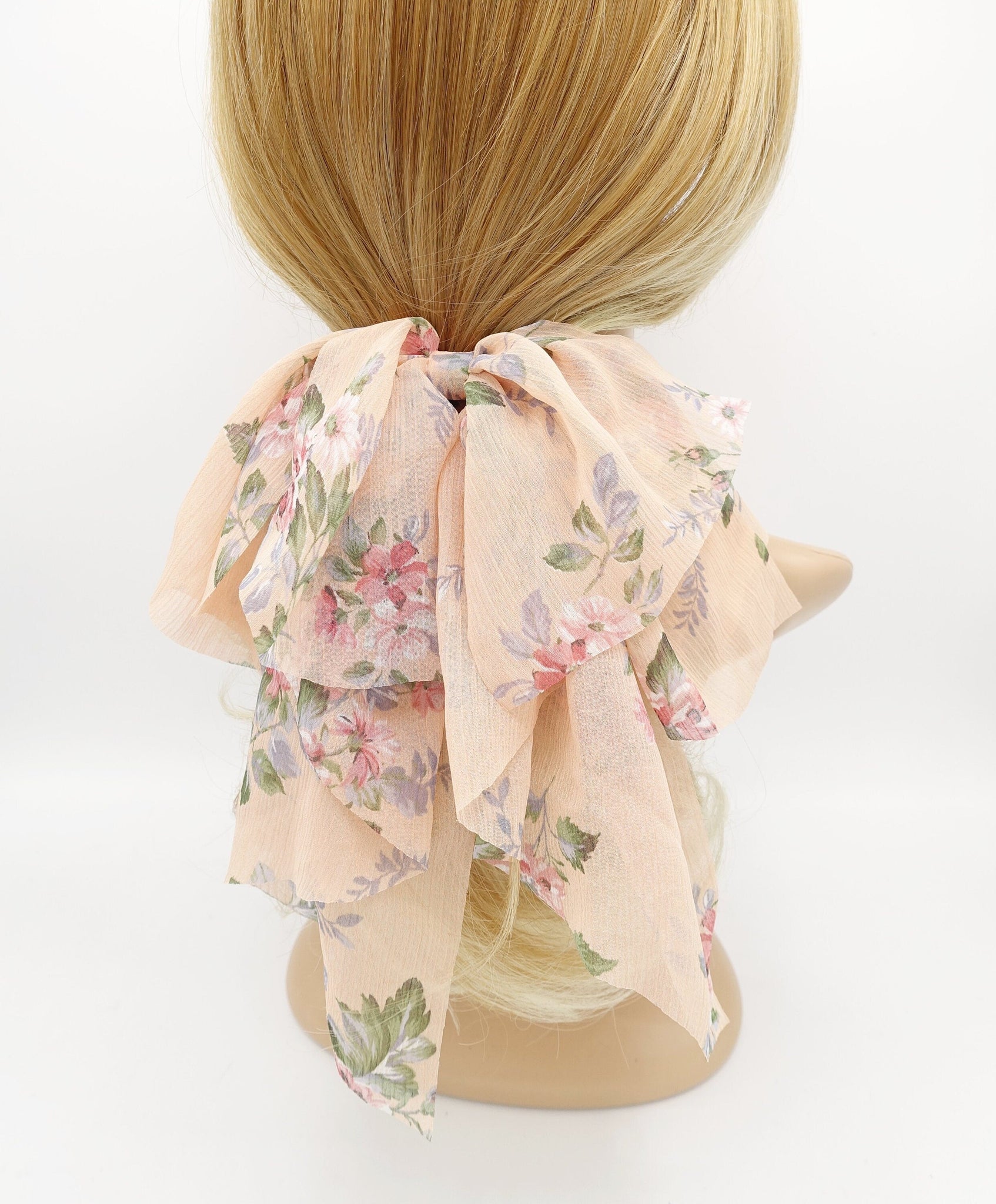 chiffon floral layered hair bow droopy style feminine accessory for women