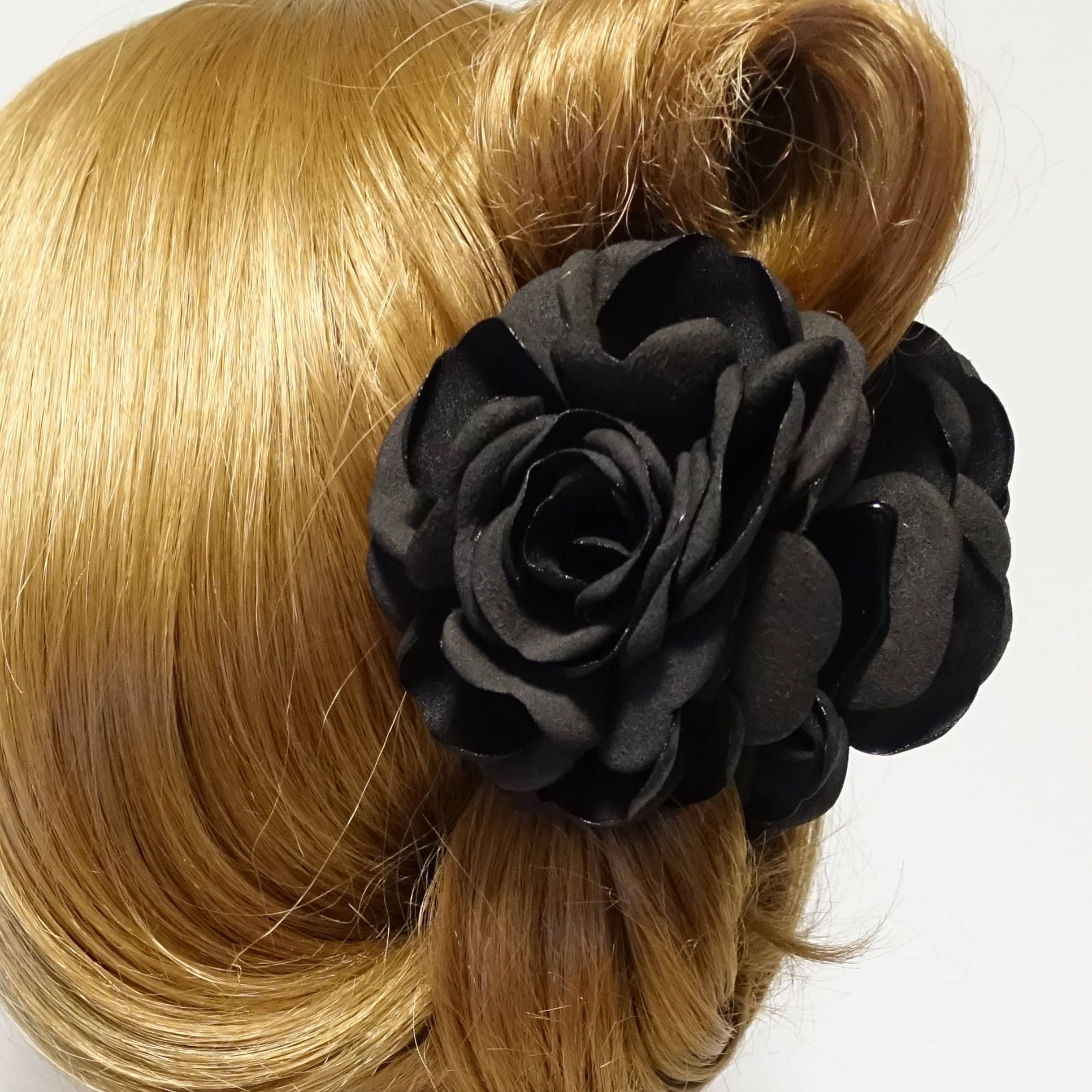veryshine.com Hair Claw Black Suede Two Tone Petal Rose Flower Hair Jaw Claw Clip Women Hair Accessories