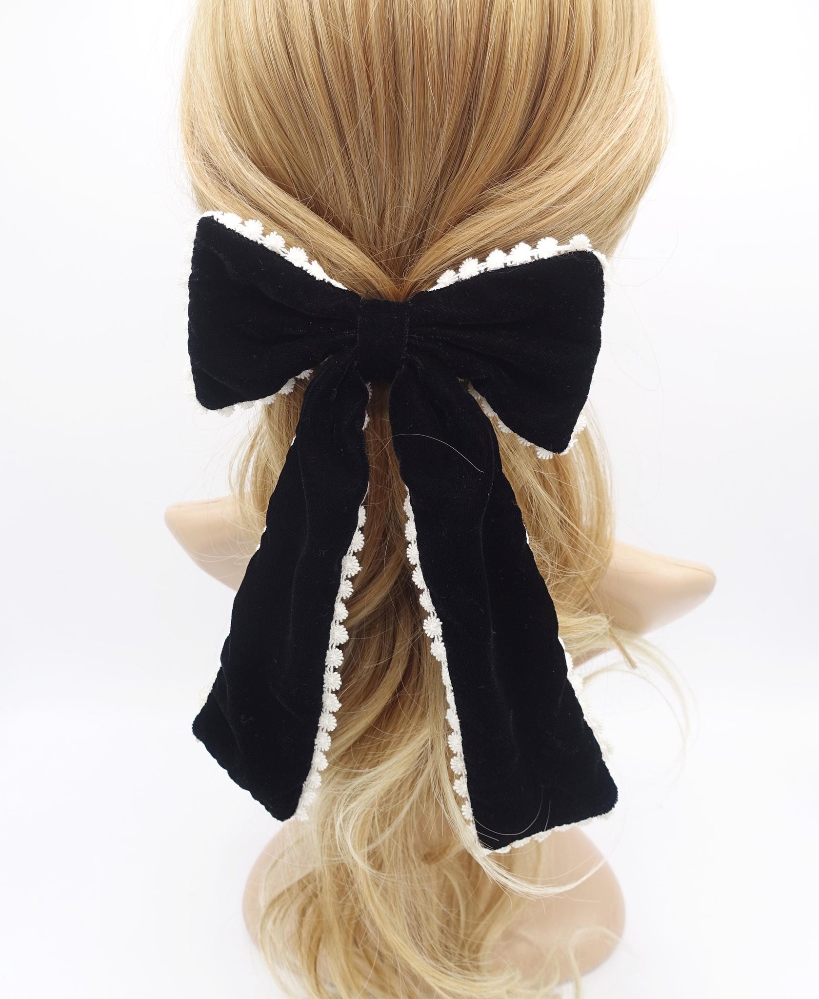 Silk Velvet Hair Bow: Lace Trim, French Barrette – veryshine.com