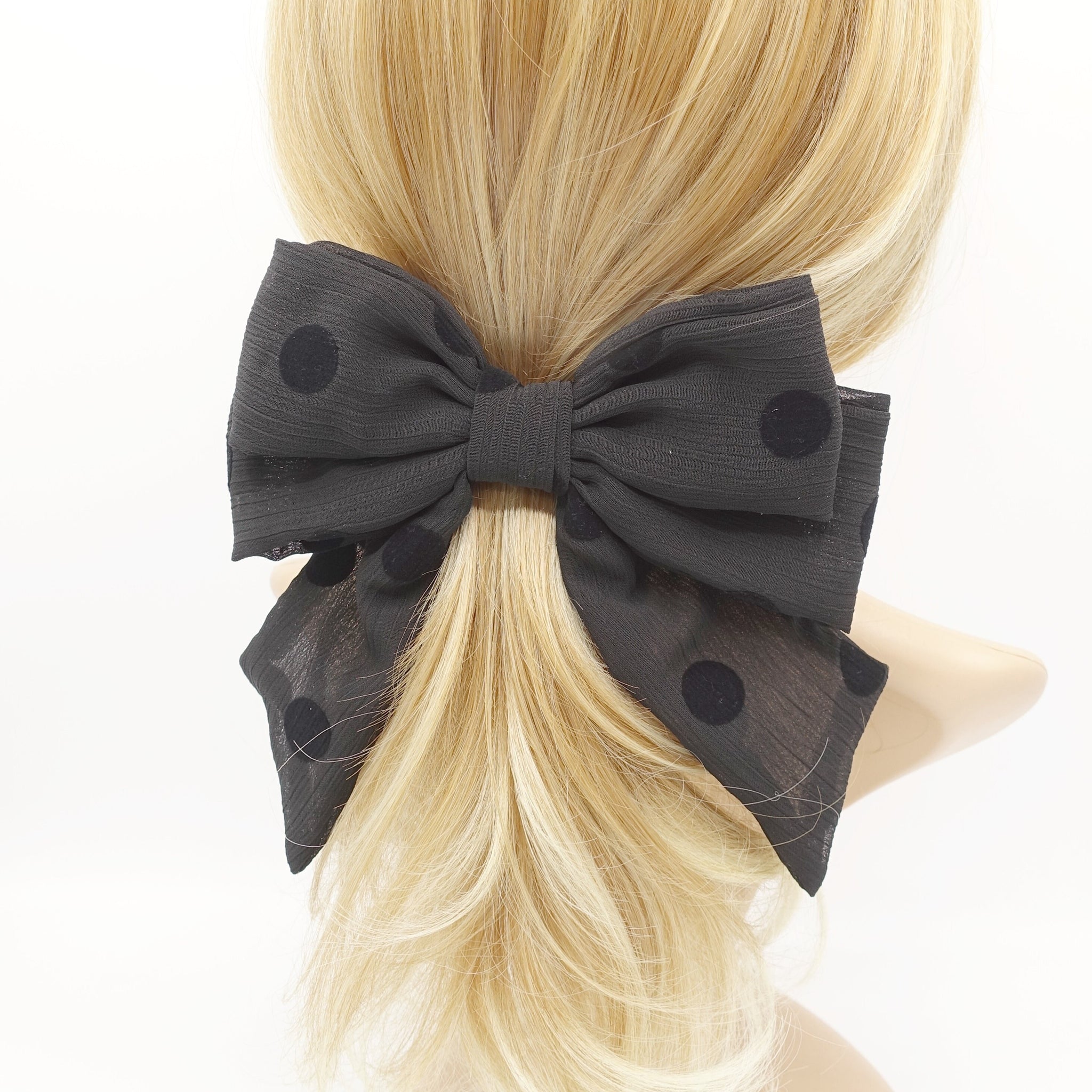 Velvet Dot Chiffon Hair Bow: Crinkled Fabric Barrette – veryshine.com