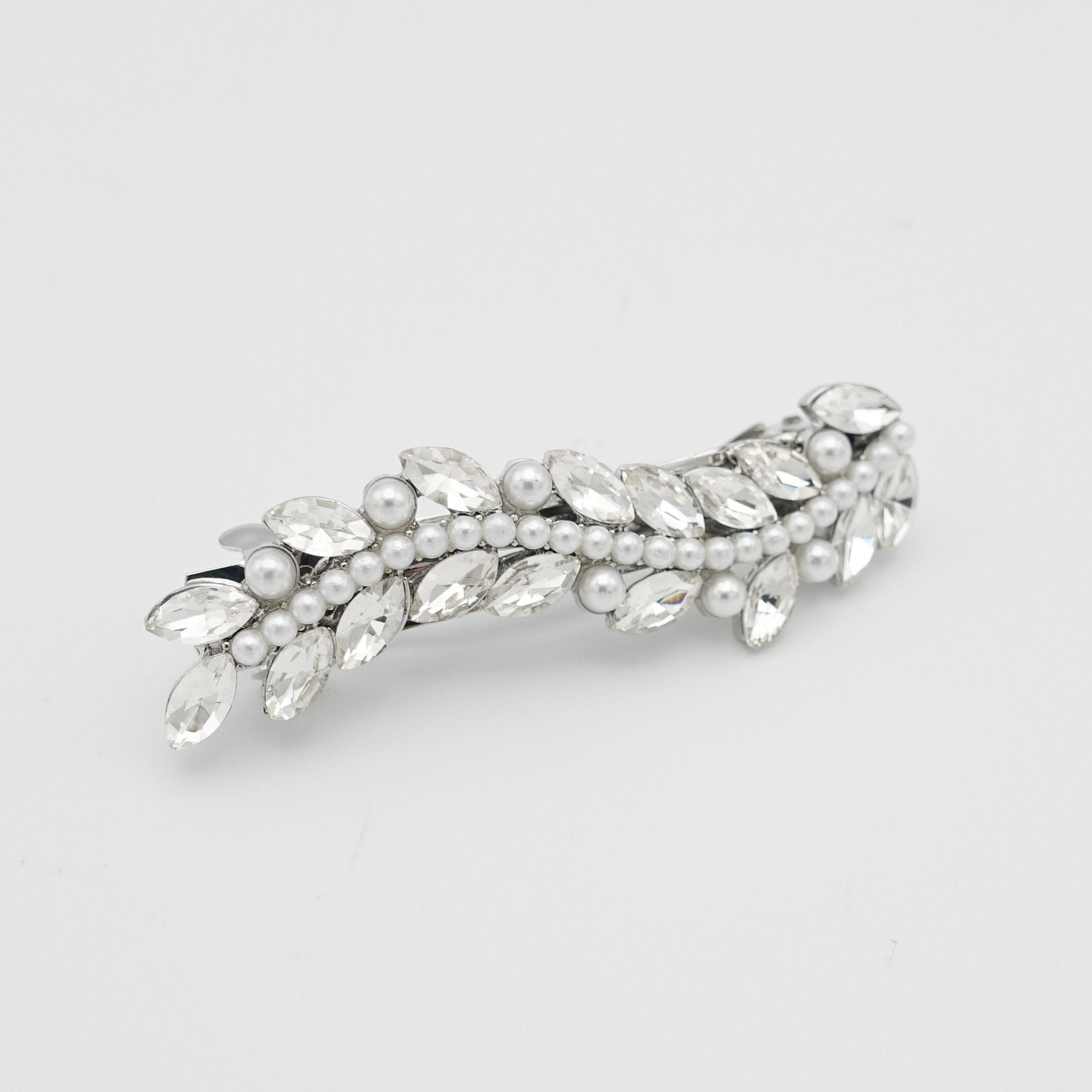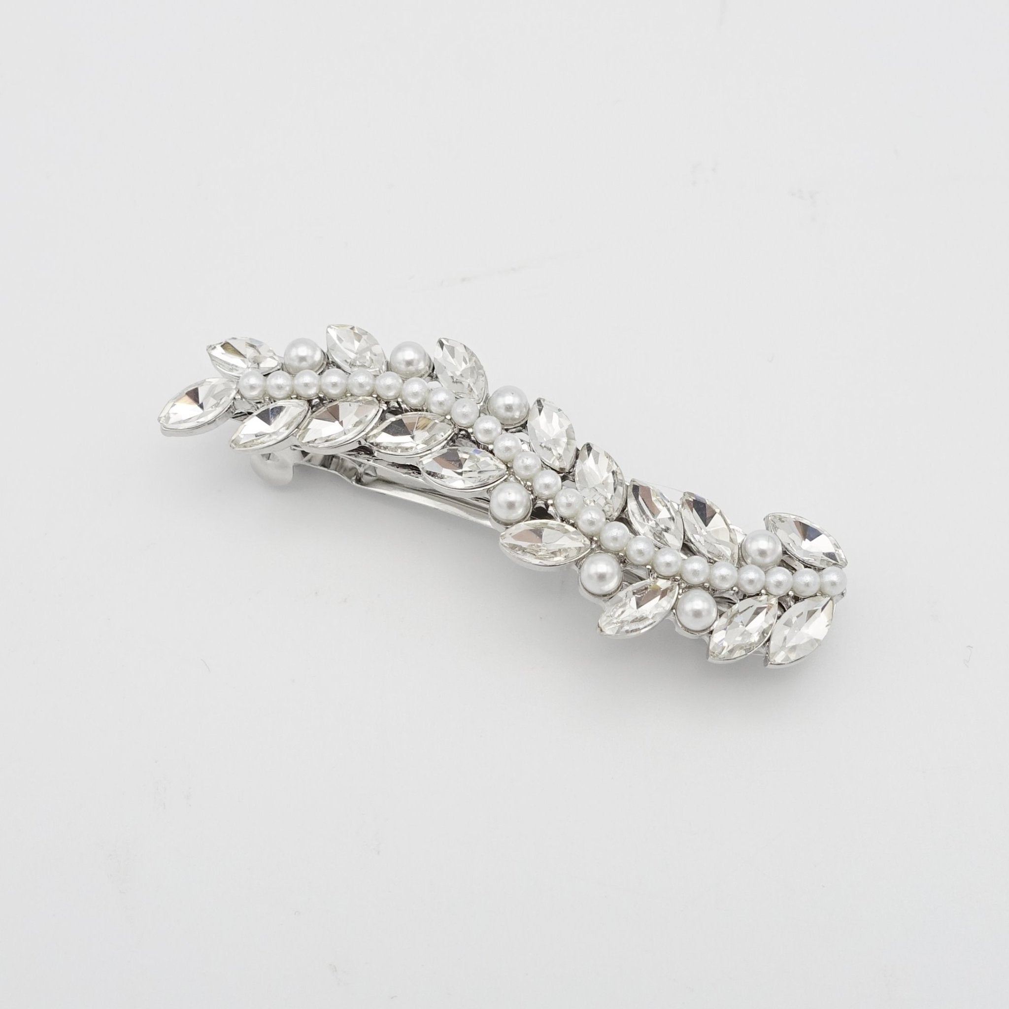veryshine.com claw/banana/barrette Silver mini pearl rhinestone hair barrette wave flower branch woman hair accessory