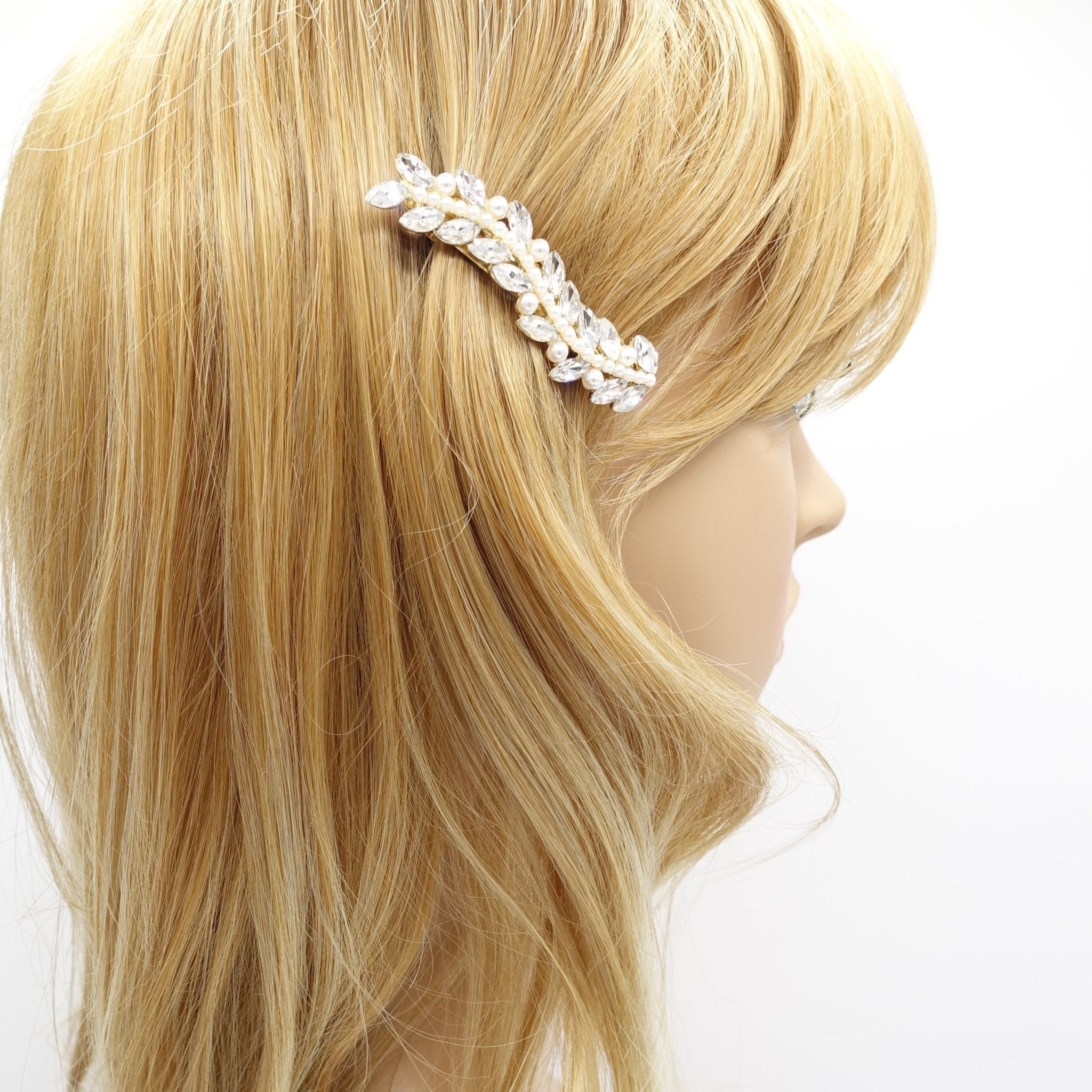 veryshine.com claw/banana/barrette Multi mini pearl rhinestone hair barrette wave flower branch woman hair accessory