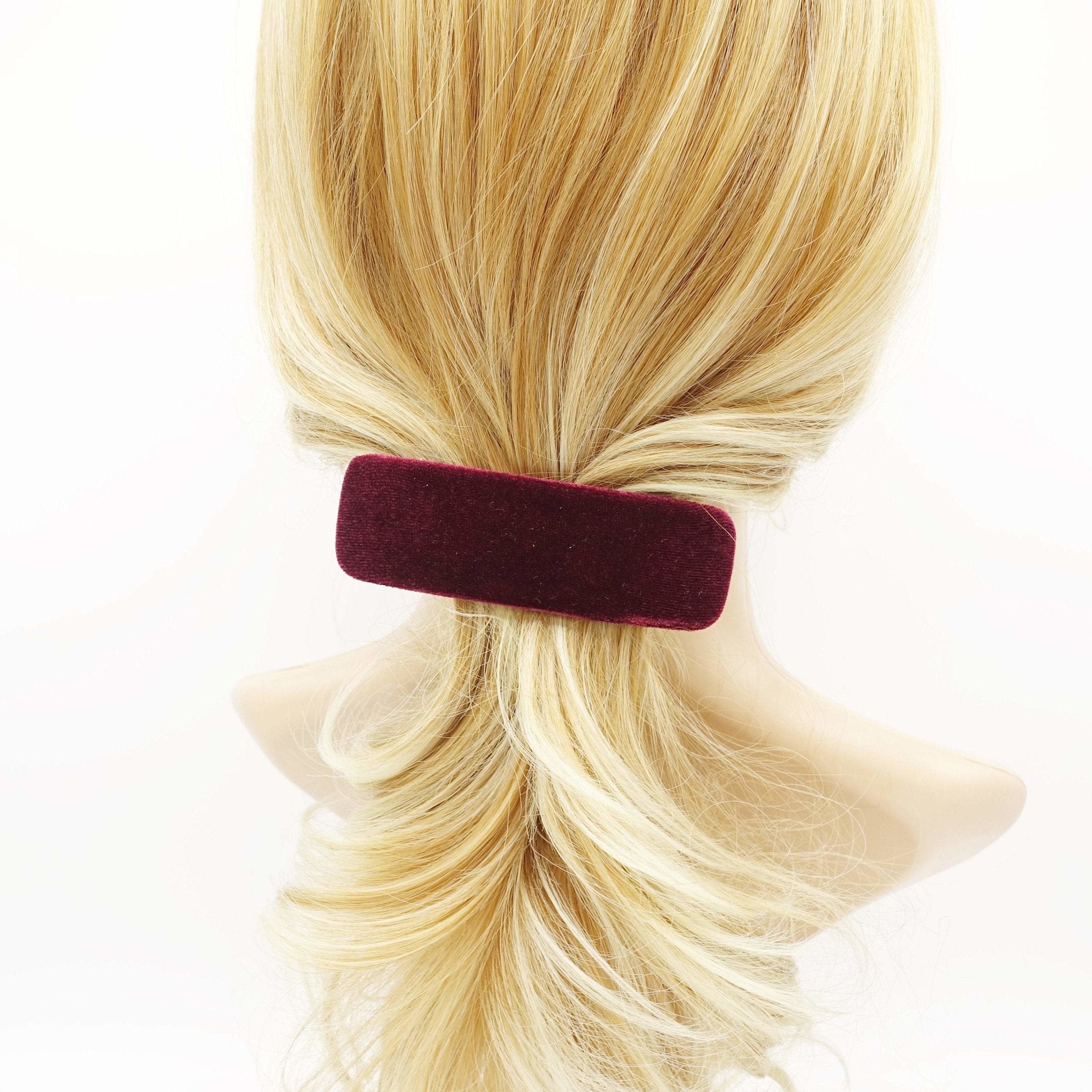 veryshine.com Barrettes & Clips Burgundy velvet hair barrette rectangle hair accessory for women