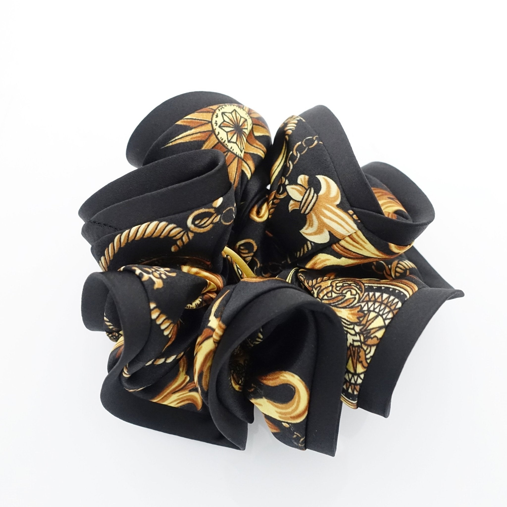 Glossy Satin Fabric Baroque Print Hair Scrunchies Korea Hair Accessory.