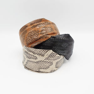 Diadema con estampado de pitón de cuero, diadema para mujer a la moda