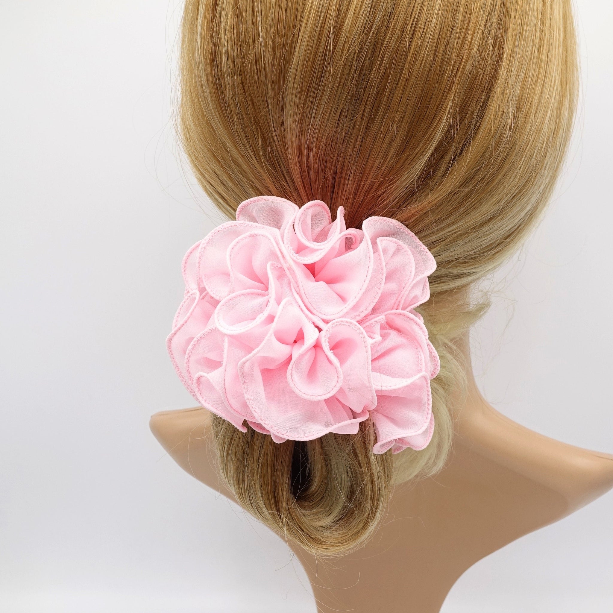 veryshine.com Scrunchies Pink chiffon scrunchies, ruffle scrunchies, hair ties for women