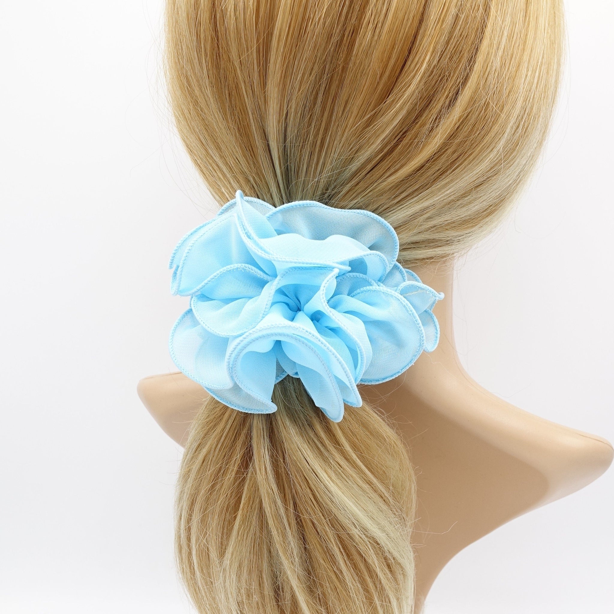 veryshine.com Scrunchies Sky blue chiffon scrunchies, ruffle scrunchies, hair ties for women