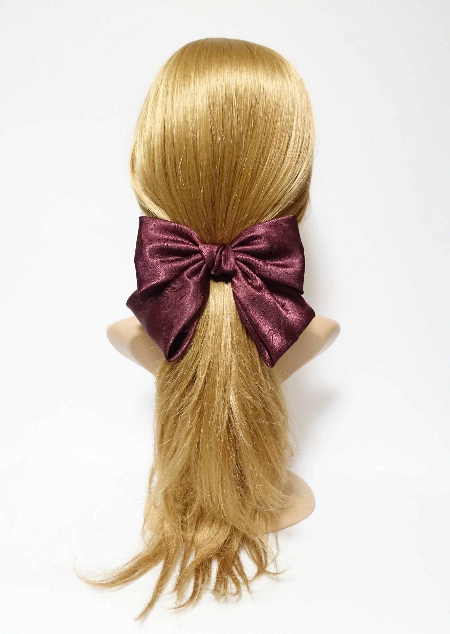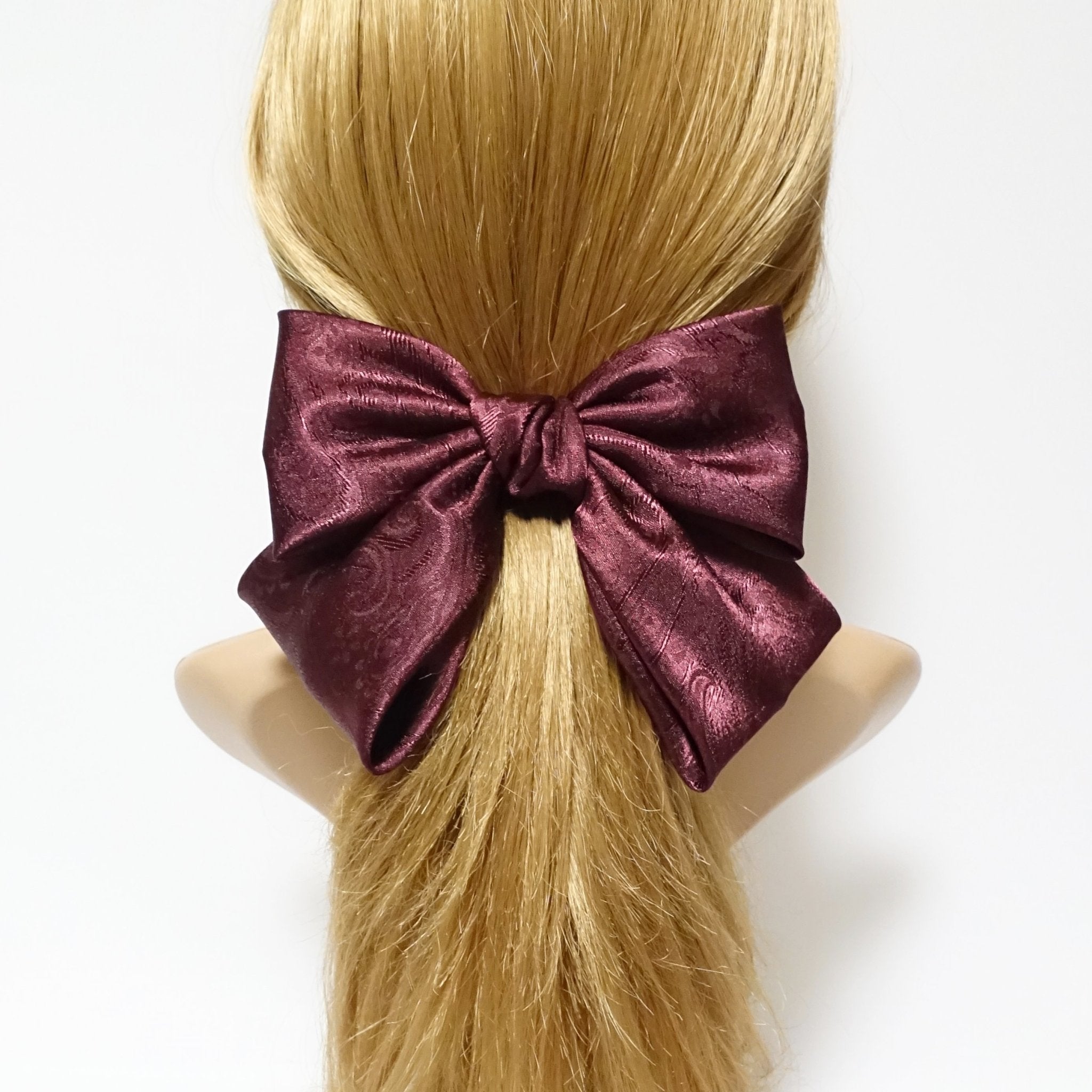 paisley pattern satin hair bow barrette glossy women hair bow – veryshine.com