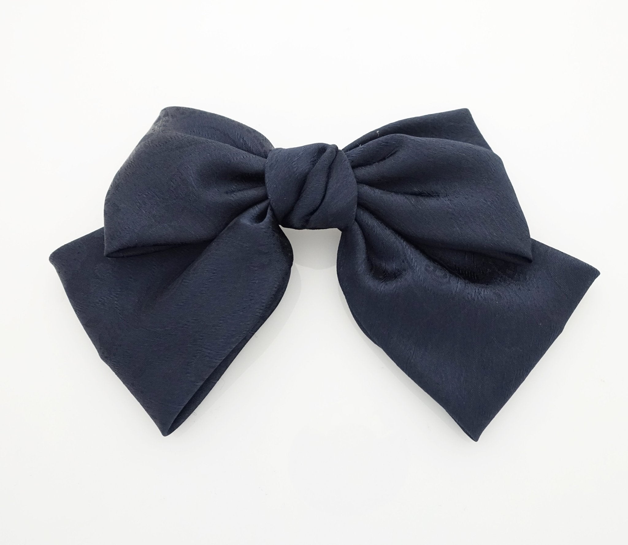 veryshine.com claw/banana/barrette Navy paisley pattern satin hair bow barrette glossy women hair bow accessories