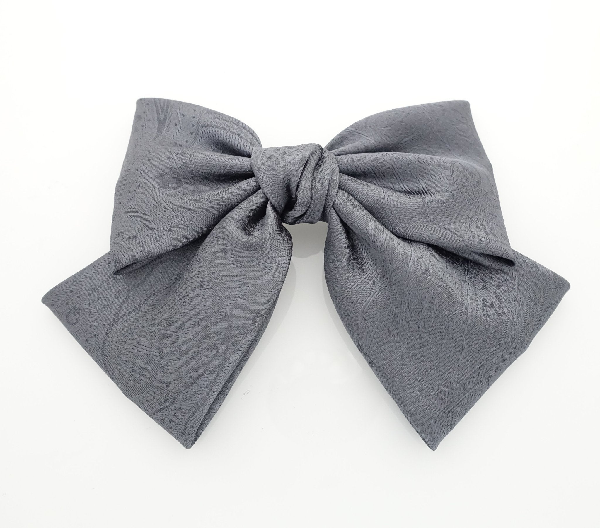veryshine.com claw/banana/barrette Gray paisley pattern satin hair bow barrette glossy women hair bow accessories