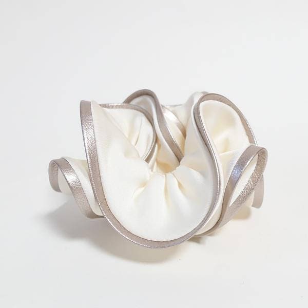 veryshine.com Scrunchies Ivory artificial leather trim satin scrunchies